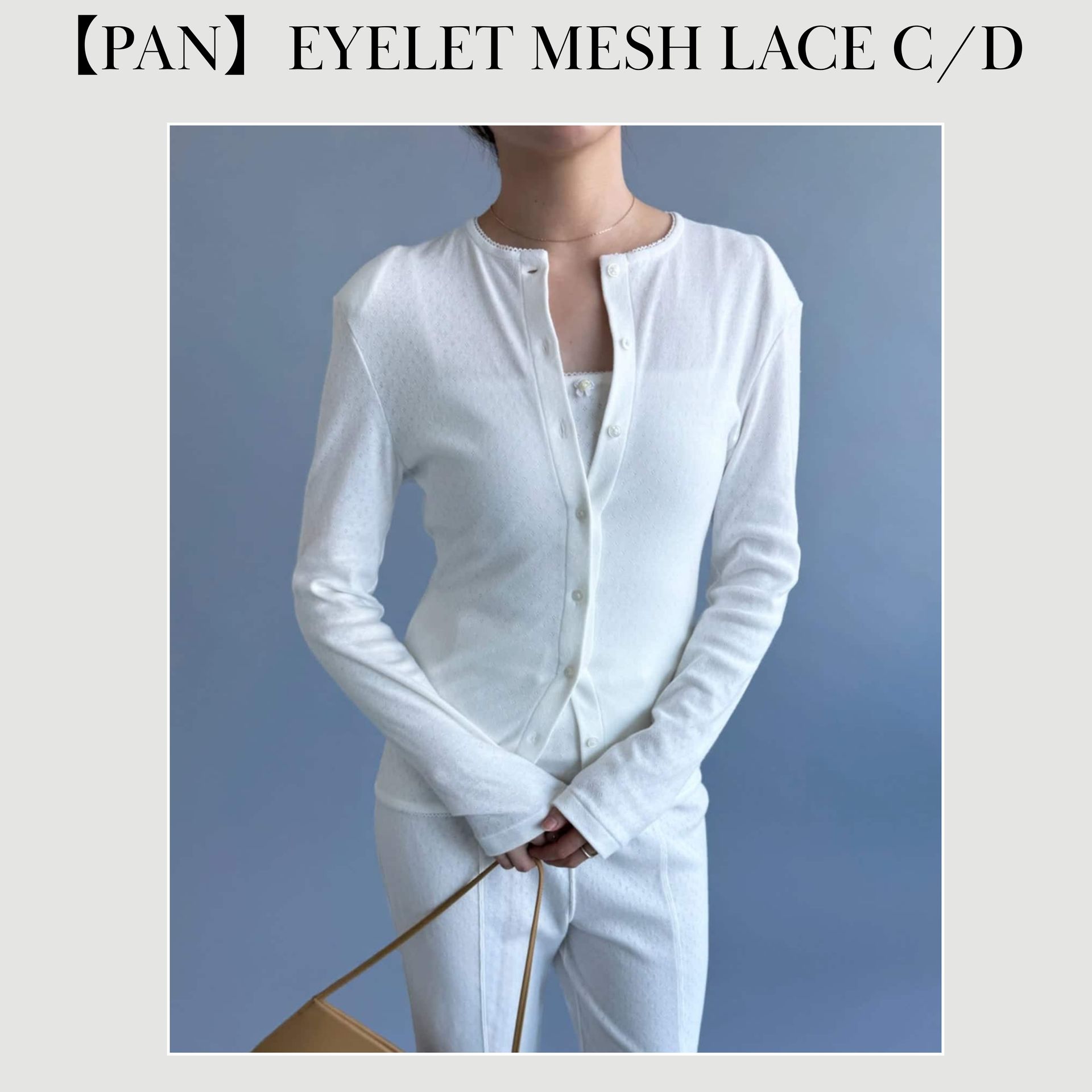 アイレット生地のコットン素材のカーディガン。