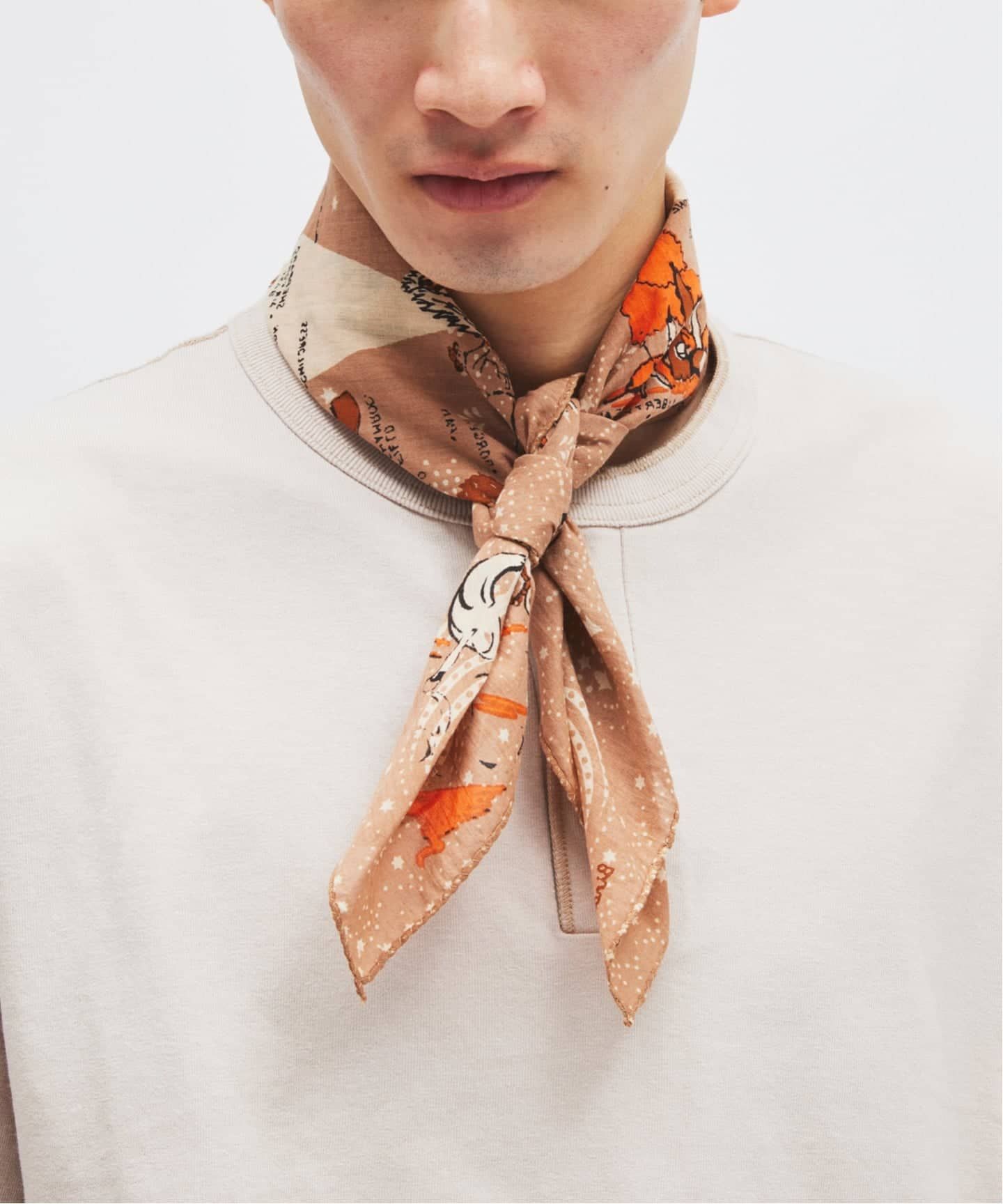 シャツと同じく、マップ柄とバンダナ柄をミックスした別注デザインのスカーフ。