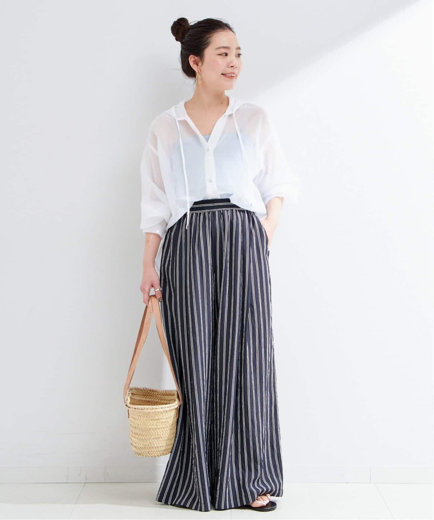 ほんのり透ける軽やかな素材感が見た目にも涼しく、羽織るだけで季節感のある着こなしに仕上がります。