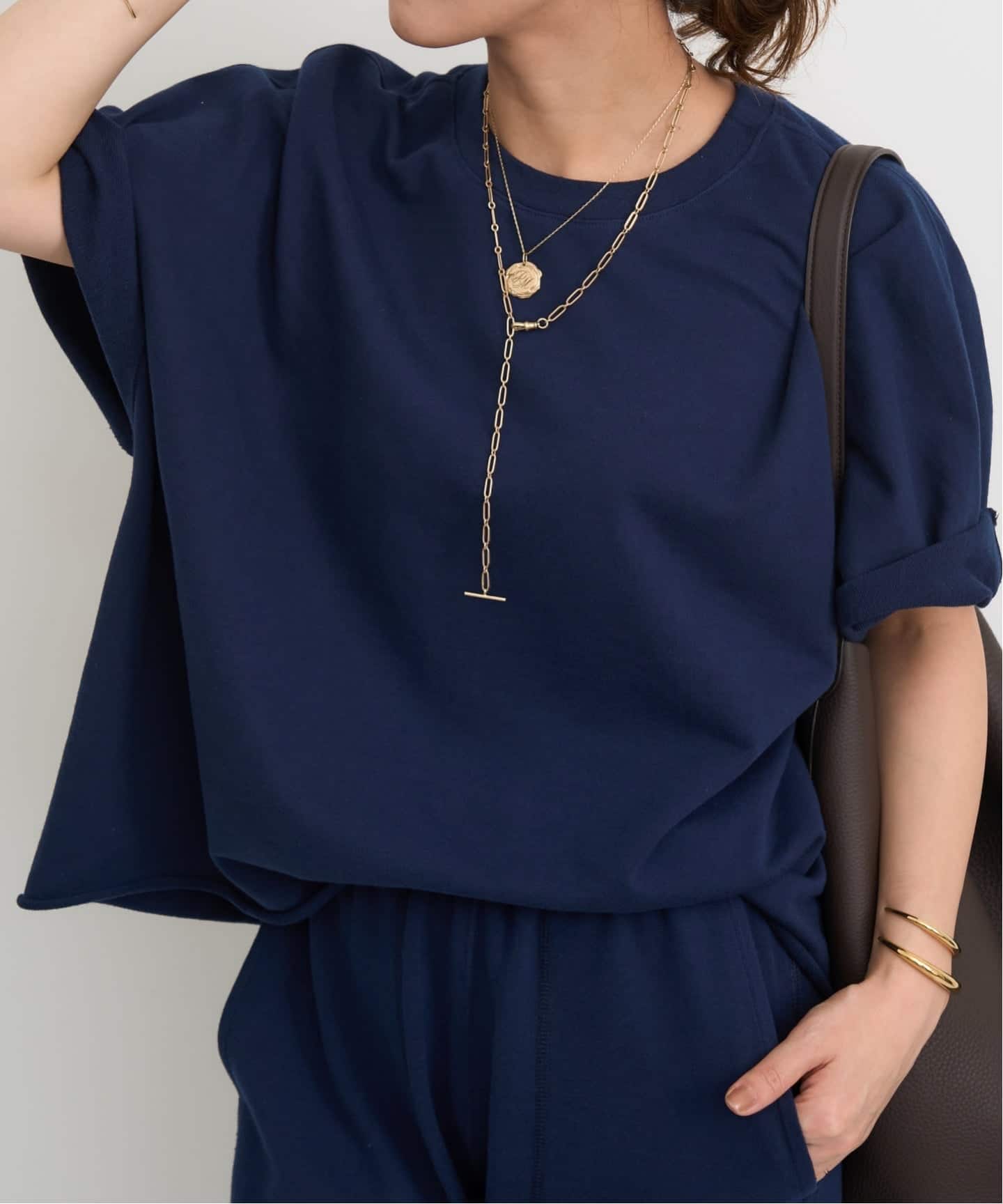 オーバーサイズTシャツをベースに、Tシャツのような軽さで真夏にも着られるスウェット生地で完全別注。袖や裾もカットオフにしてラフに仕上げてもらいました。
