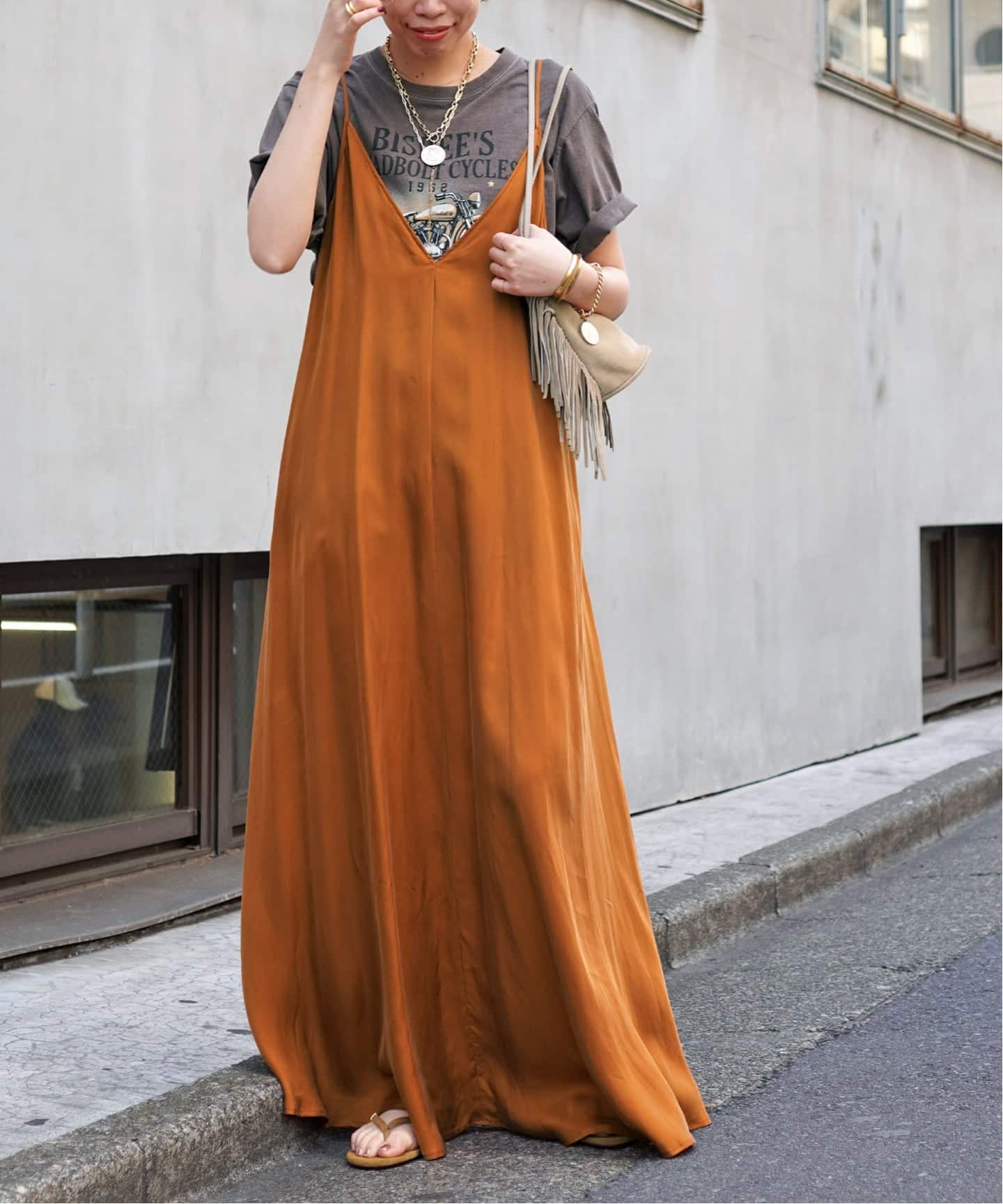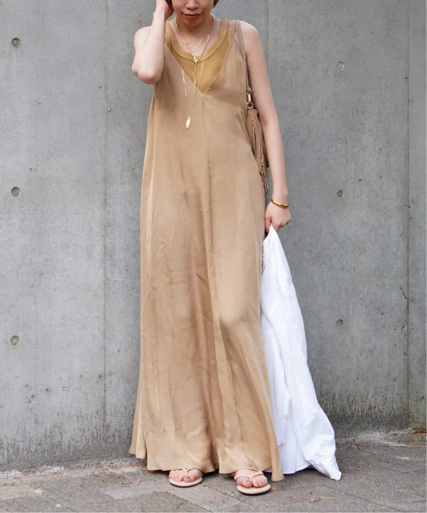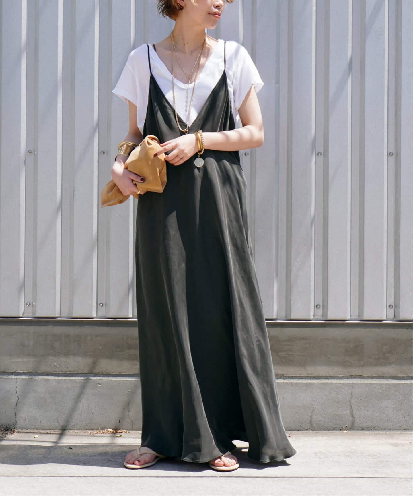 濃色でありながらも、スタイリングを重くしすぎないグリーンがワントーンスタイルもSSムードに。
