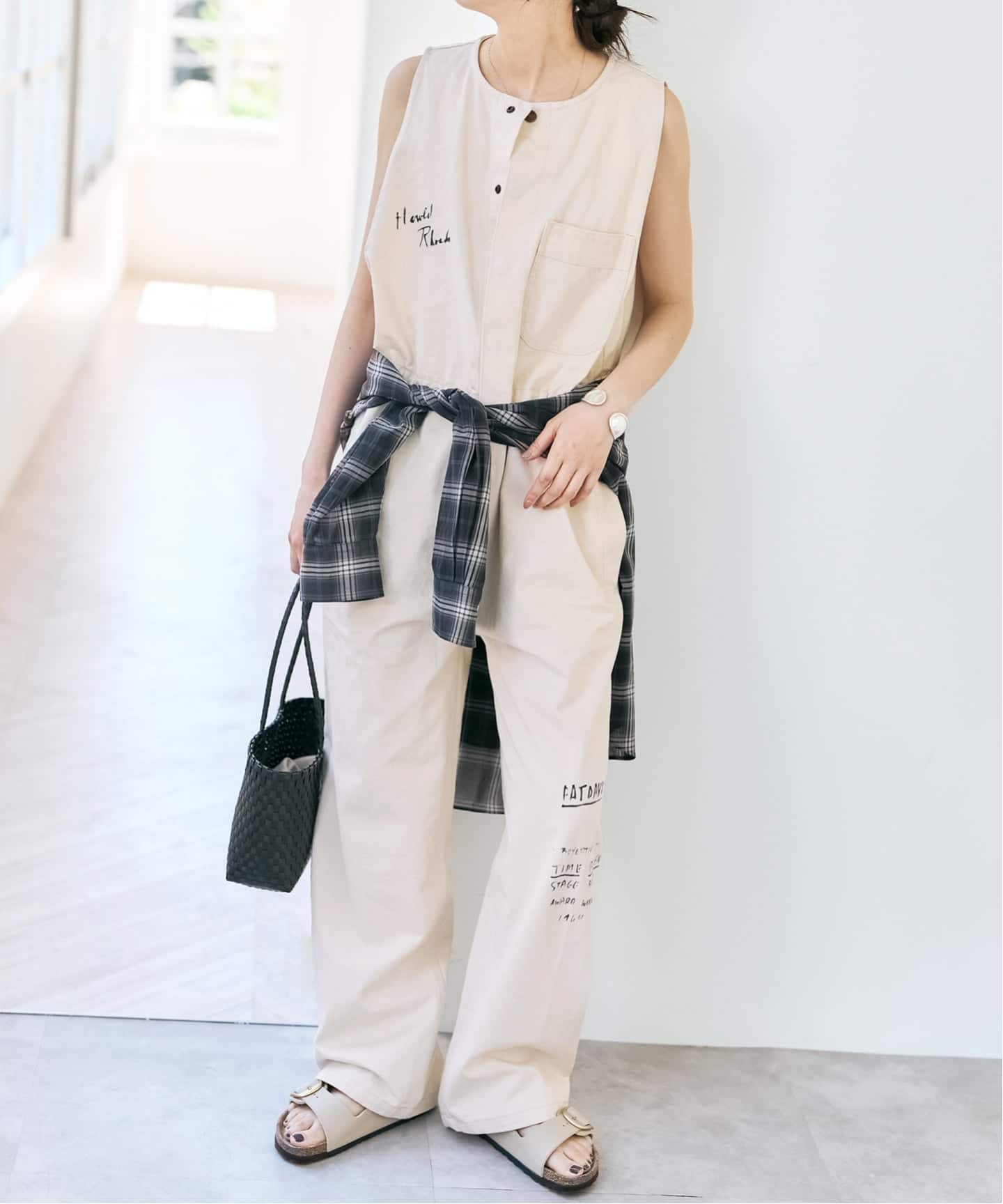 フラットサンダルでほどよく力を抜いた、今っぽいバランスに。