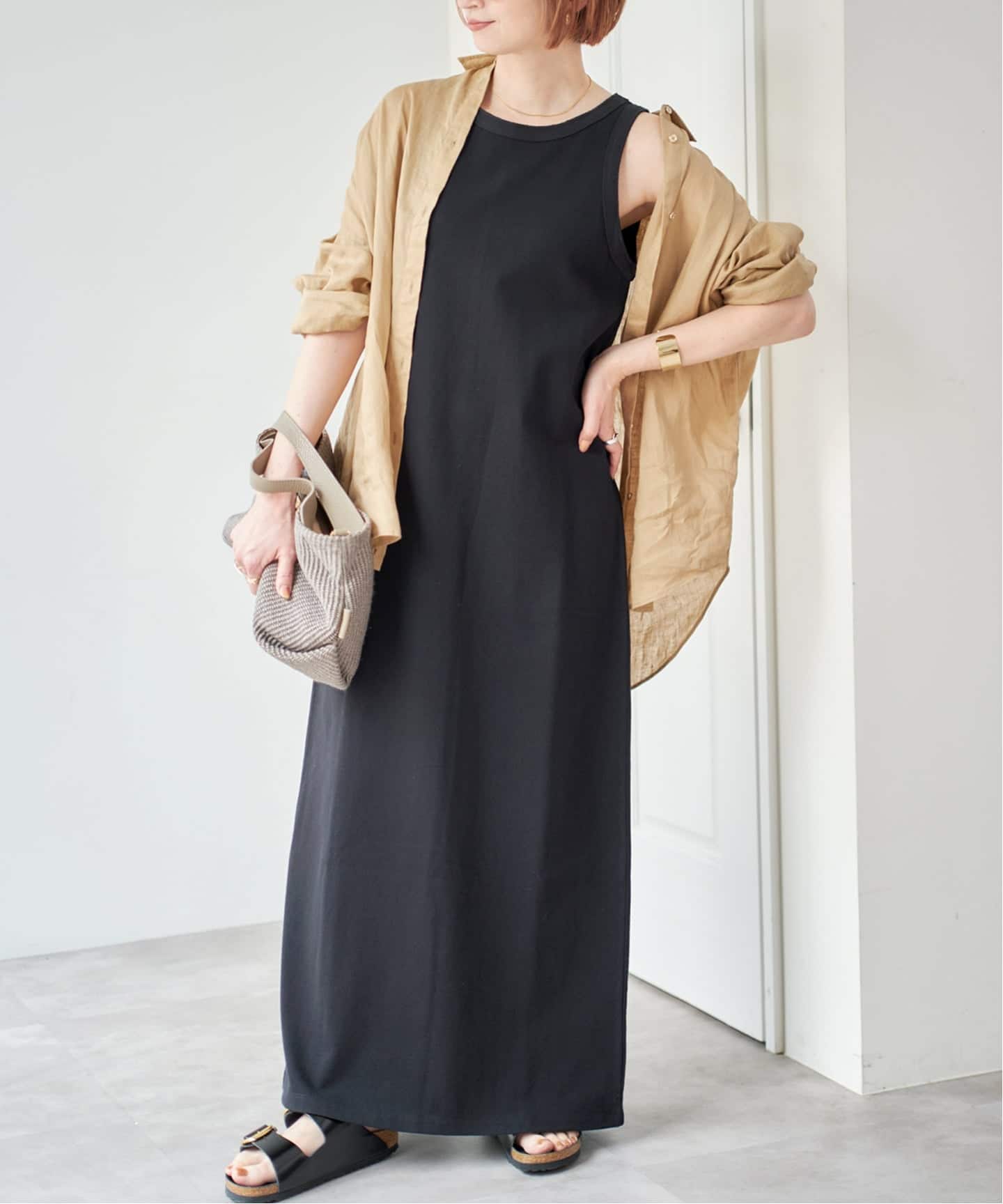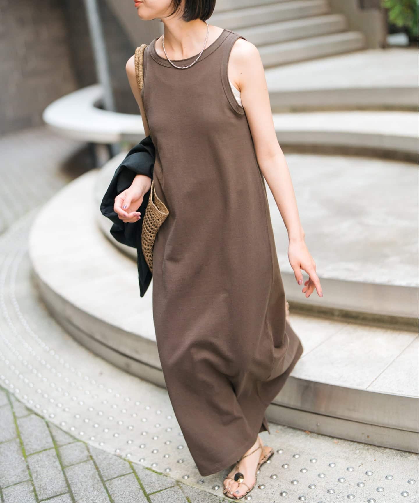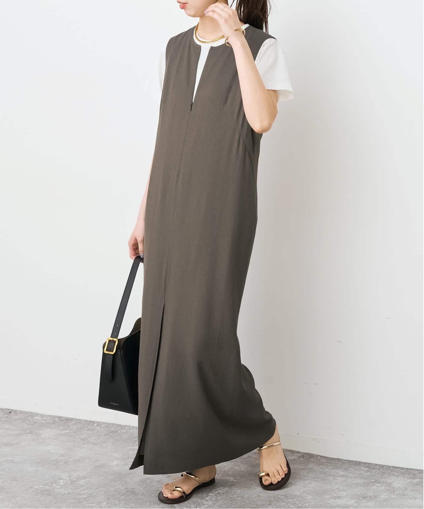華奢なストラップと落ち感のあるシルエットで抜け感のある印象に。