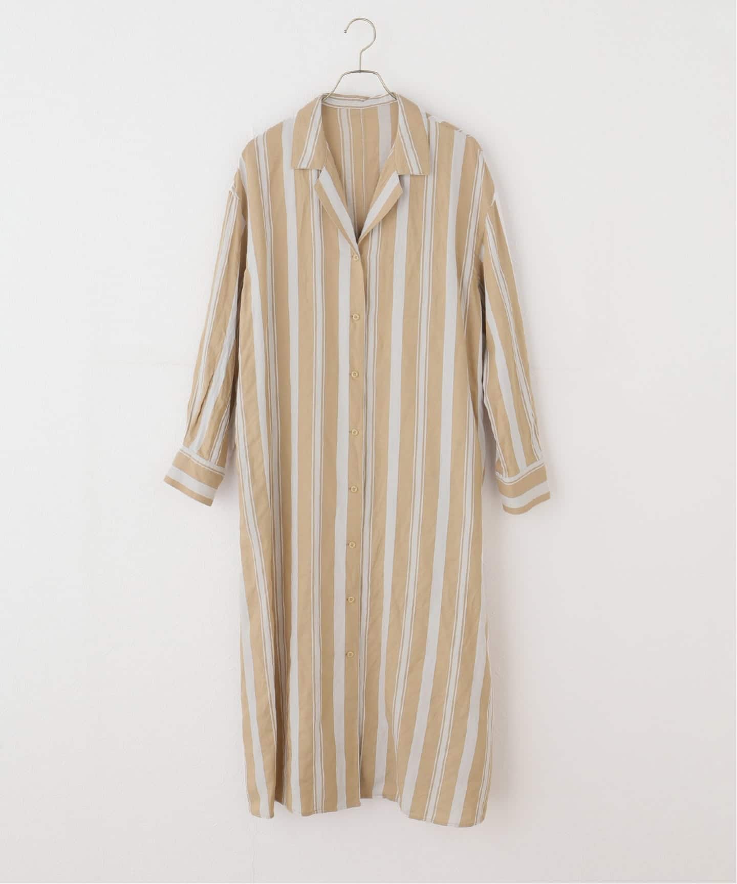 ストライプオープンカラーシャツワンピース