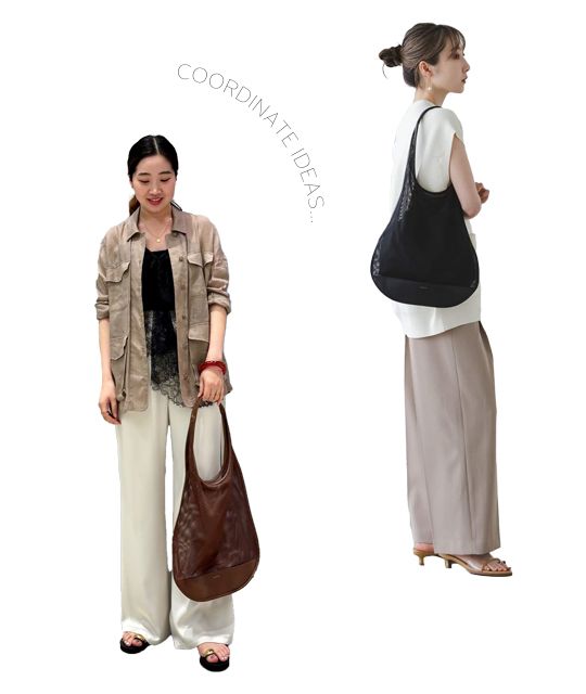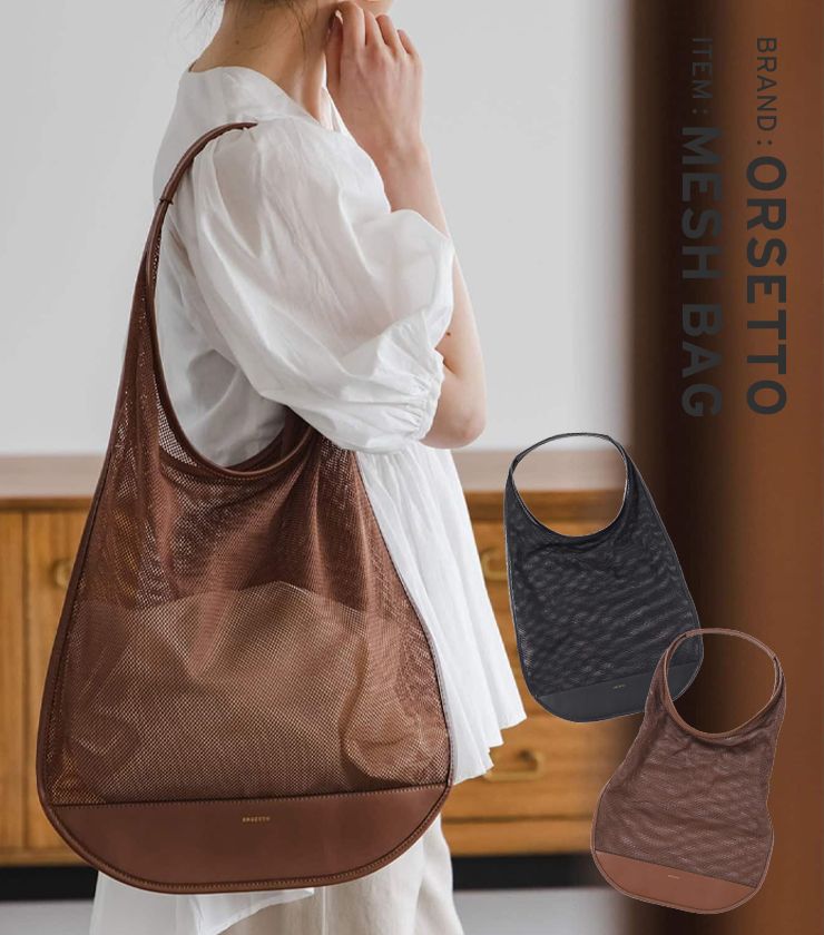 暖かなシーズンのスタイリングにマッチしてくれるメッシュ素材のバッグ。
