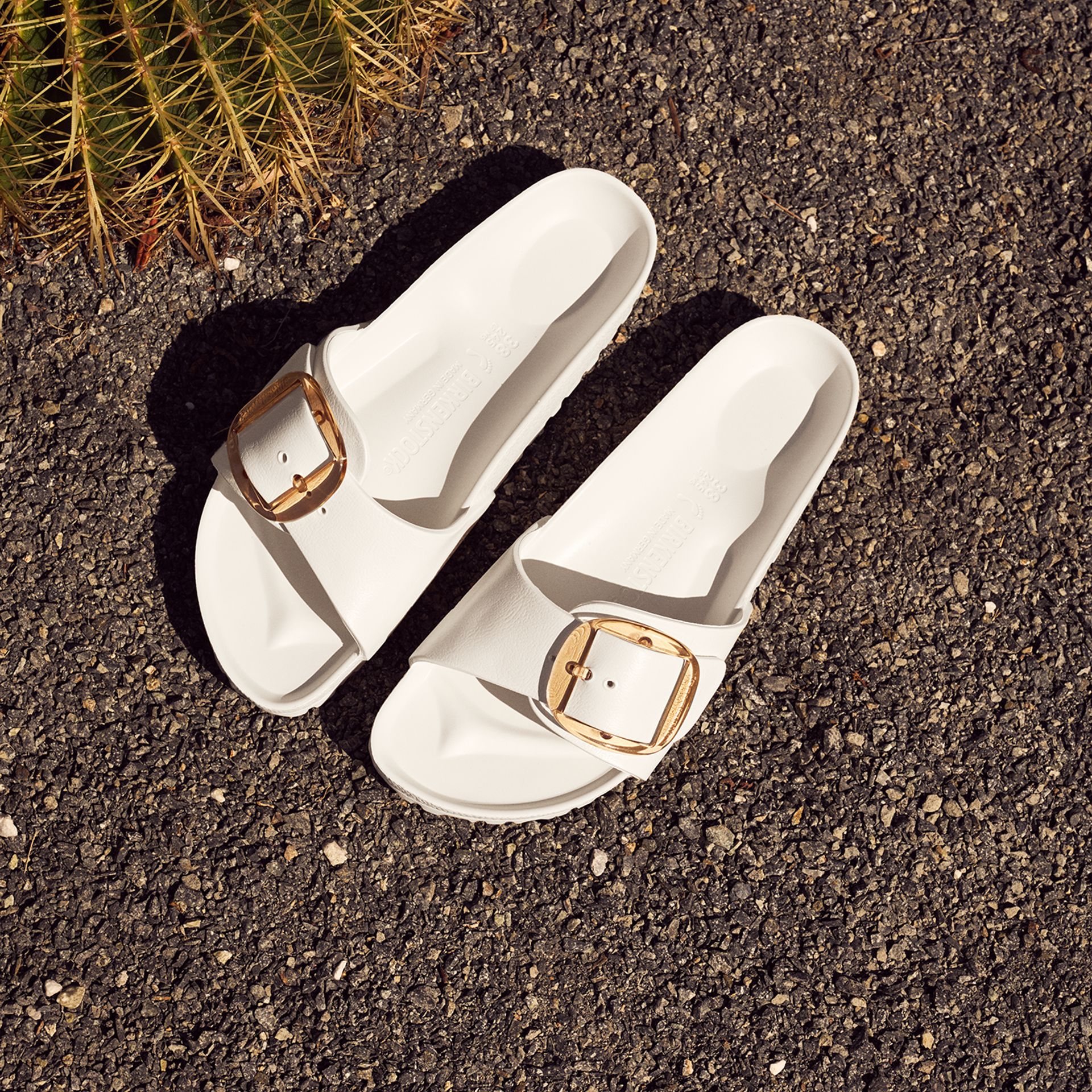 プールや海辺でも活躍する素材です。(たまに雨の日に履いている方も見かけますね!)クリアなバックルがポイントの新作です。