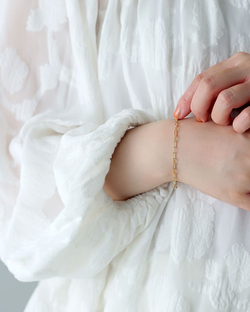 K18は中空ペーパークリップチェーンを揃え、ネックレスとブレスレットで展開します。