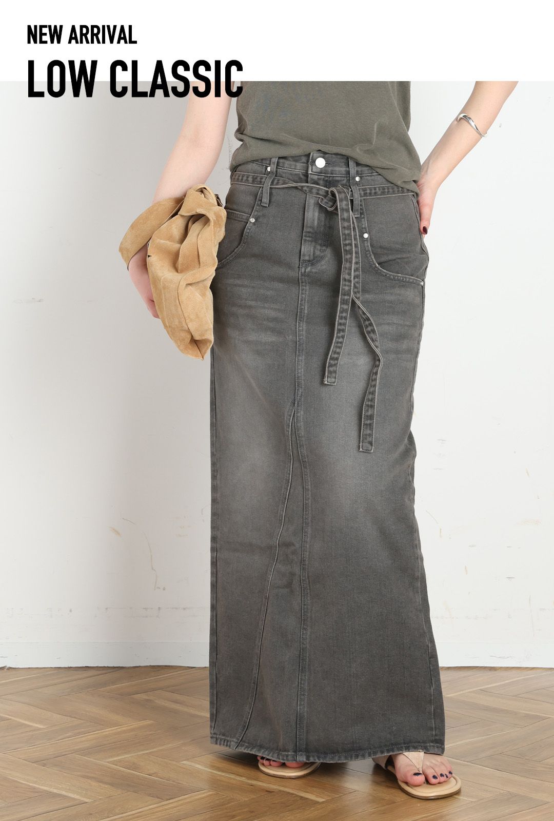昨年ご好評をいただいた、シンプルなTシャツでサマになるデニムスカートが新色を加えて今年も登場。