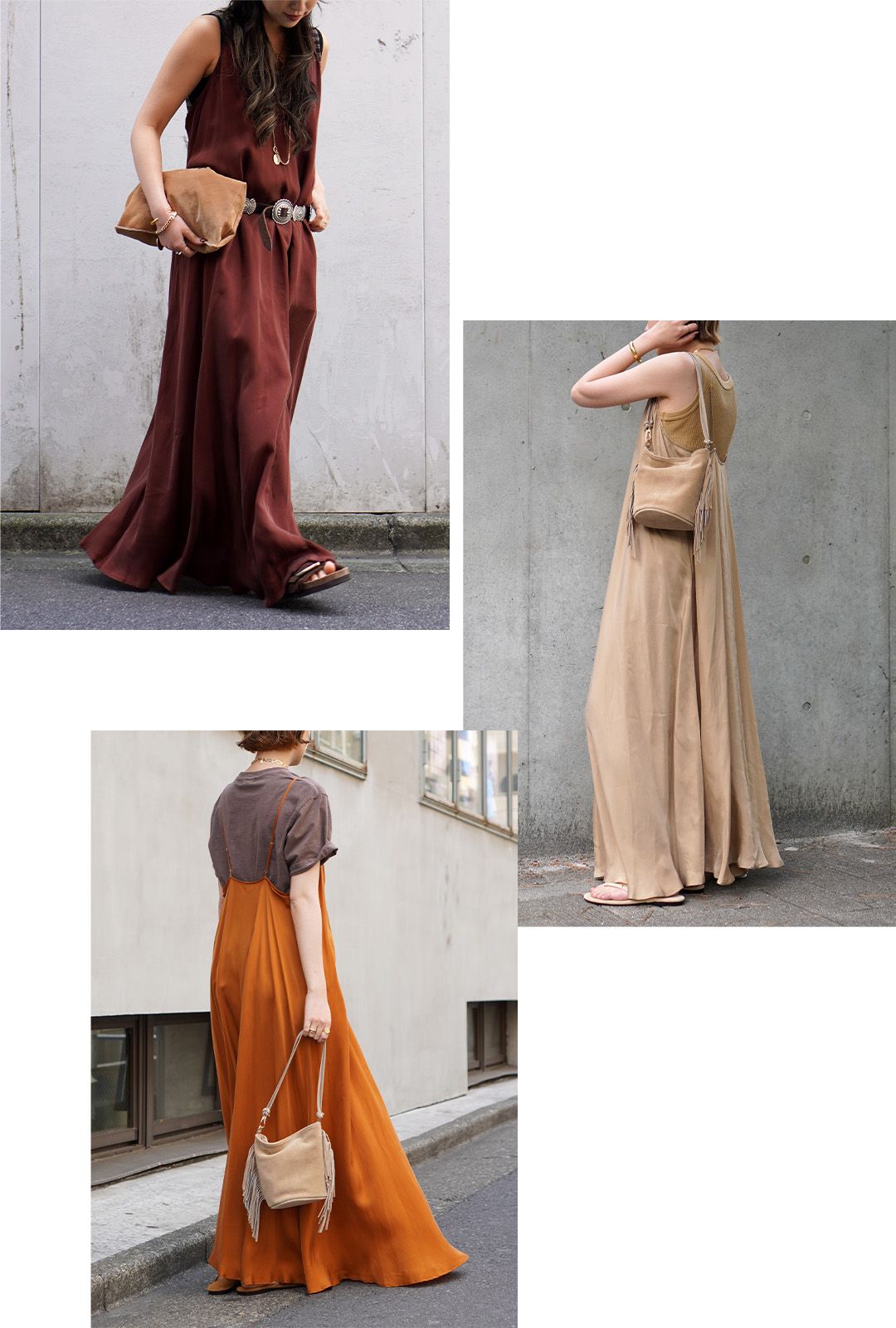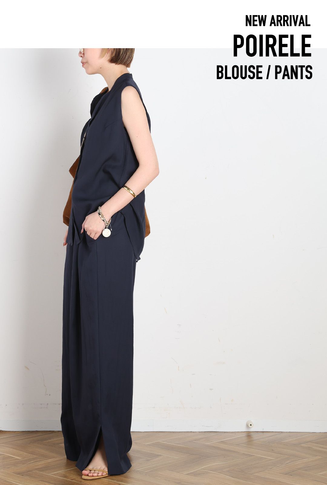 夏の焼けた肌によく映えるキャメルカラーが、女性らしさを引き立ててくれる。