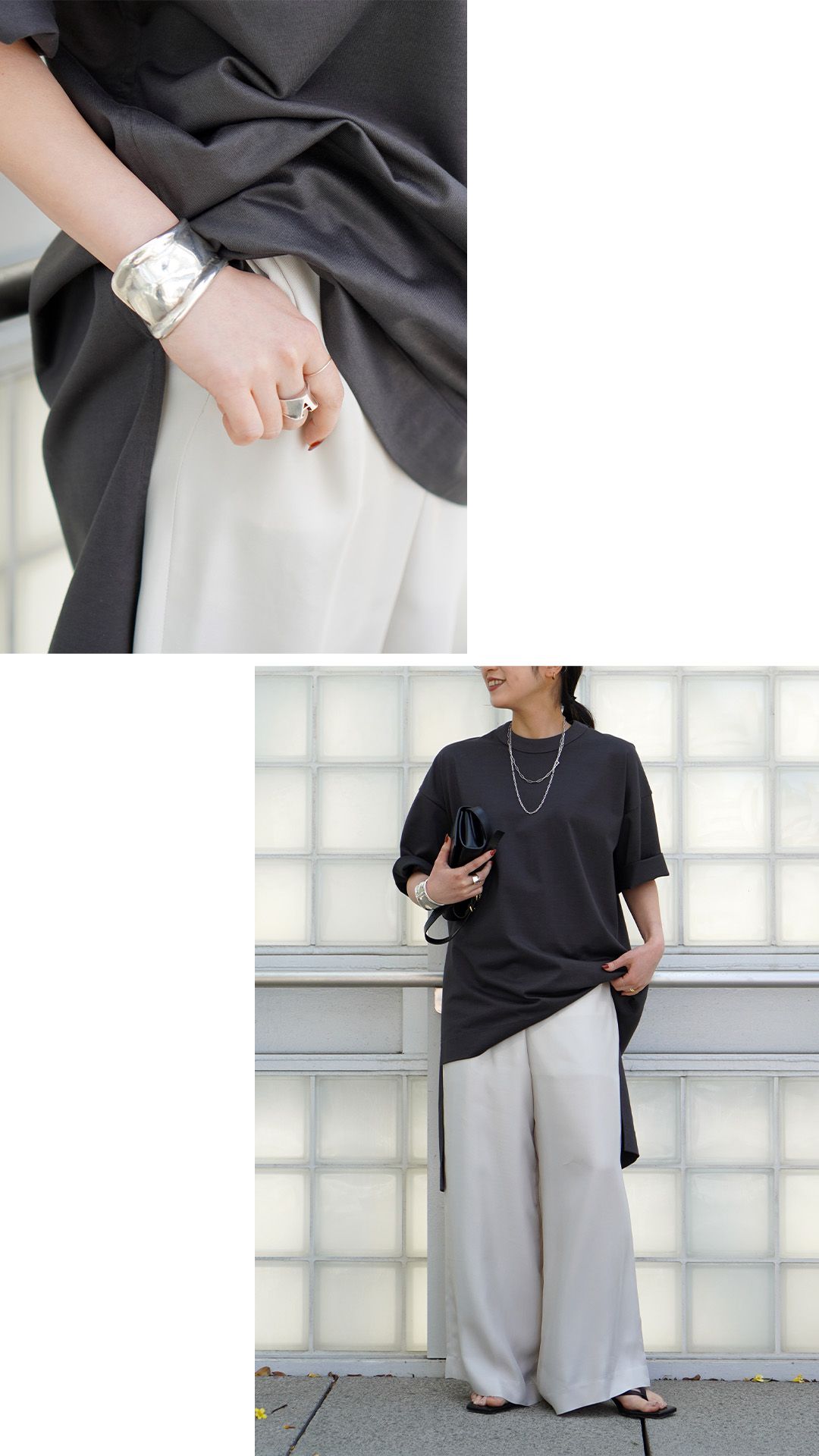 上品なドレープ感とサラっとした肌触りのイタリアのインポート生地は、ワイドシルエットもスッキリとした印象に。