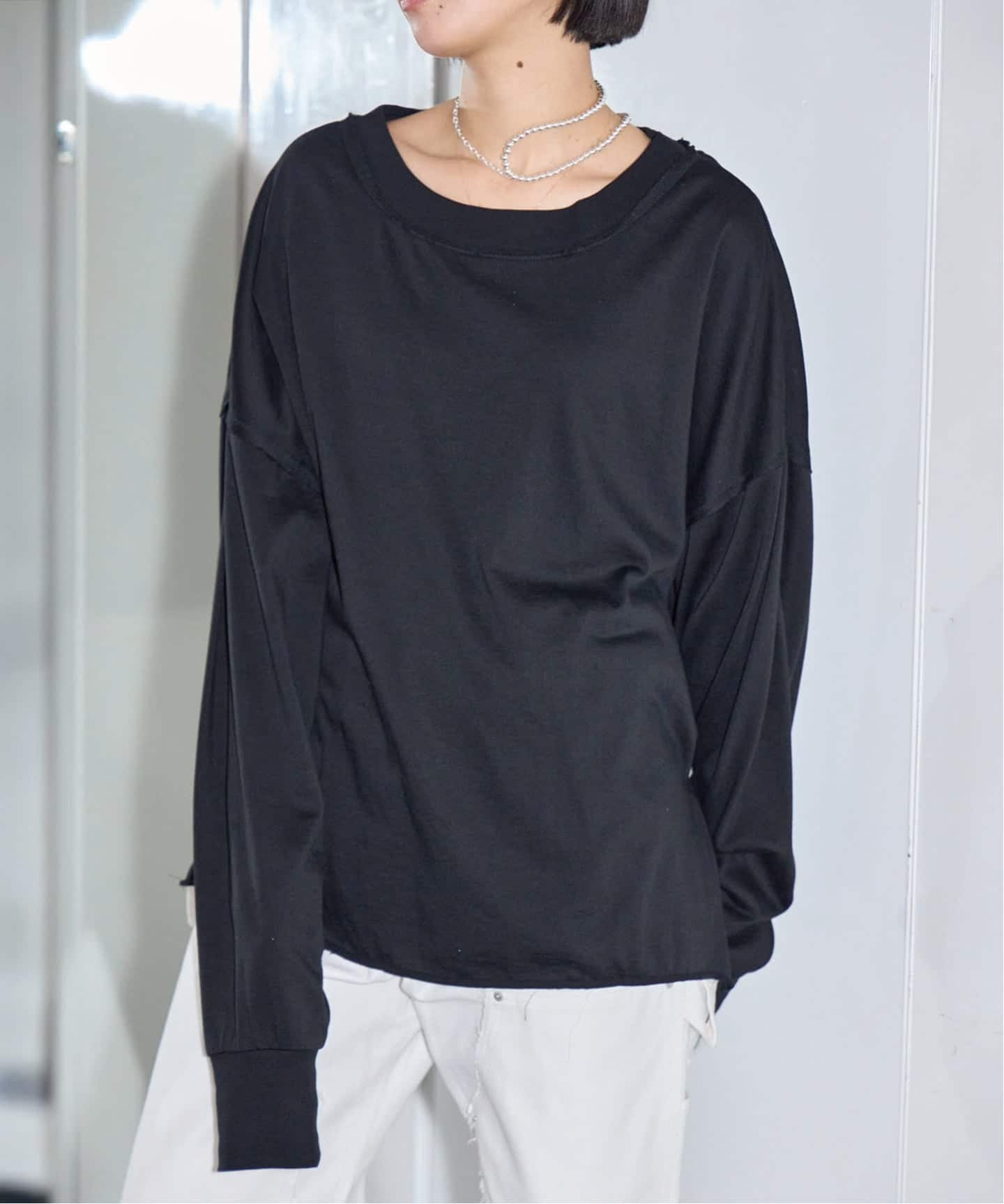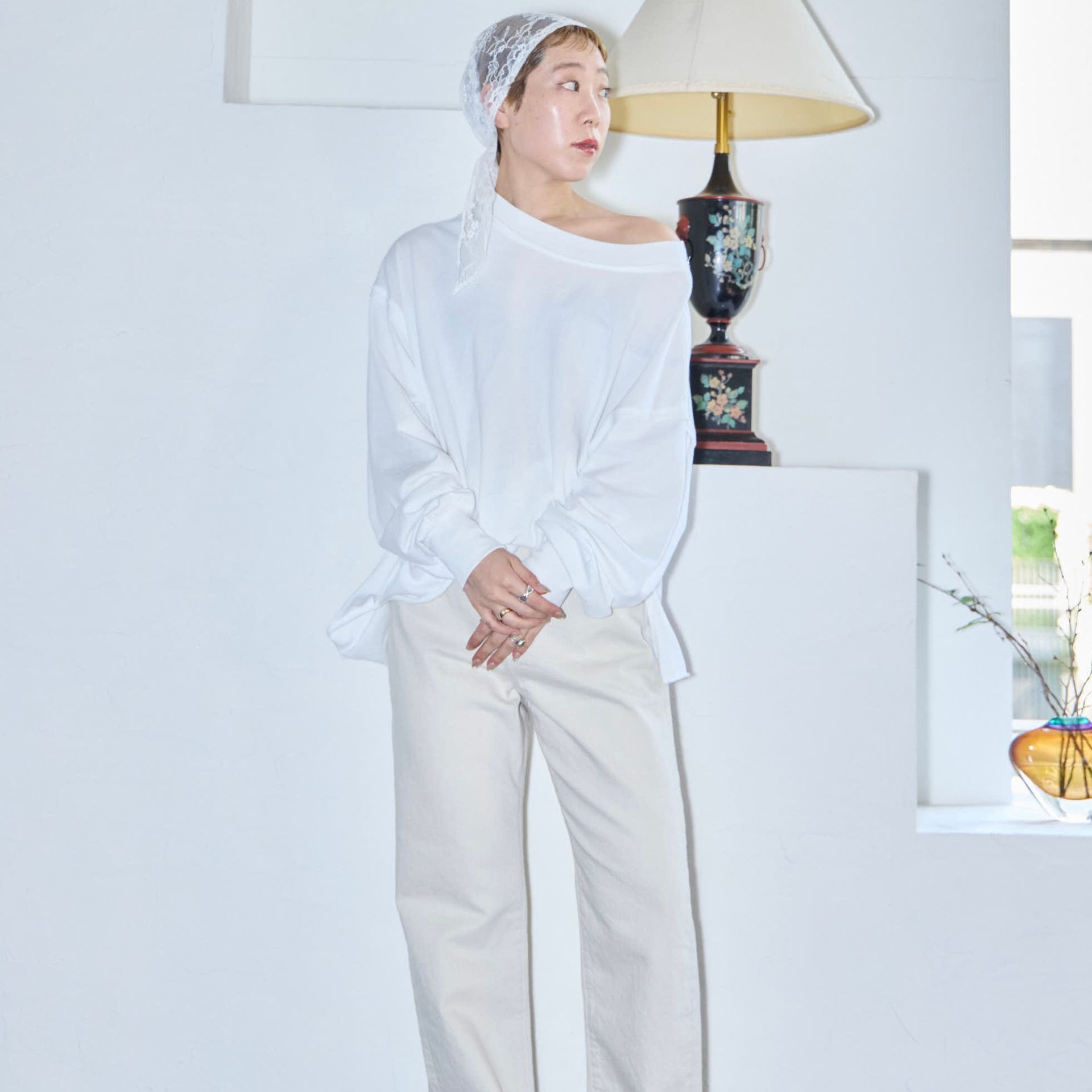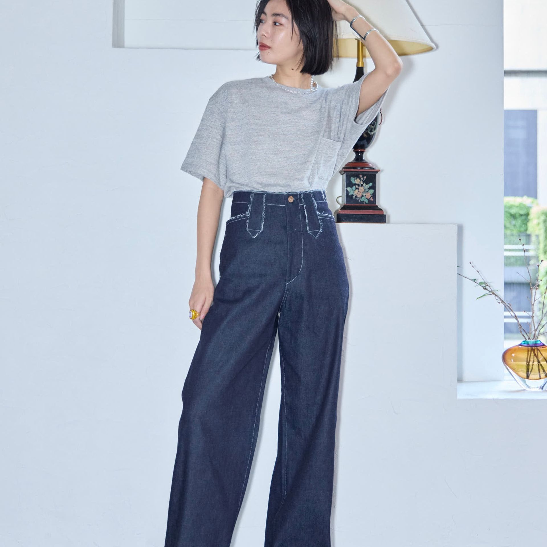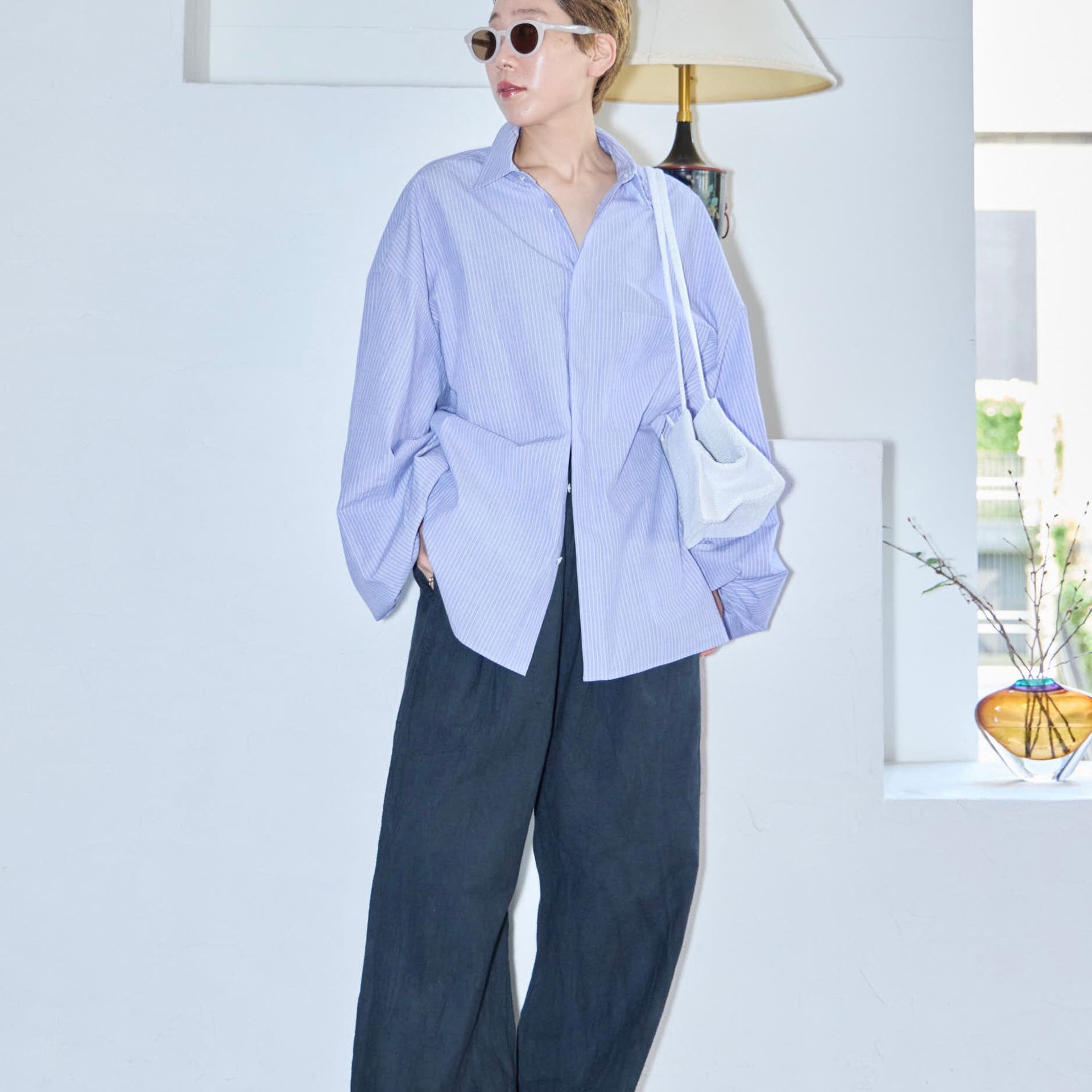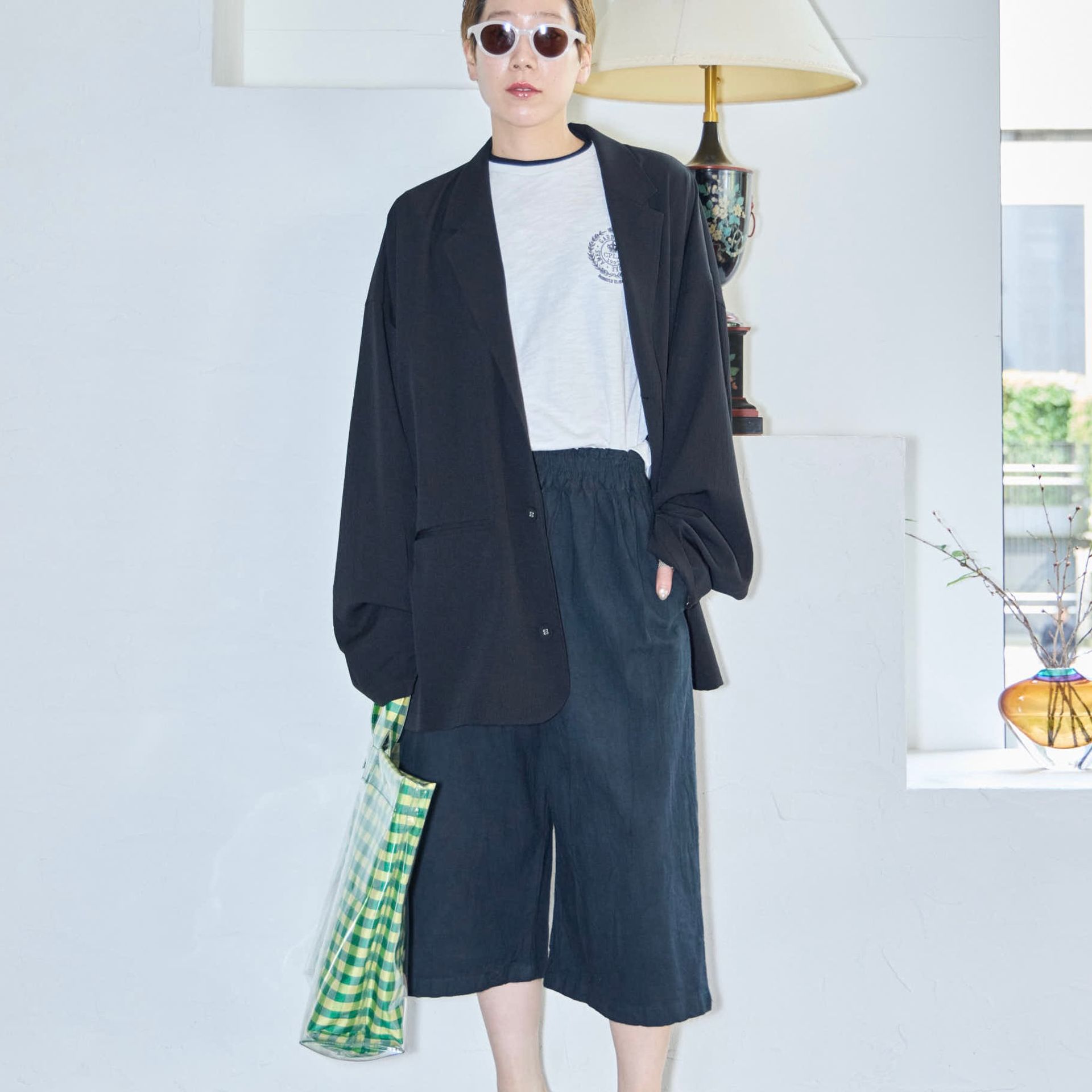パンツは鄭恵中デザインのベーシックアイテムであるワイドパンツ。リラックス感を最大に感じられ、敢えて超ルーズシルエットになるところが気に入って、一番大きいLサイズでオーダーしています。