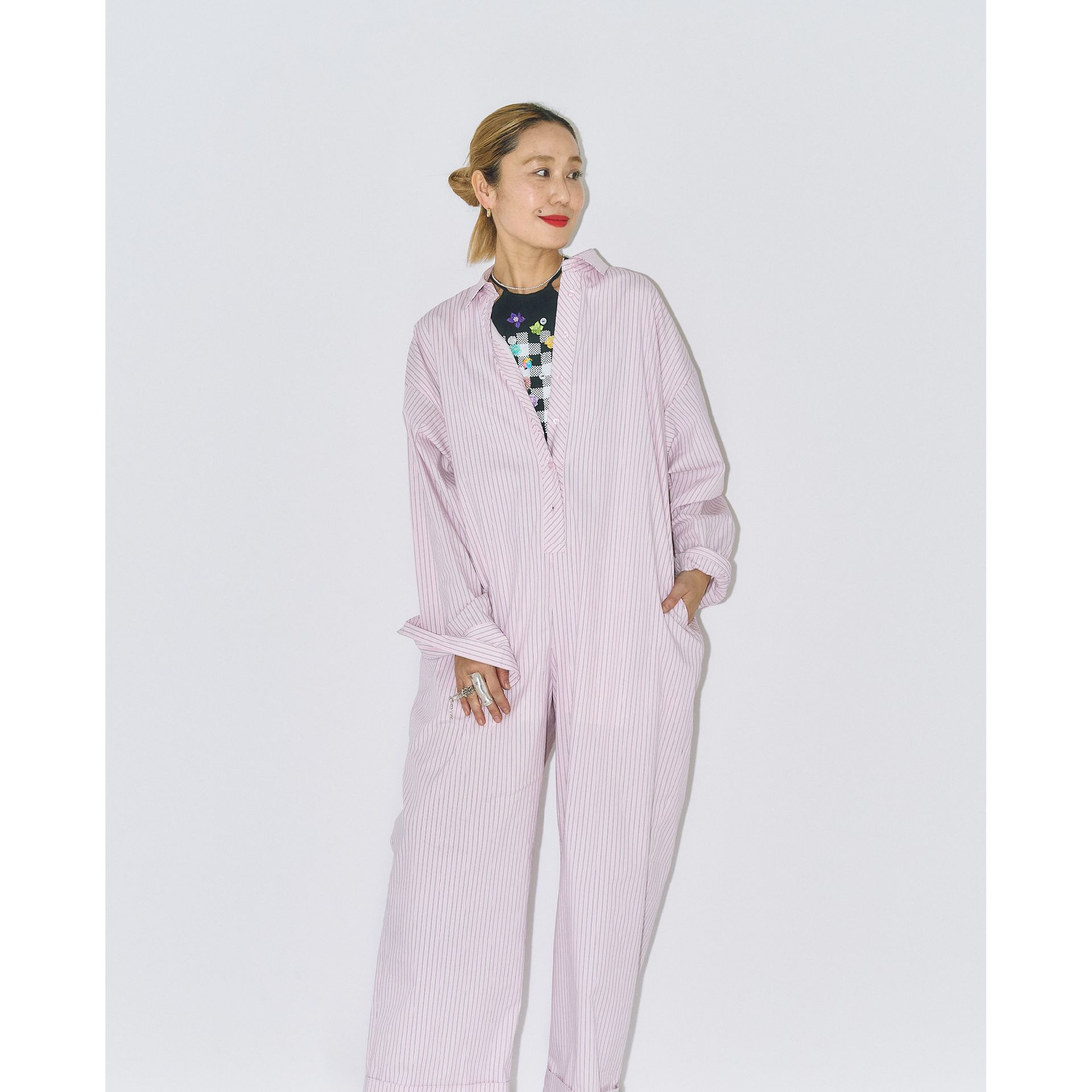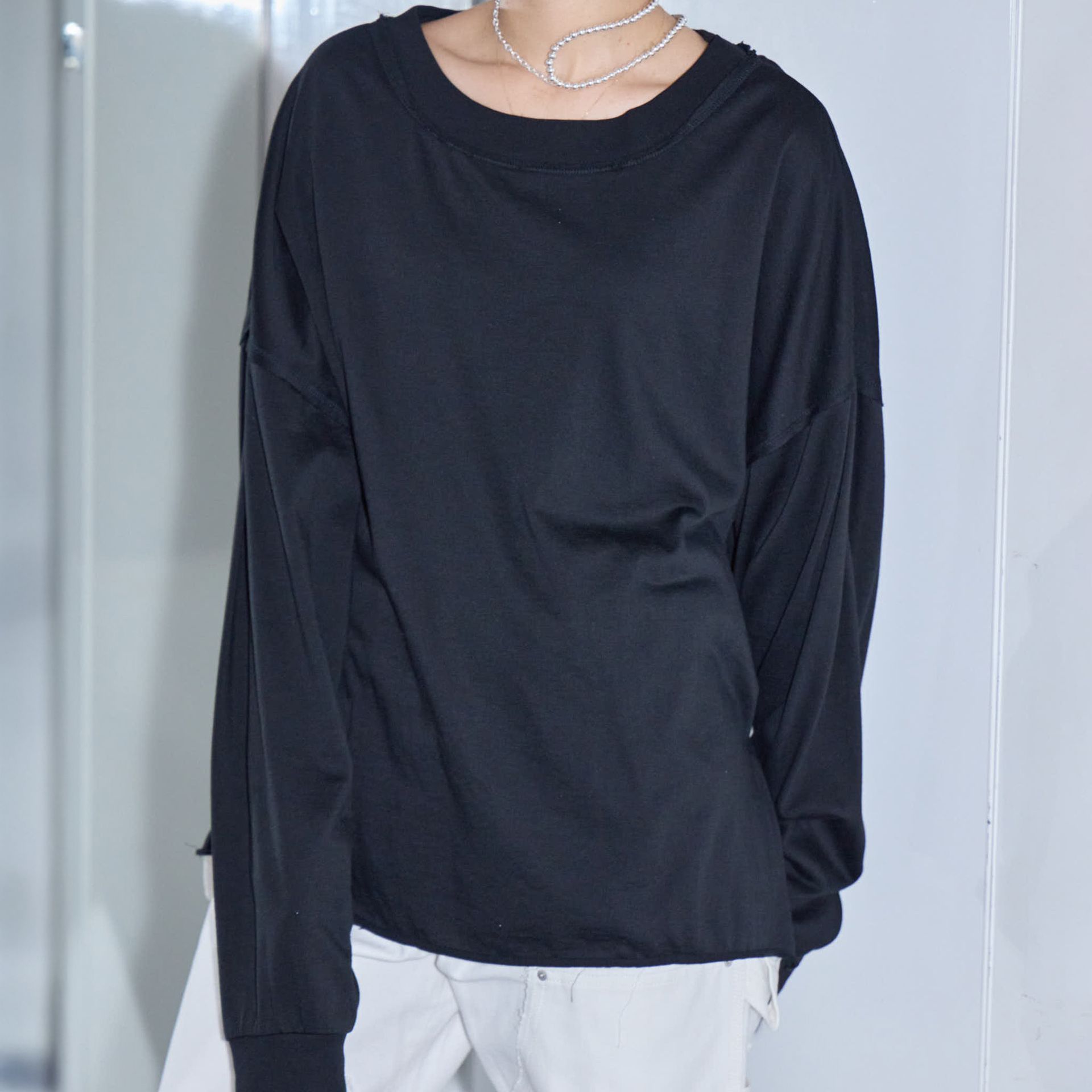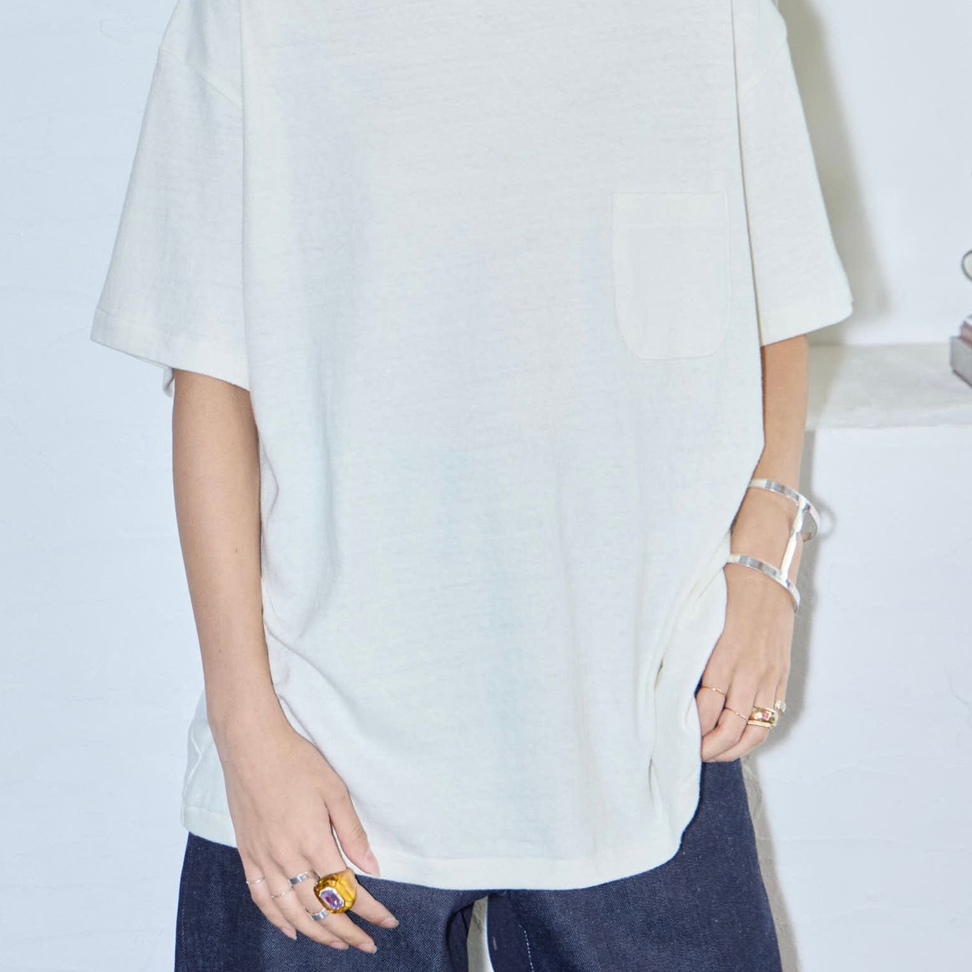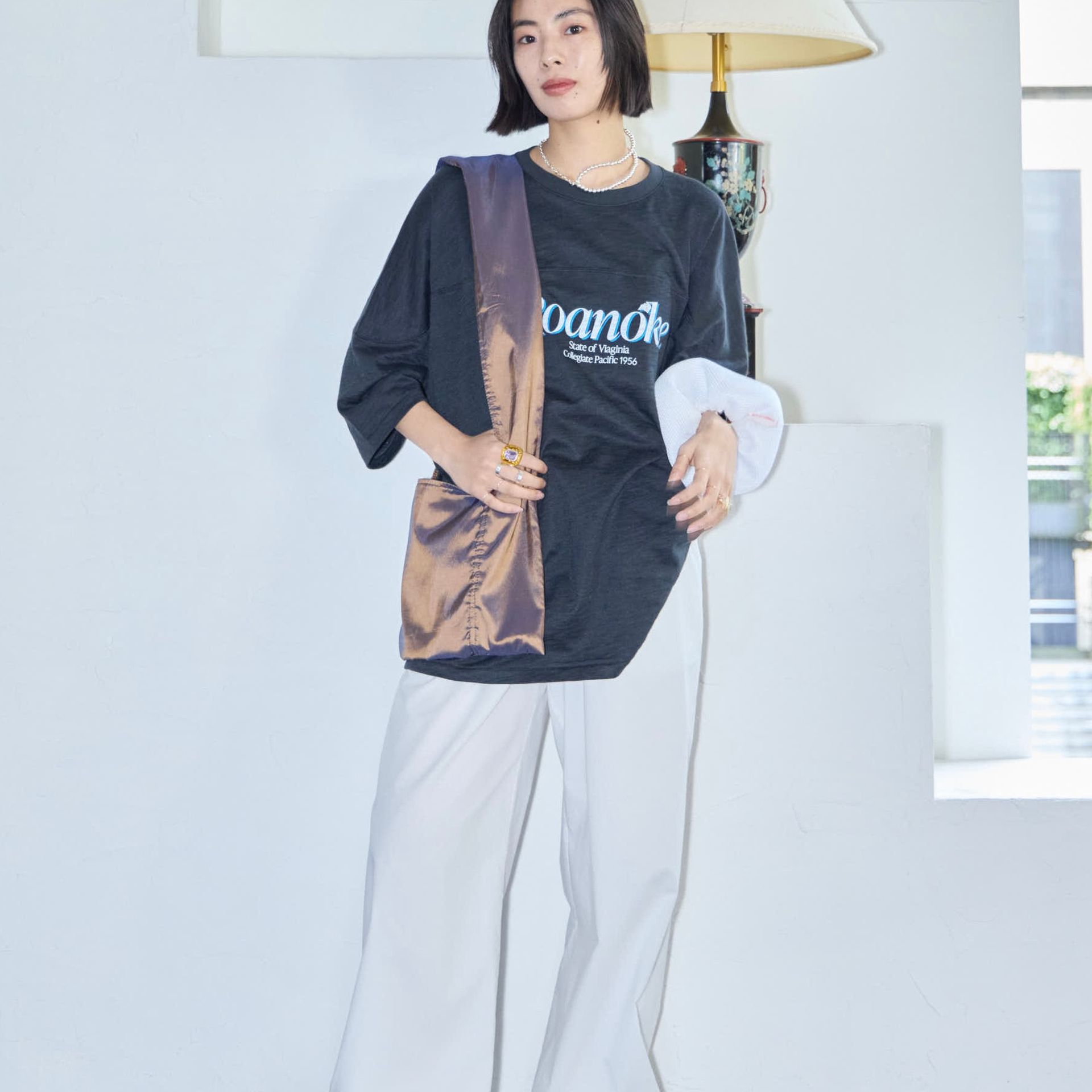 パンツは鄭恵中デザインのベーシックアイテムであるワイドパンツ。リラックス感を最大に感じられ、敢えて超ルーズシルエットになるところが気に入って、一番大きいLサイズでオーダーしています。