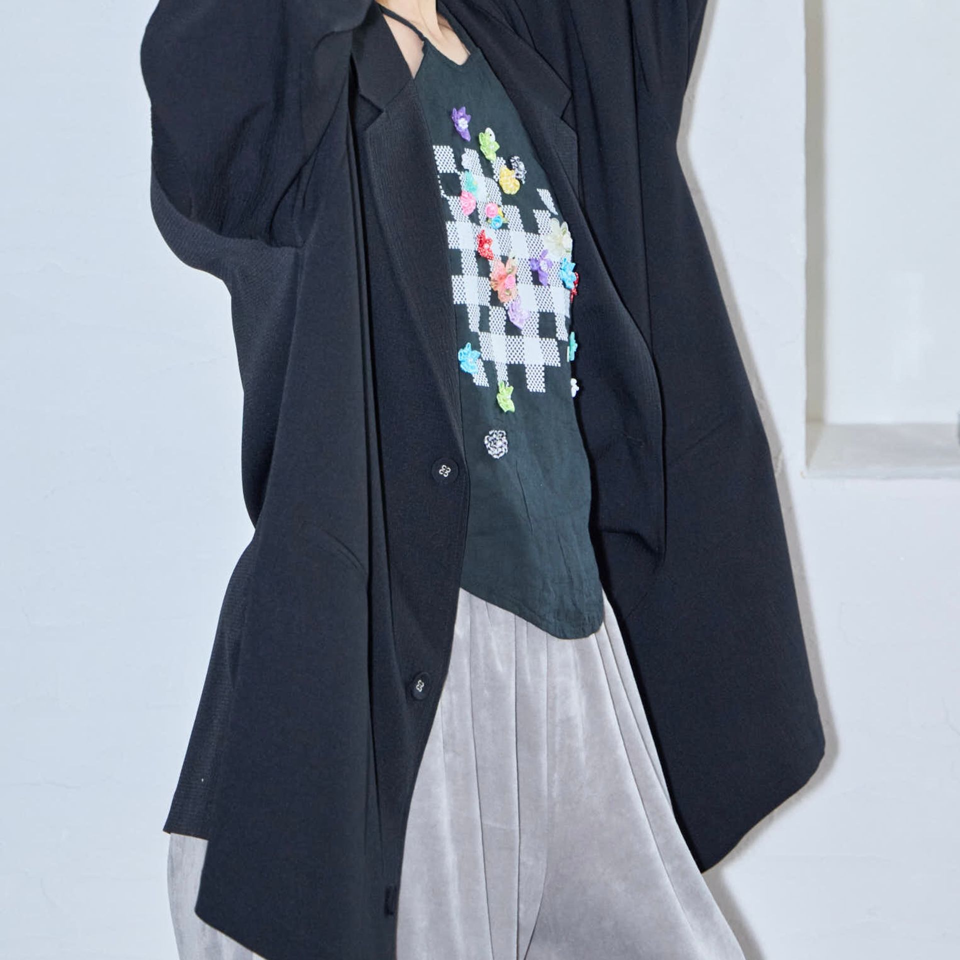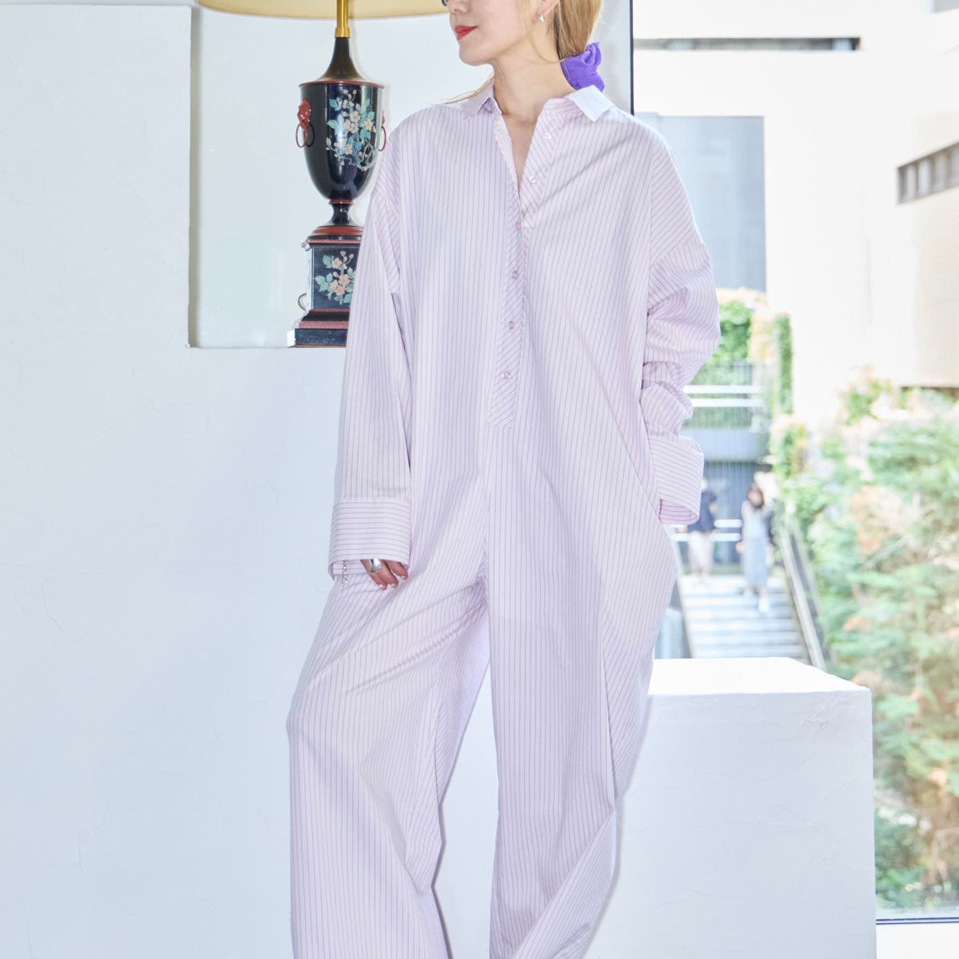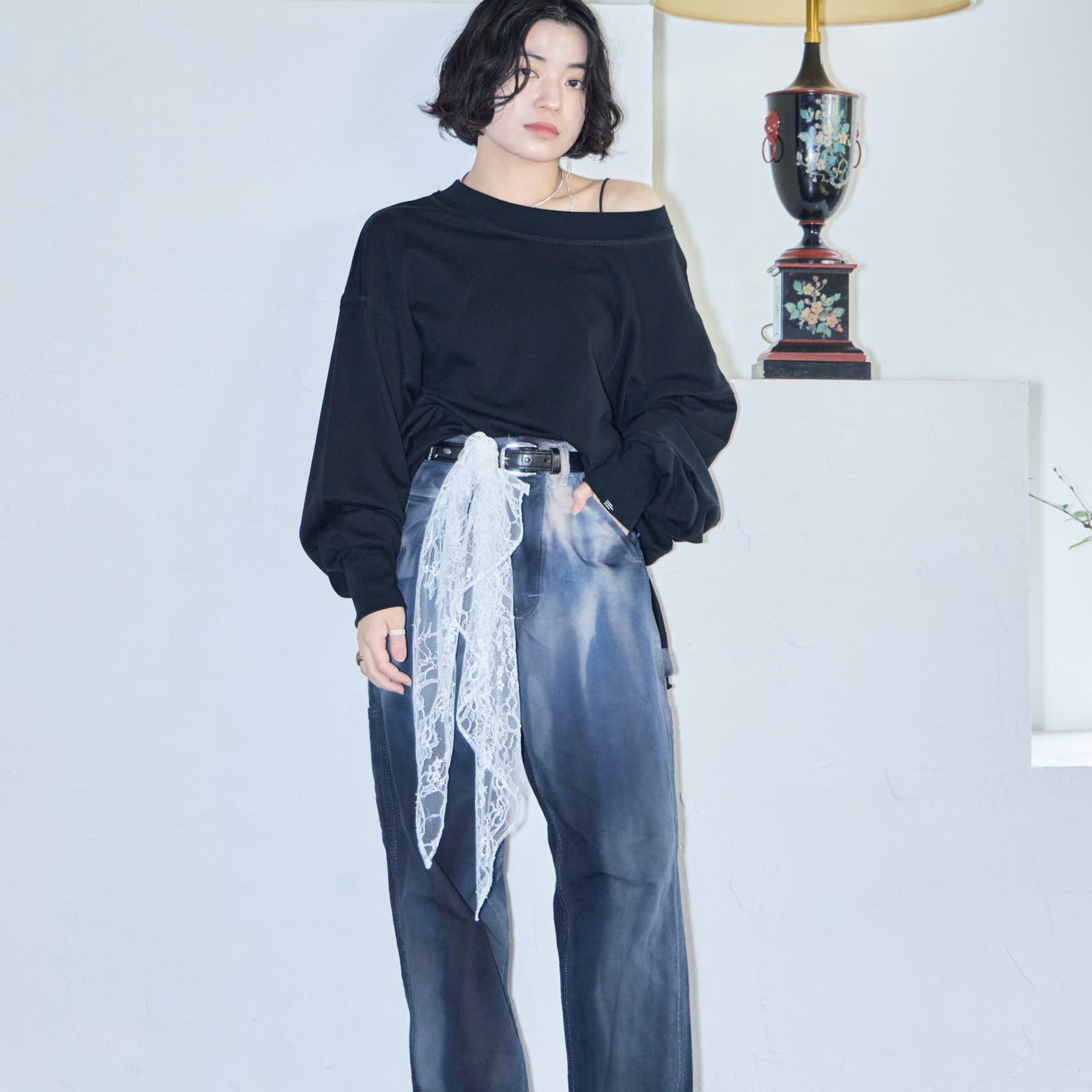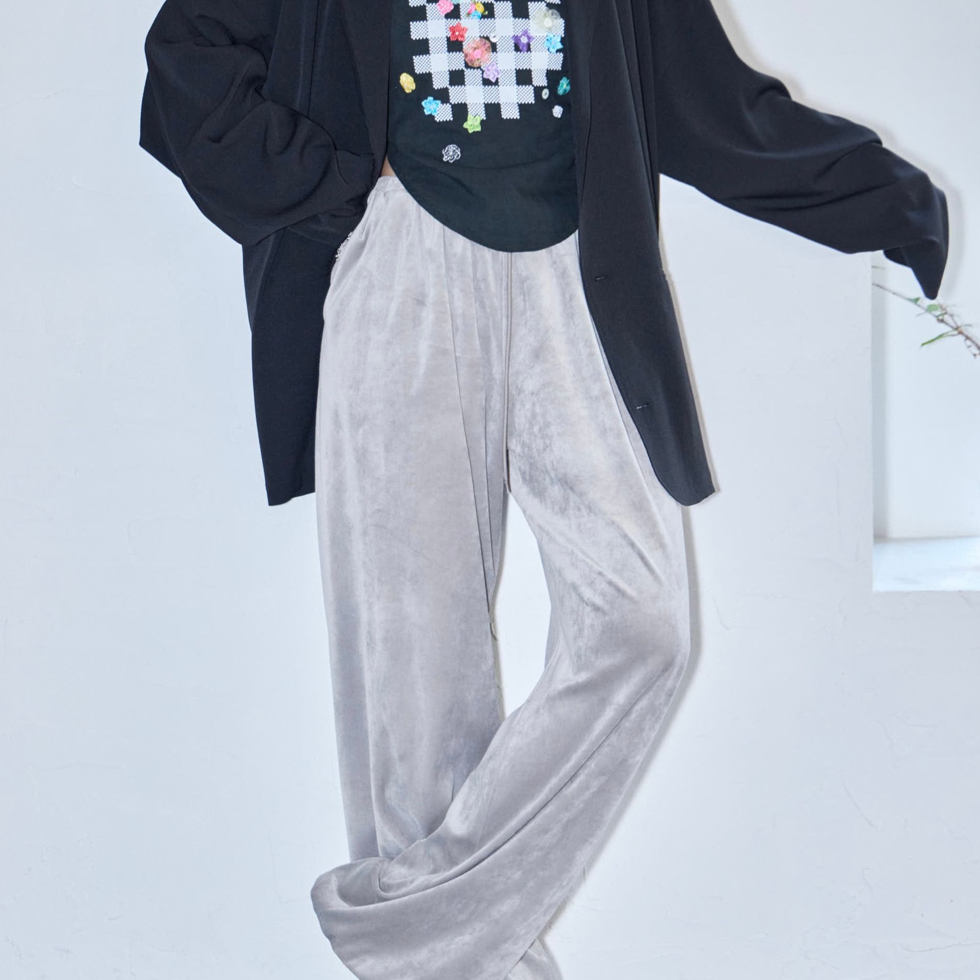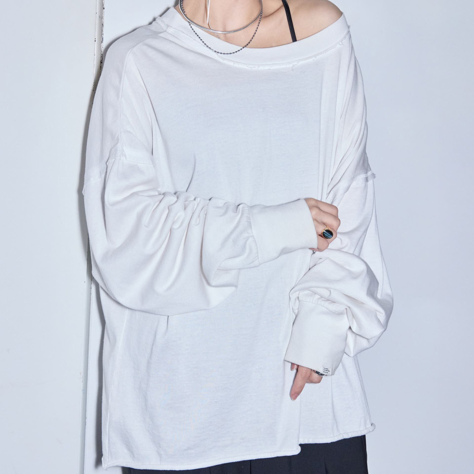 パンツは鄭恵中デザインのベーシックアイテムであるワイドパンツ。リラックス感を最大に感じられ、敢えて超ルーズシルエットになるところが気に入って、一番大きいLサイズでオーダーしています。