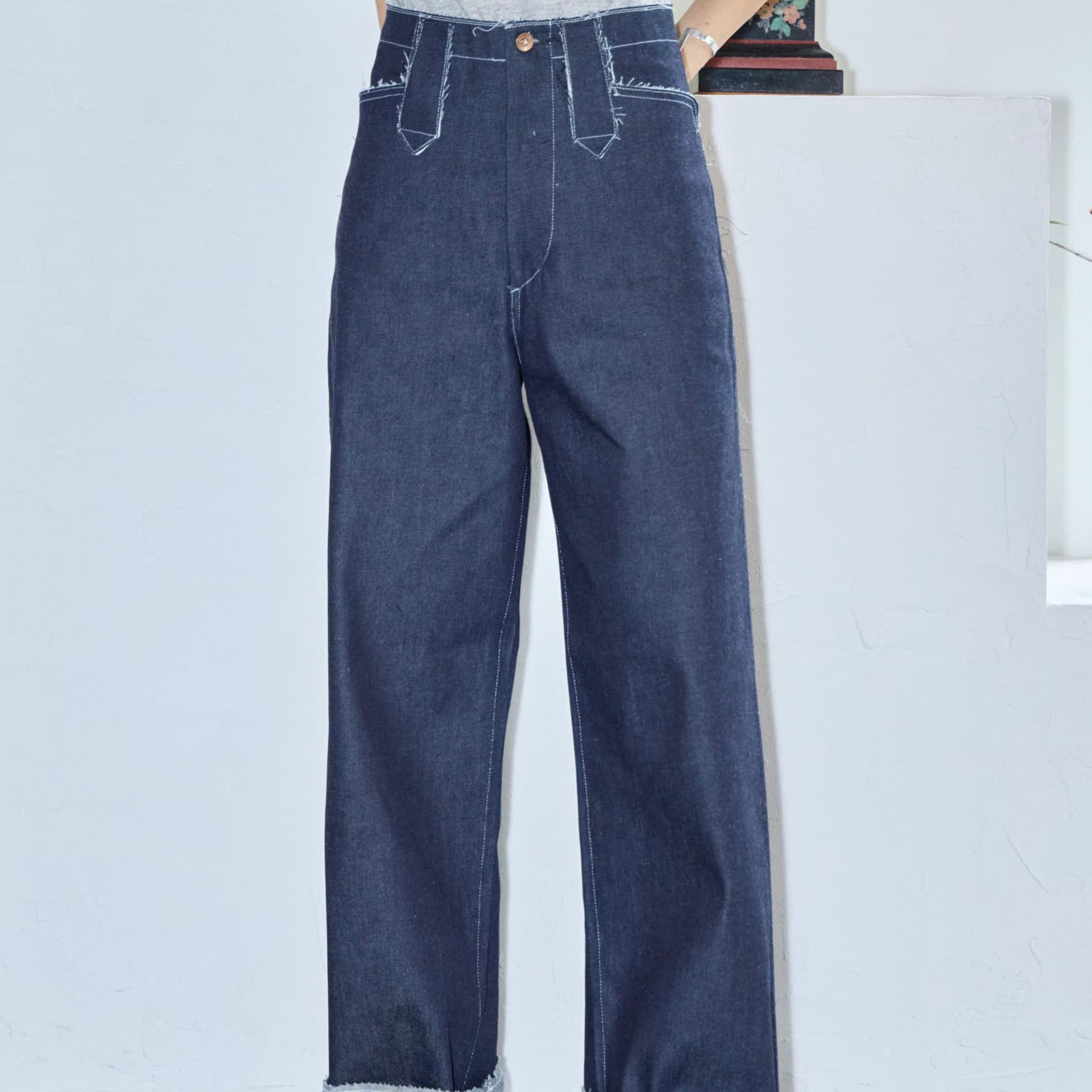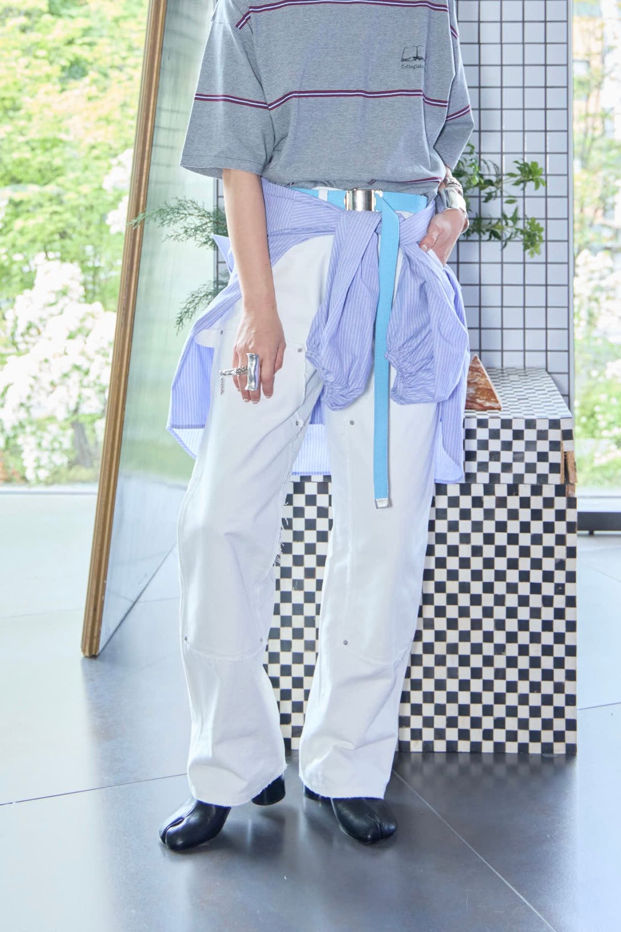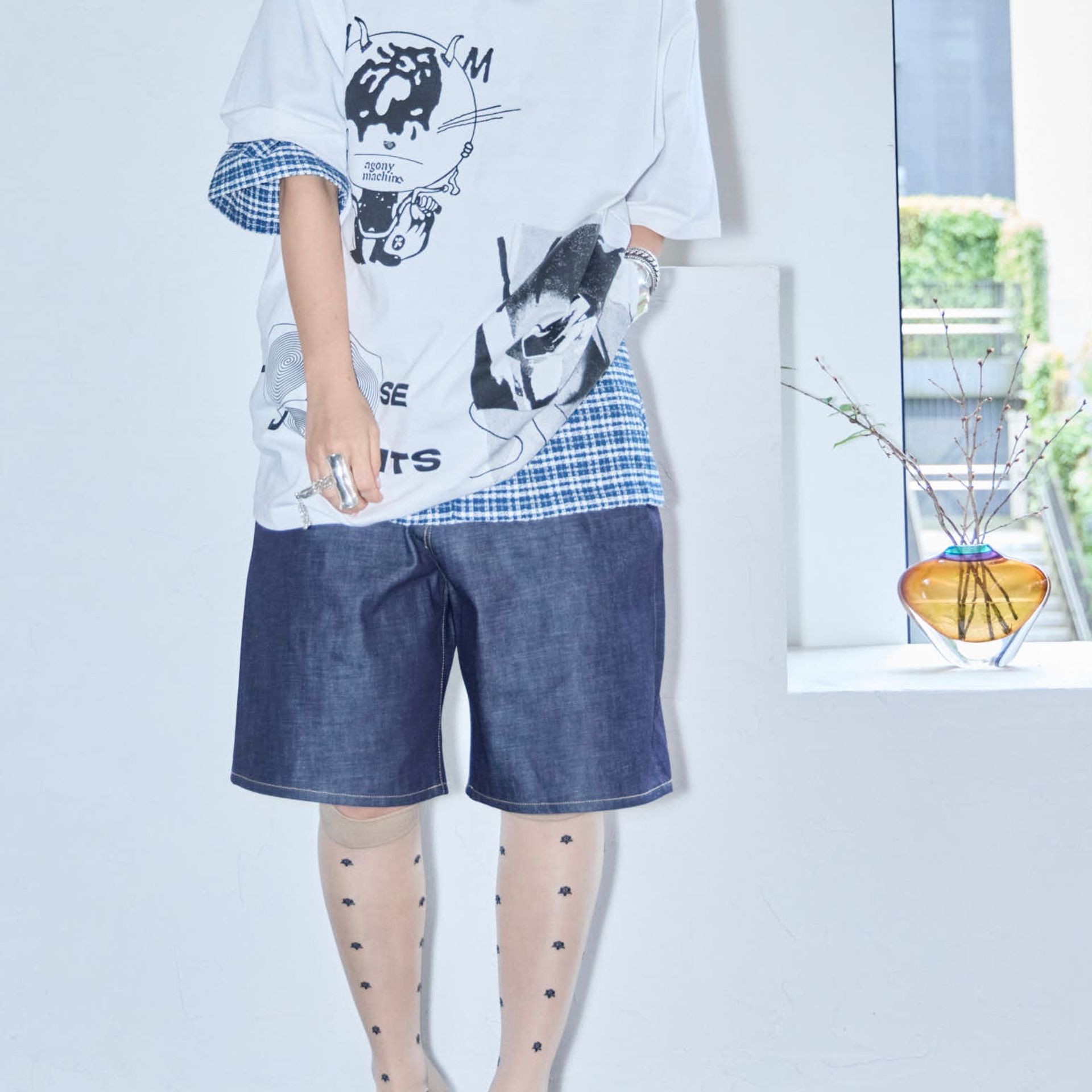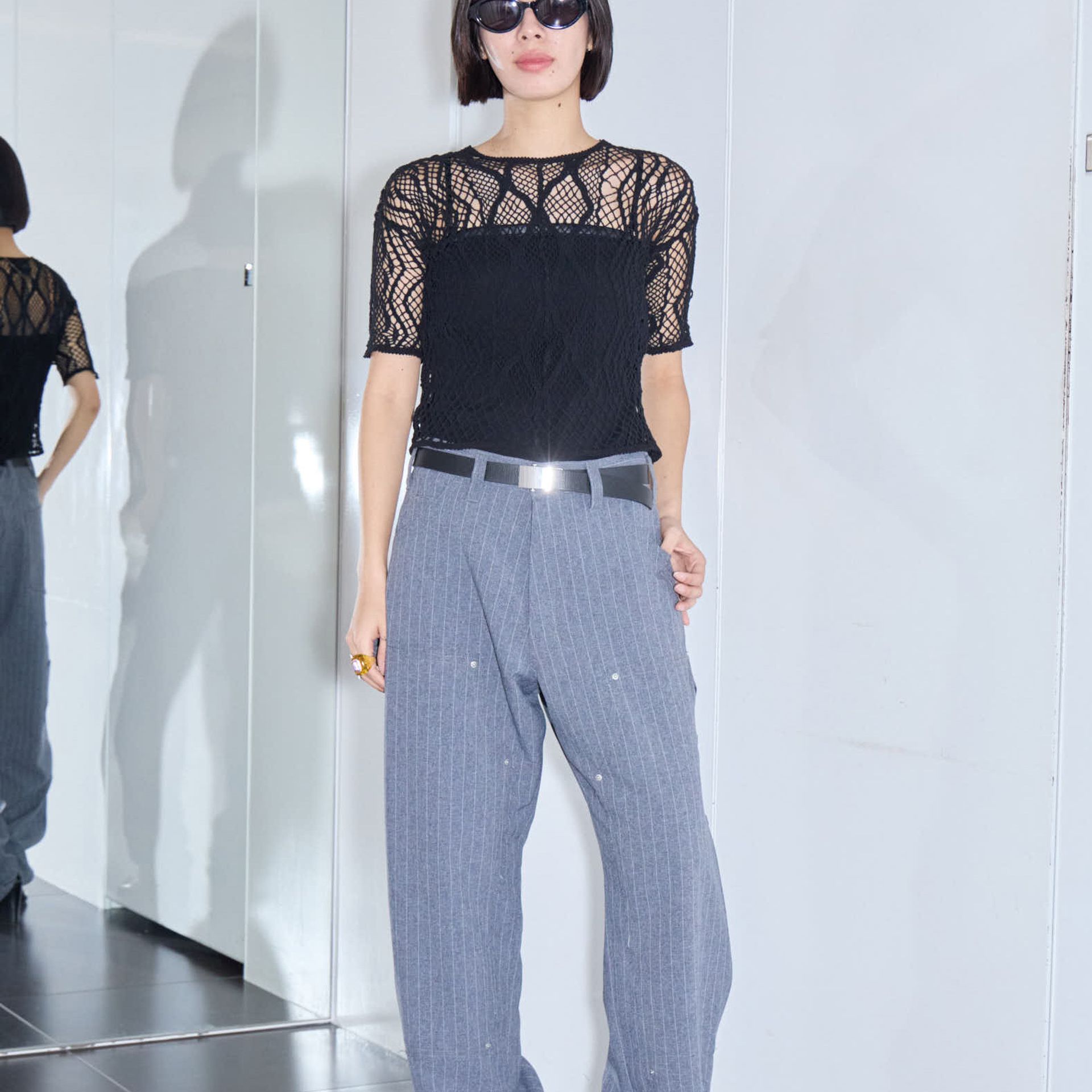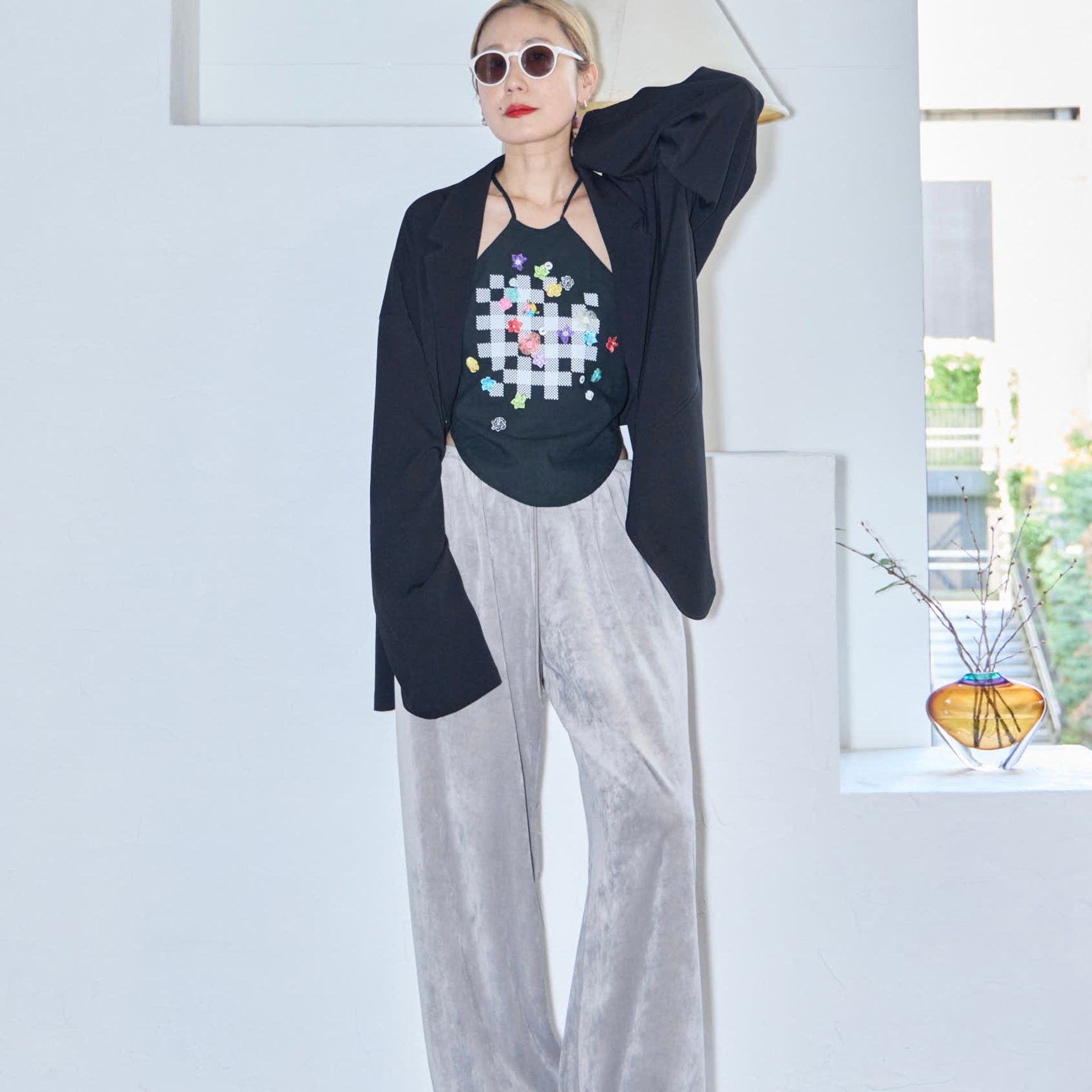 パンツは鄭恵中デザインのベーシックアイテムであるワイドパンツ。リラックス感を最大に感じられ、敢えて超ルーズシルエットになるところが気に入って、一番大きいLサイズでオーダーしています。
