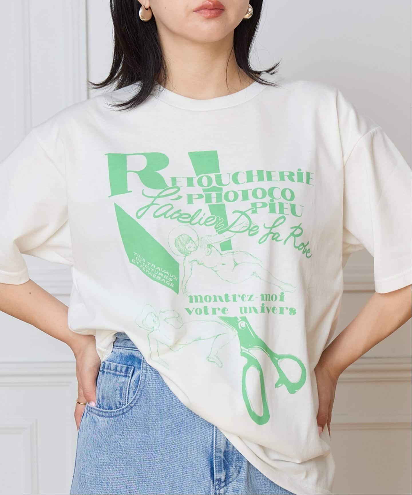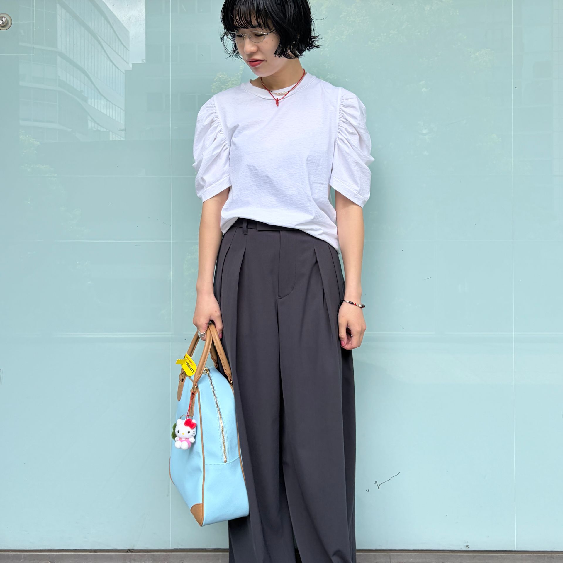 ラフな予定な日でも自分の気分は上げたいので、CURRENTAGEのパフスリーブTEEを合わせています。