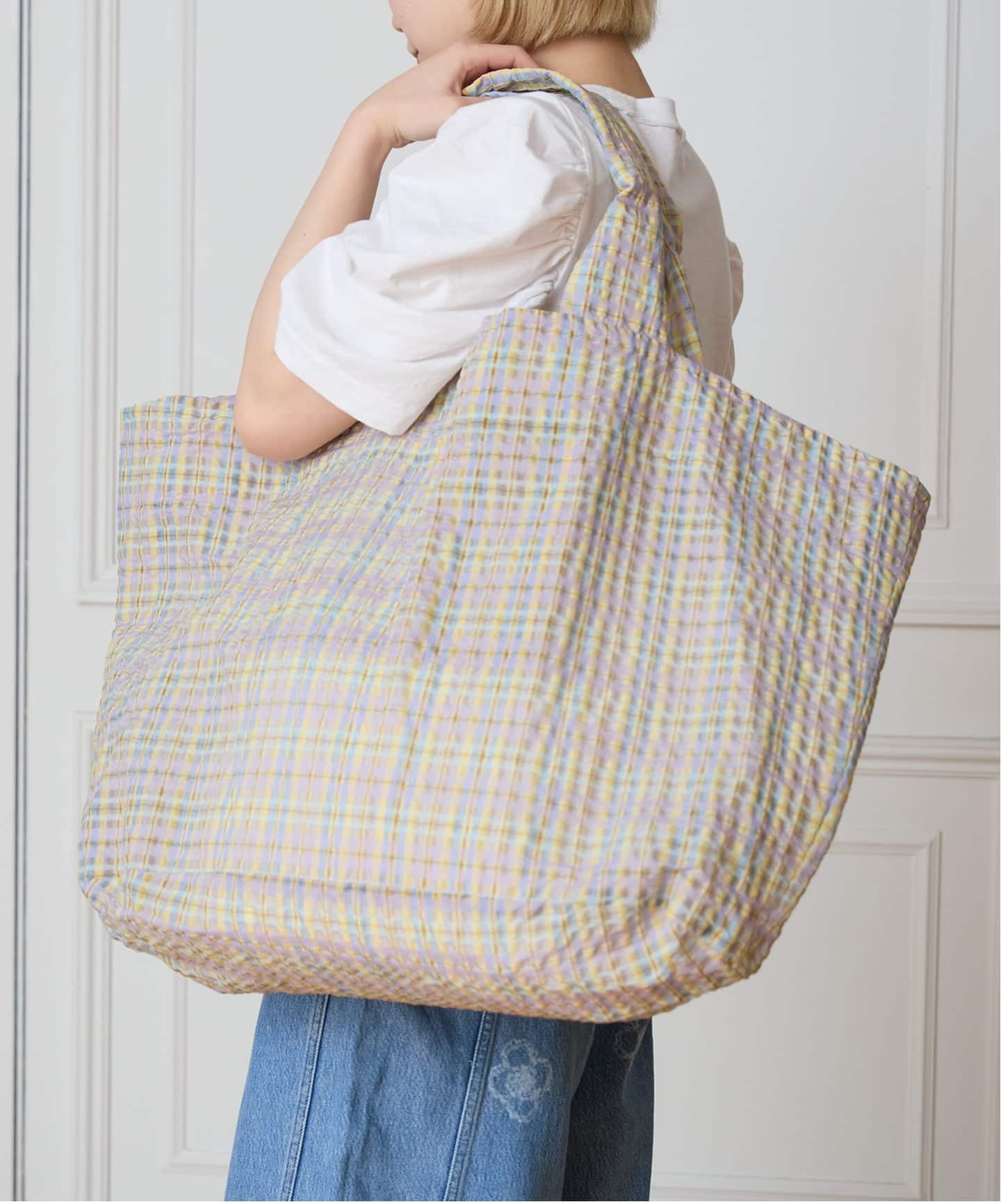 シアーチェックのトートバッグは2泊3日の荷物が余裕で入るくらい大容量!