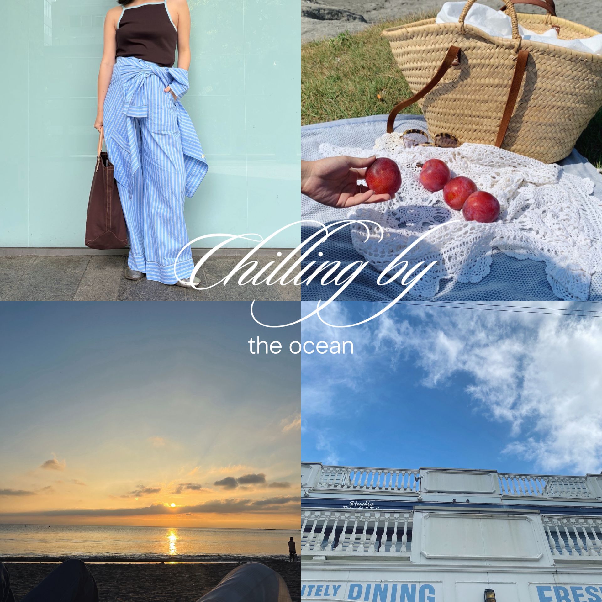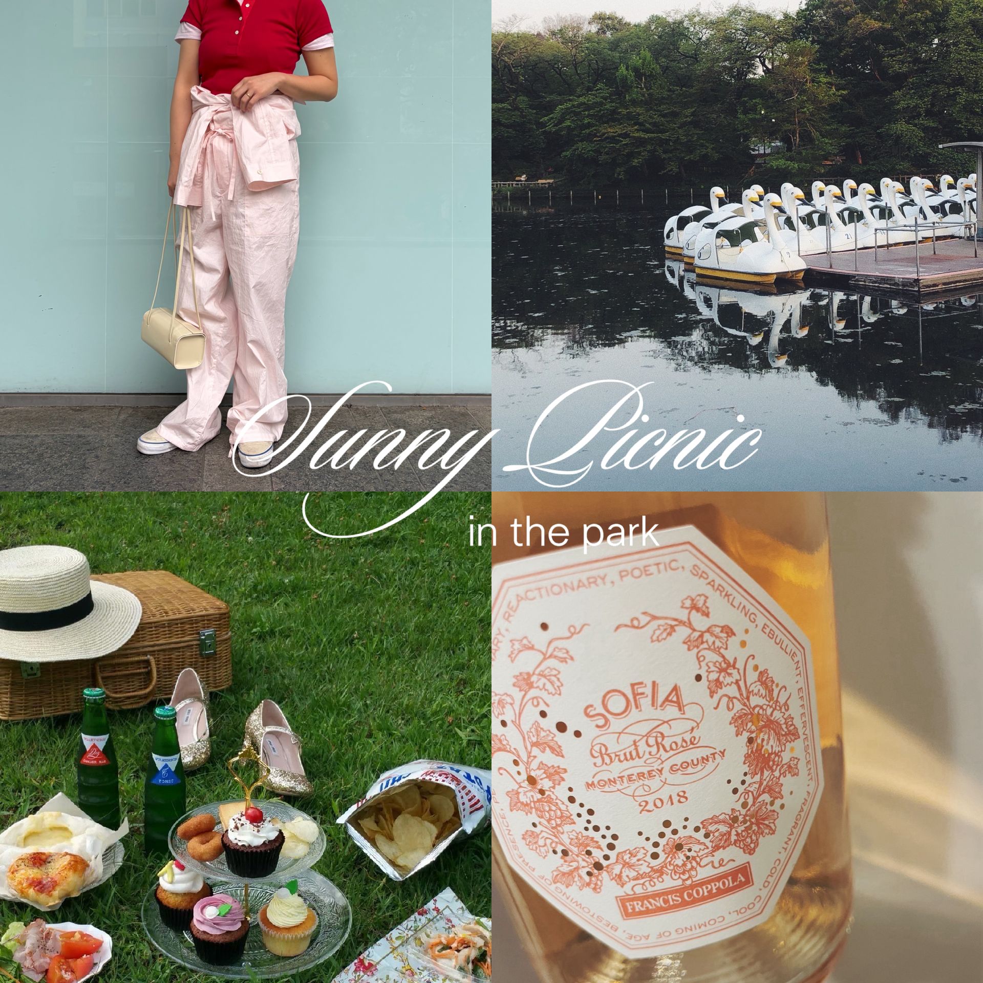 井之頭公園にピクニックに行く予定。スワンボートに合いそうなスタイリングをイメージして考えました。