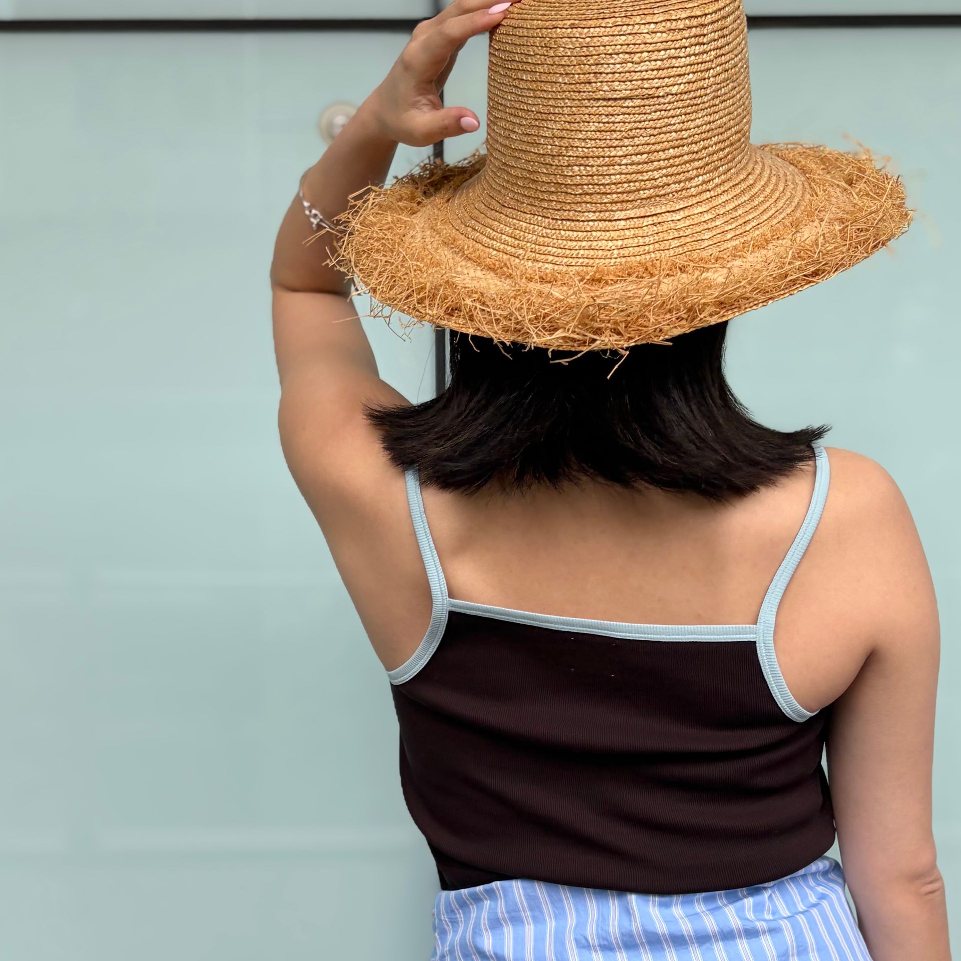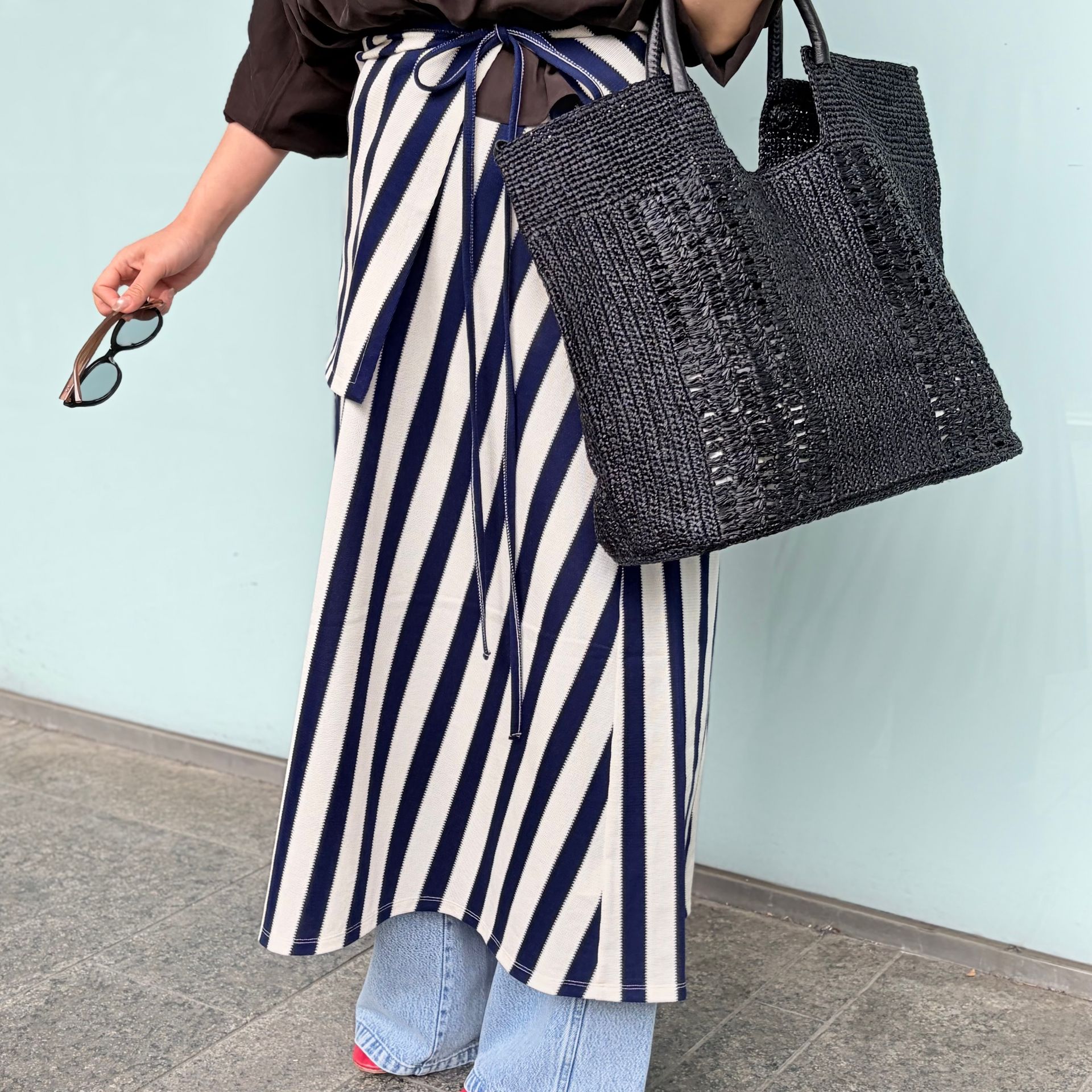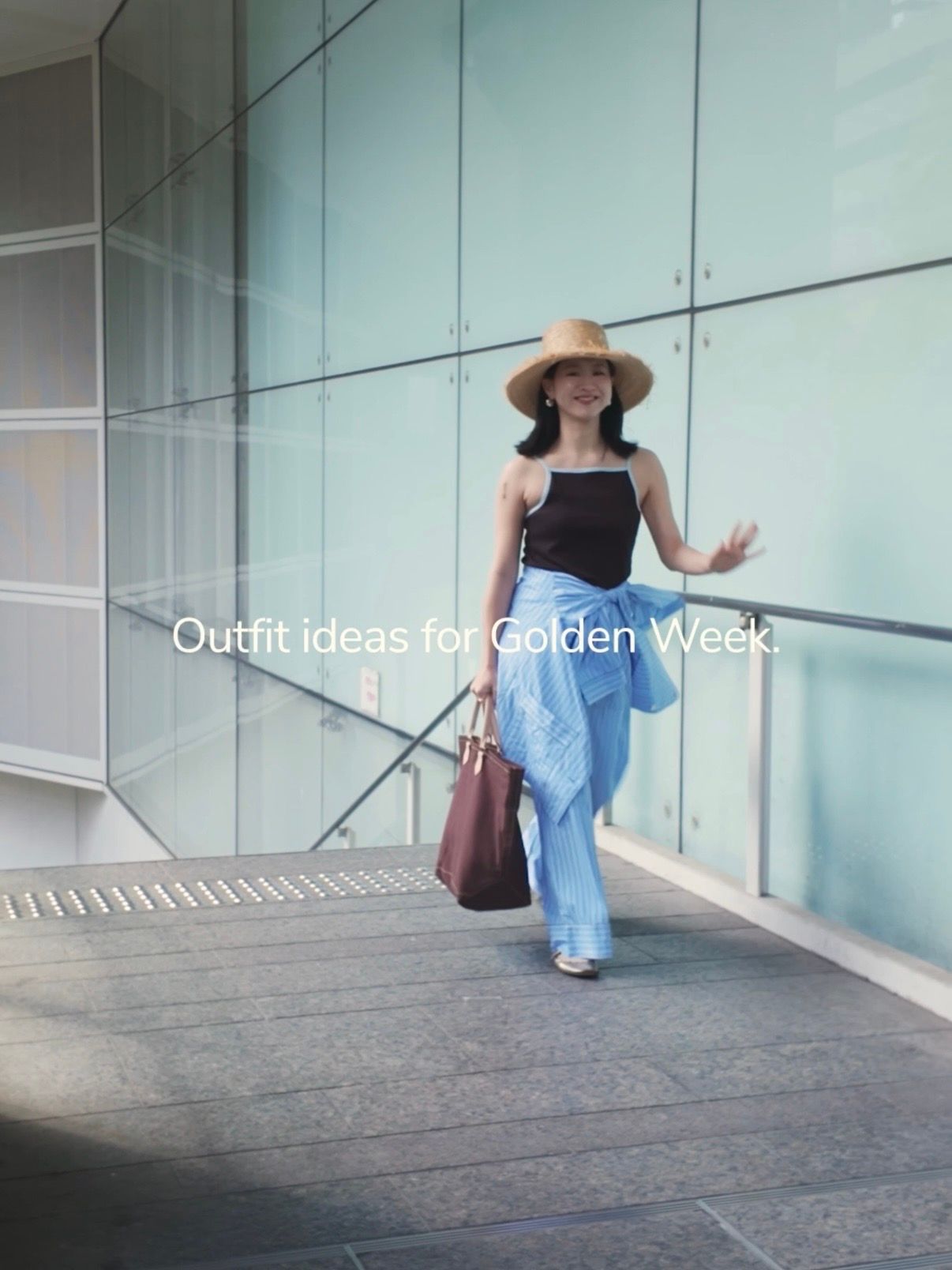 トップスやバッグで深めのブラウンを合わせて、落ち着きのある印象に。大人のアーバンリゾートスタイル*