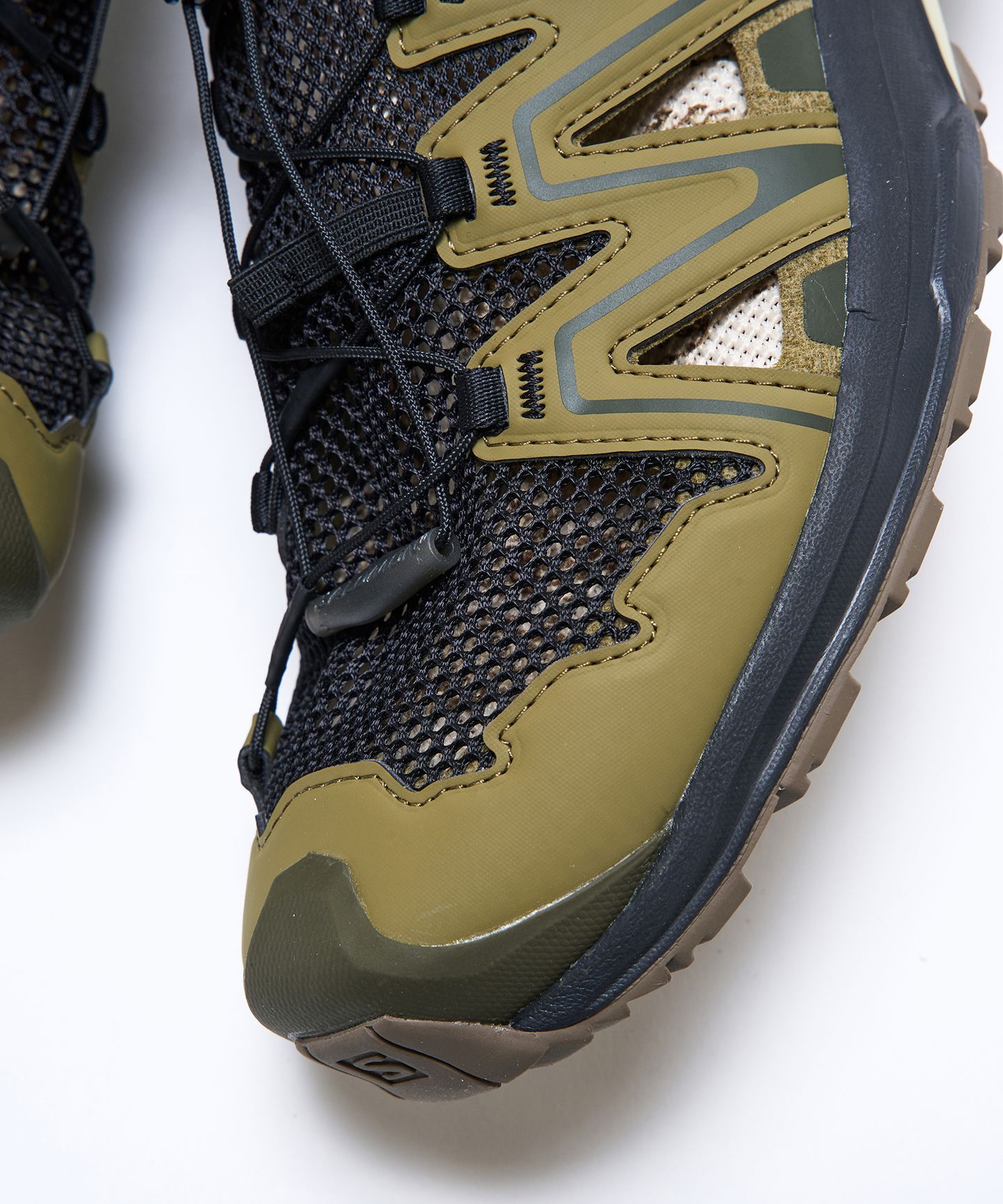 アウターシューズは通気性の高い速乾メッシュ素材で作られており、水辺での着用にも最適です。インナーシューズは柔らかく、カジュアルなスリッパとしても使えます。組み合わせれば街でもトレイルでもスポーティーなルックが完成します。