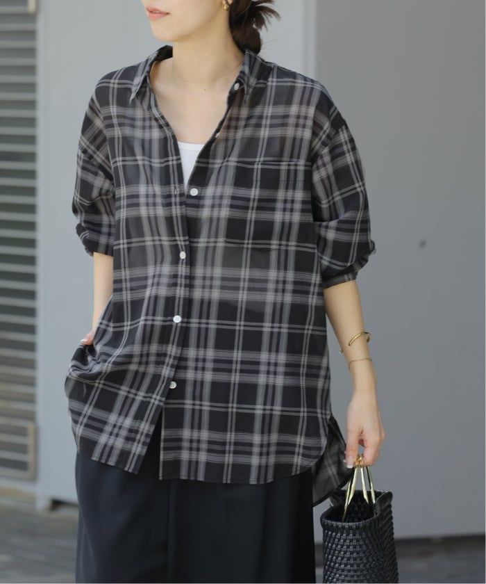 シアーな程よい透け感が魅力のチェックシャツ。