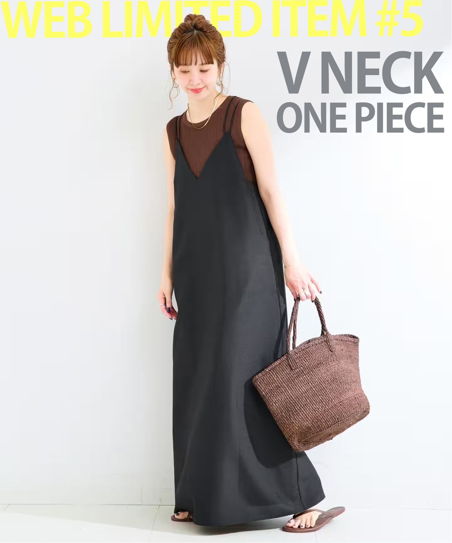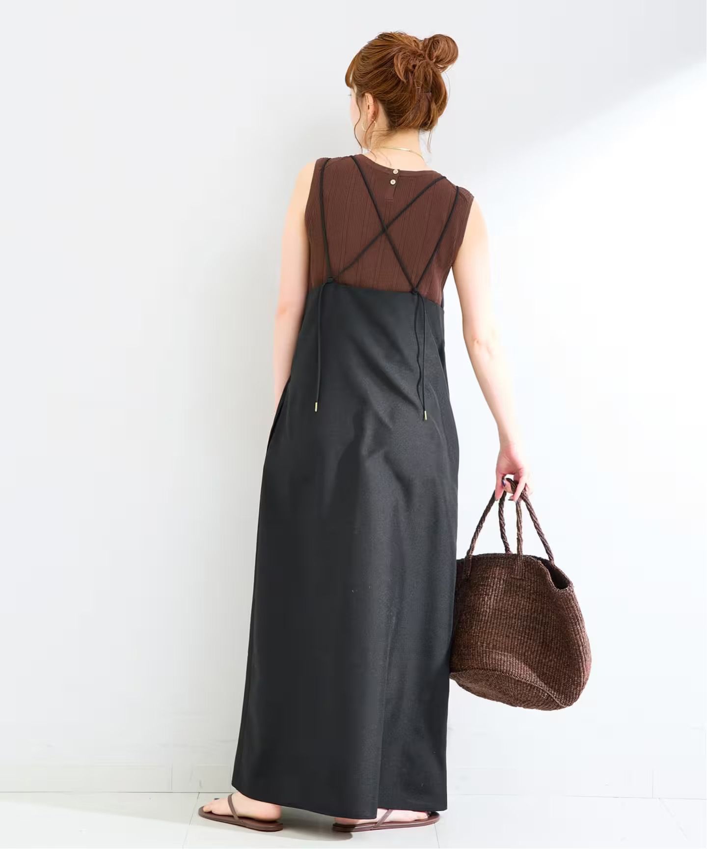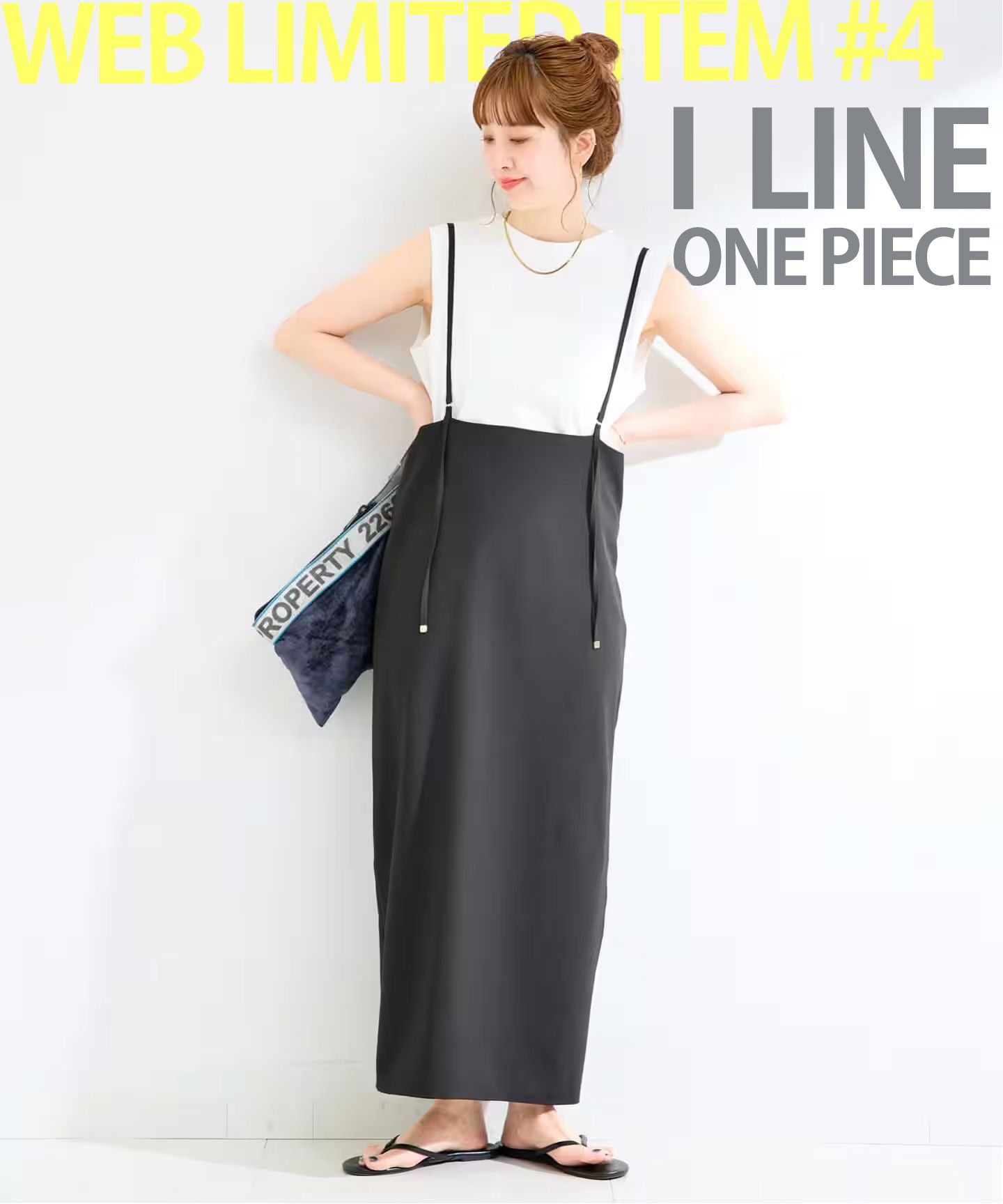 キャミワンピースはIラインシルエットですっきりとした見え感で縦長ラインが強調されます。