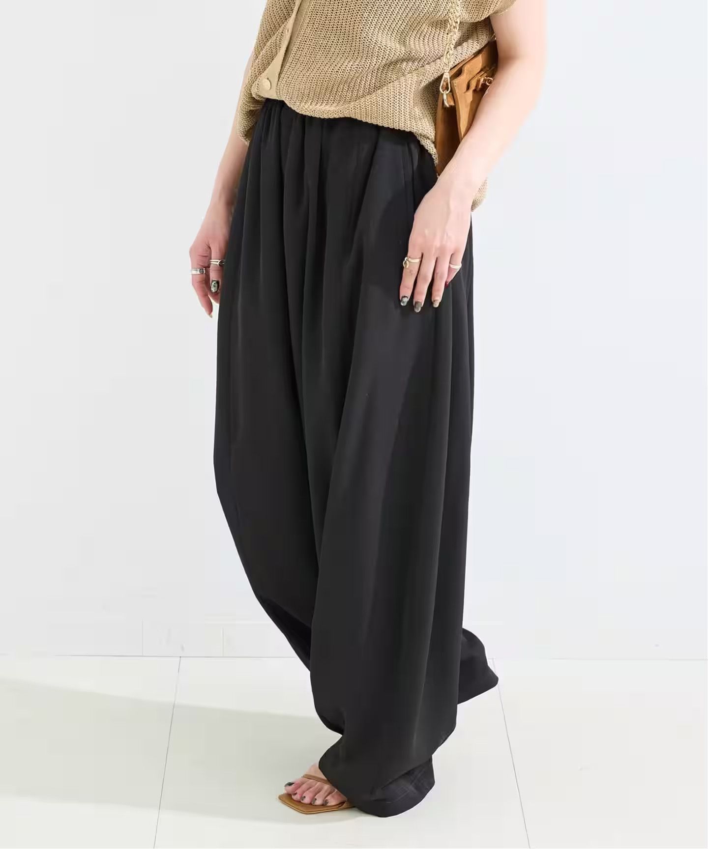 落ち感あるボリュームフォルムが雰囲気のあるイージーパンツ。