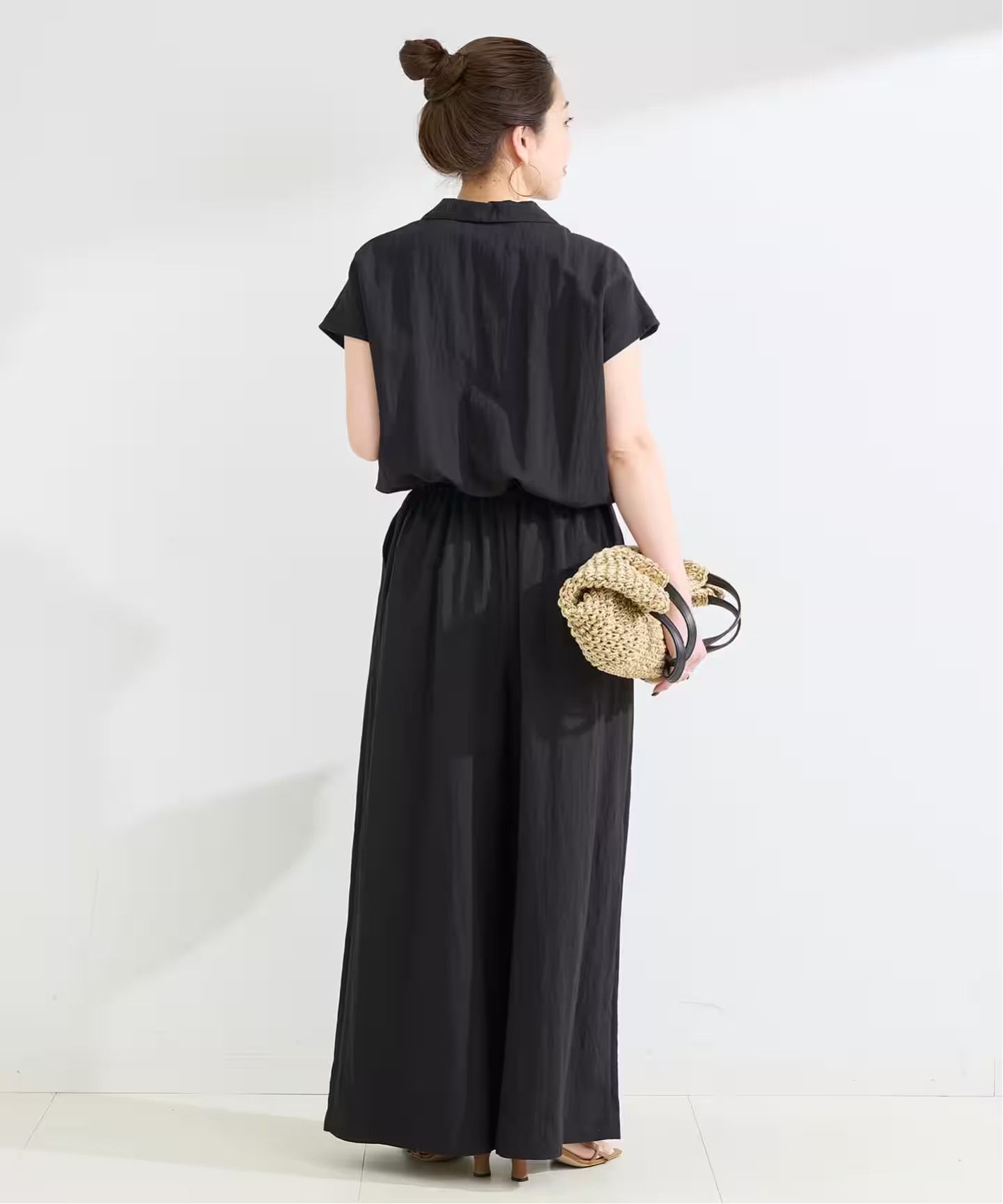 モノクロの合わせなので他のアイテムとも合わせやすく、スタイリングの幅が広がります。