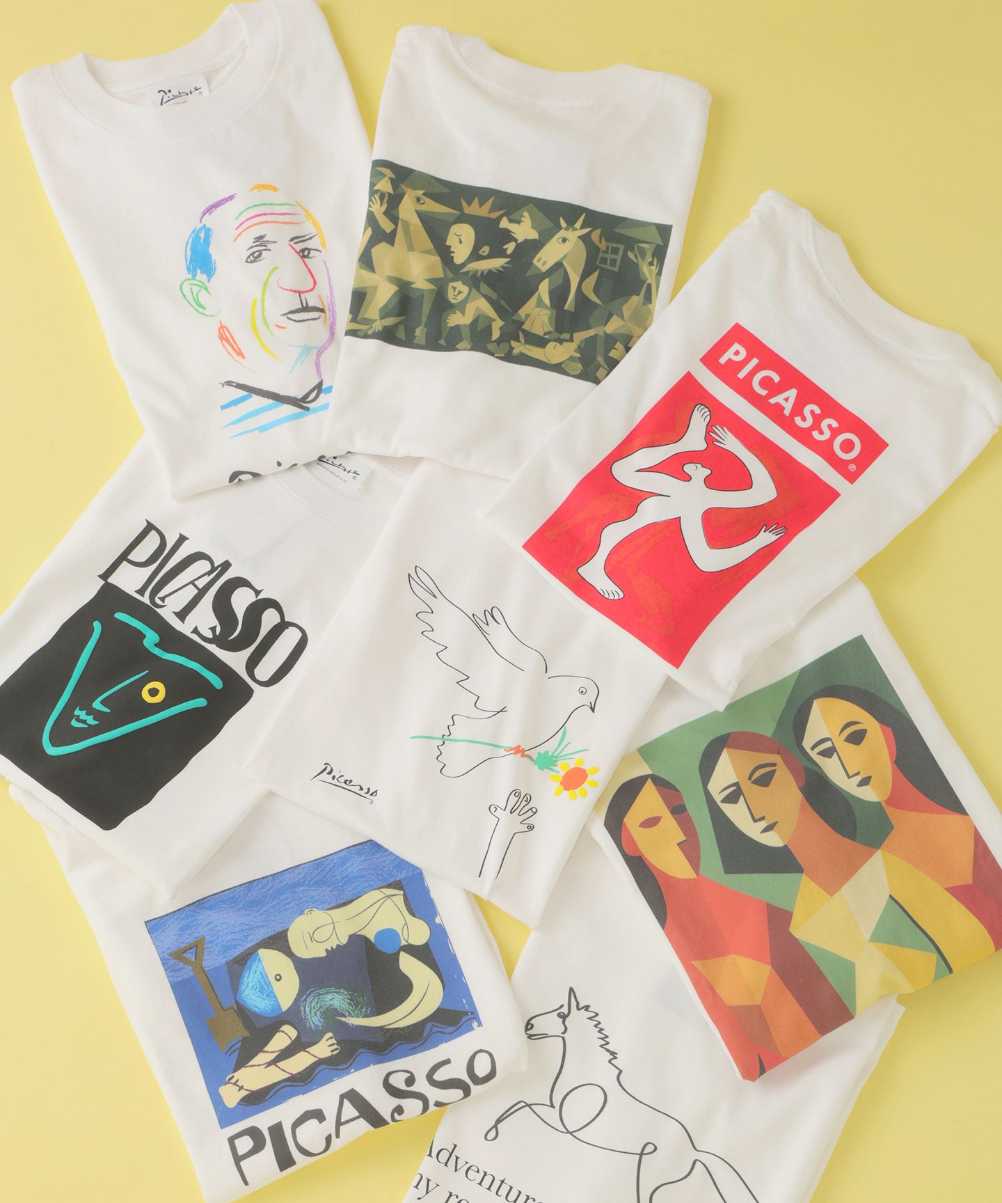 ピカソの名作を落とし込んだ“着るアート”。シルクスクリーンやインクジェットを使い分け、奥行きのある表現に仕上げた一枚。