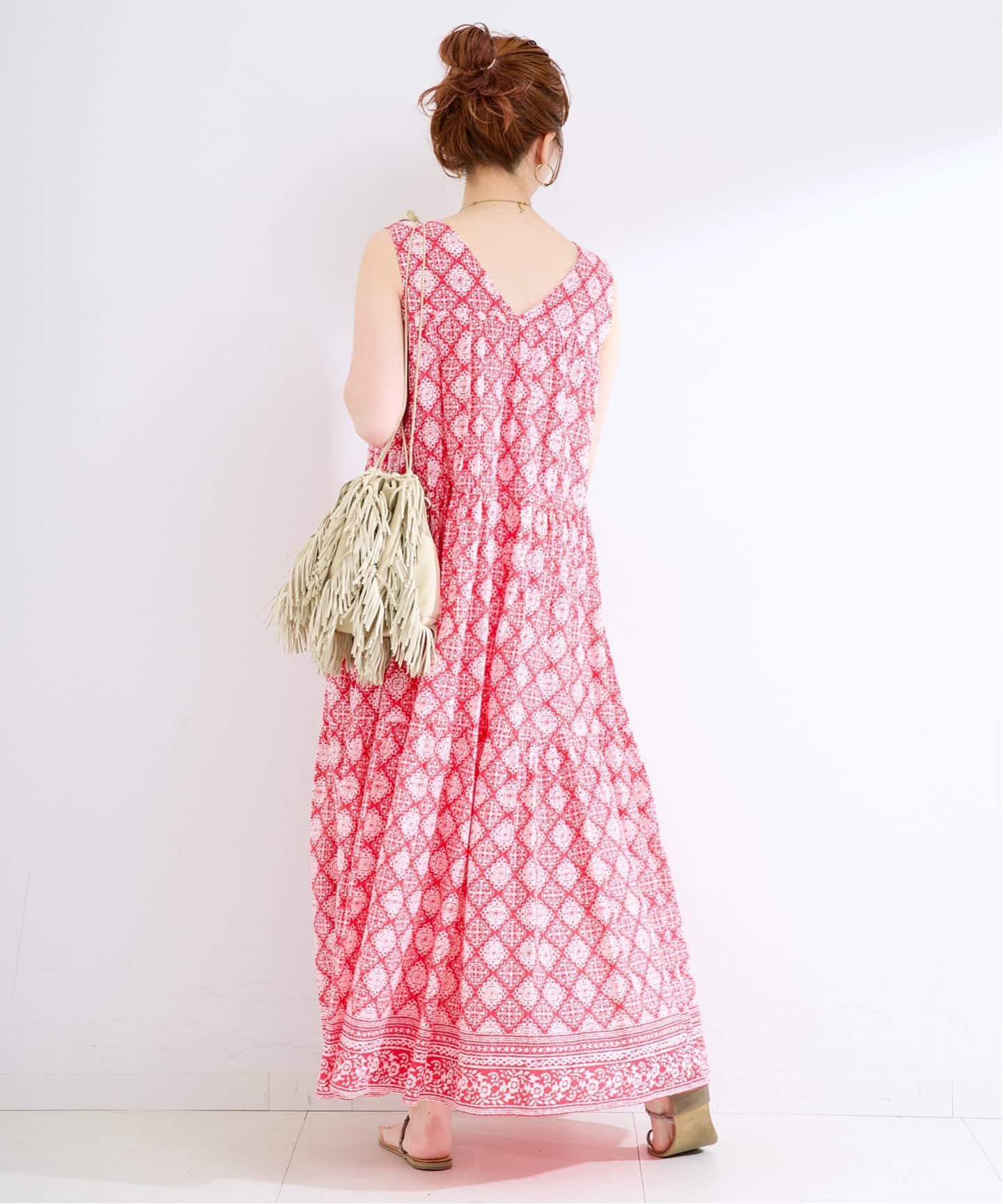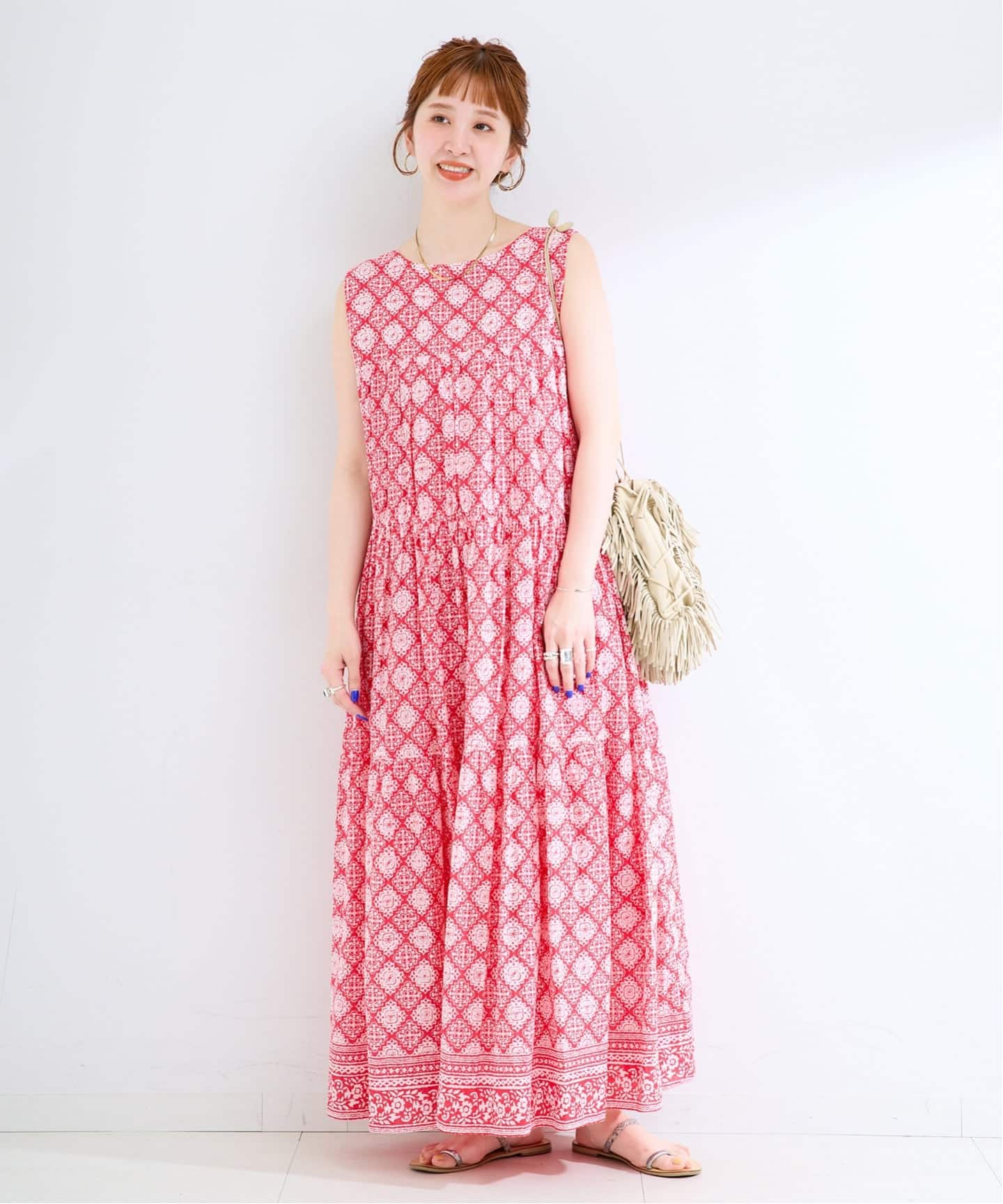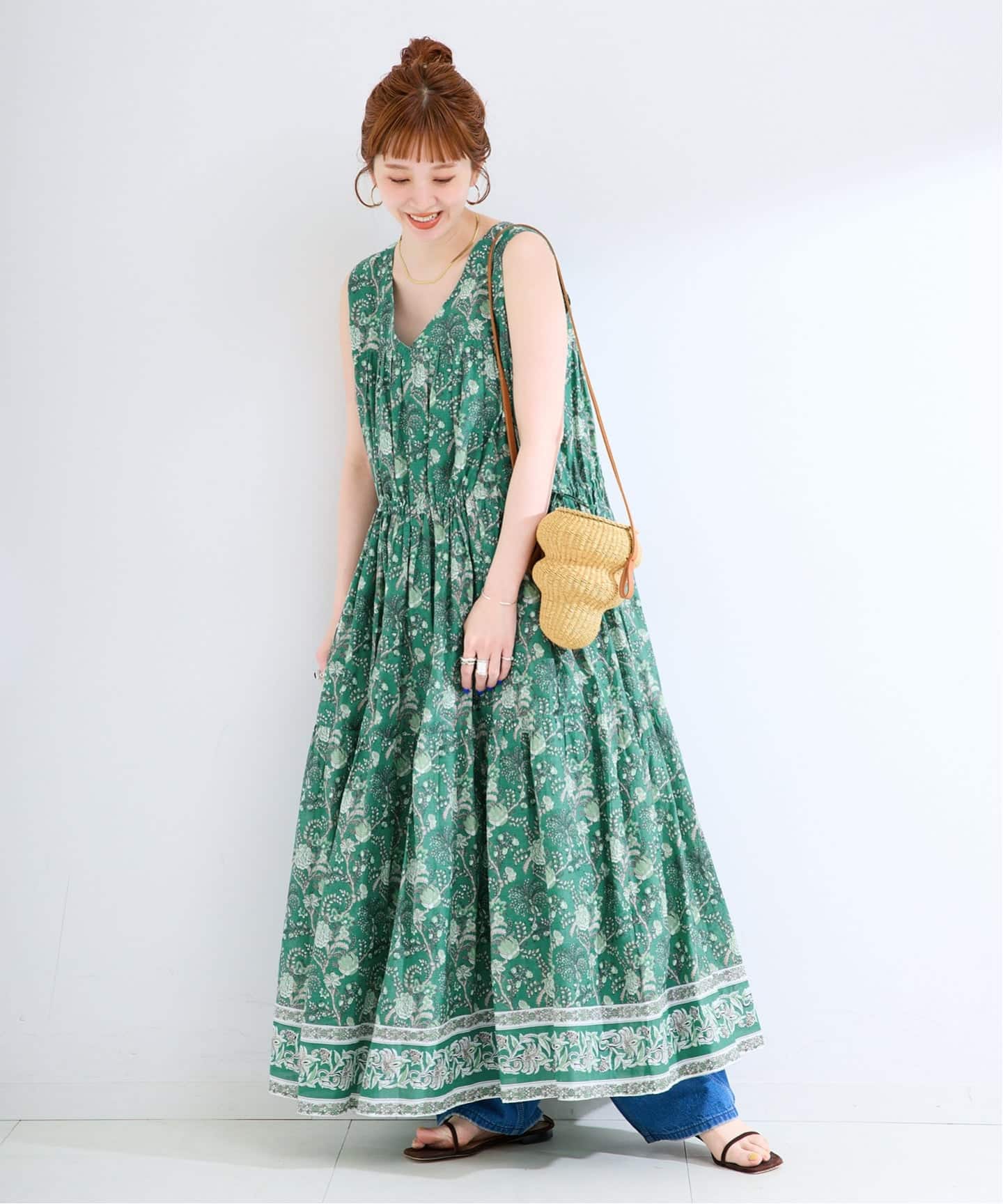軽さのある生地にマキシ丈のたっぷりとした分量感が動きのあるシルエットに。