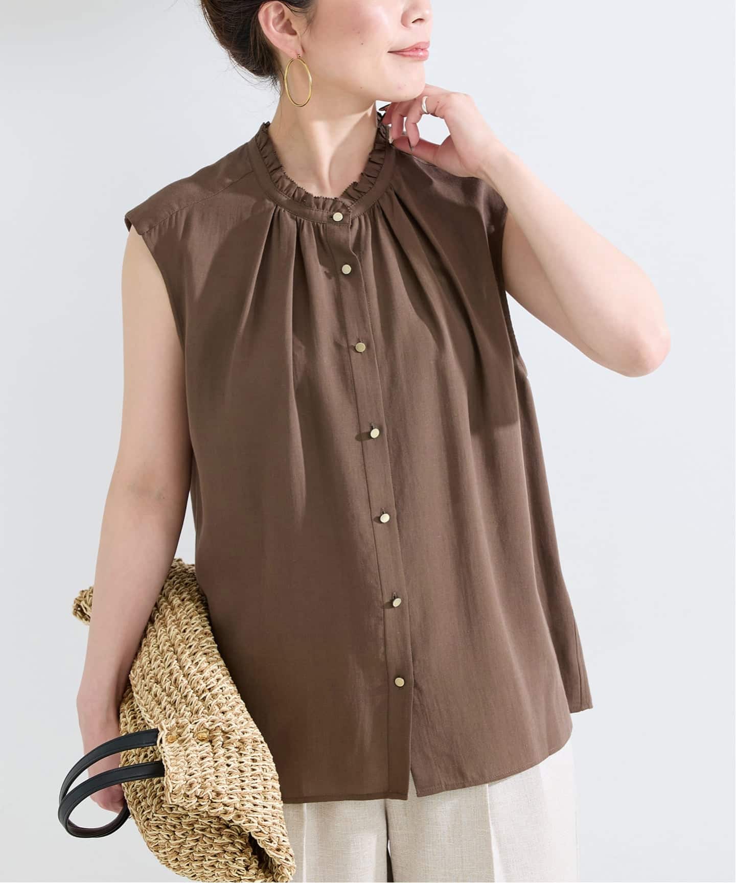 《予約》手洗い可 / セルロースフリルネックフレンチトップス
