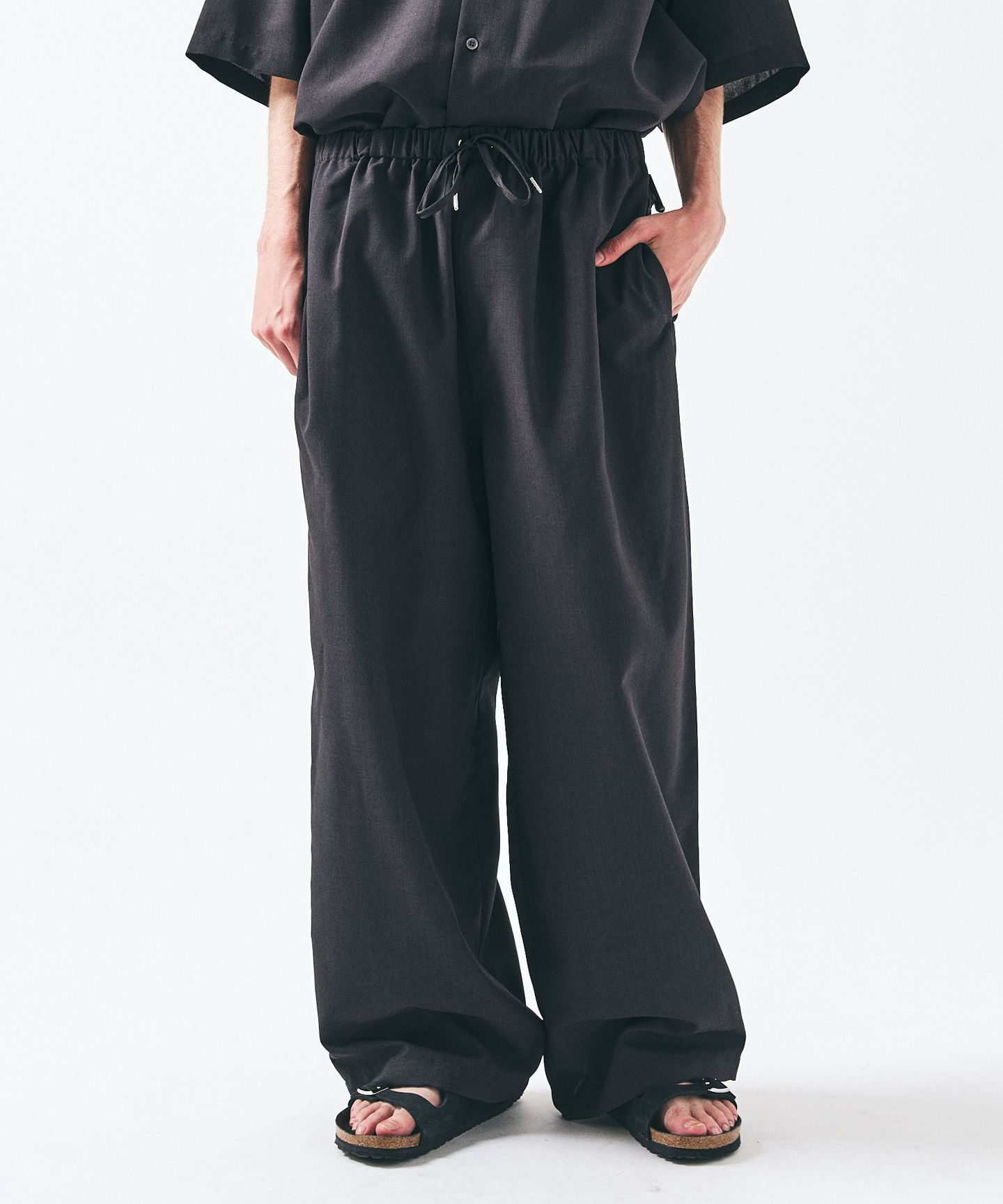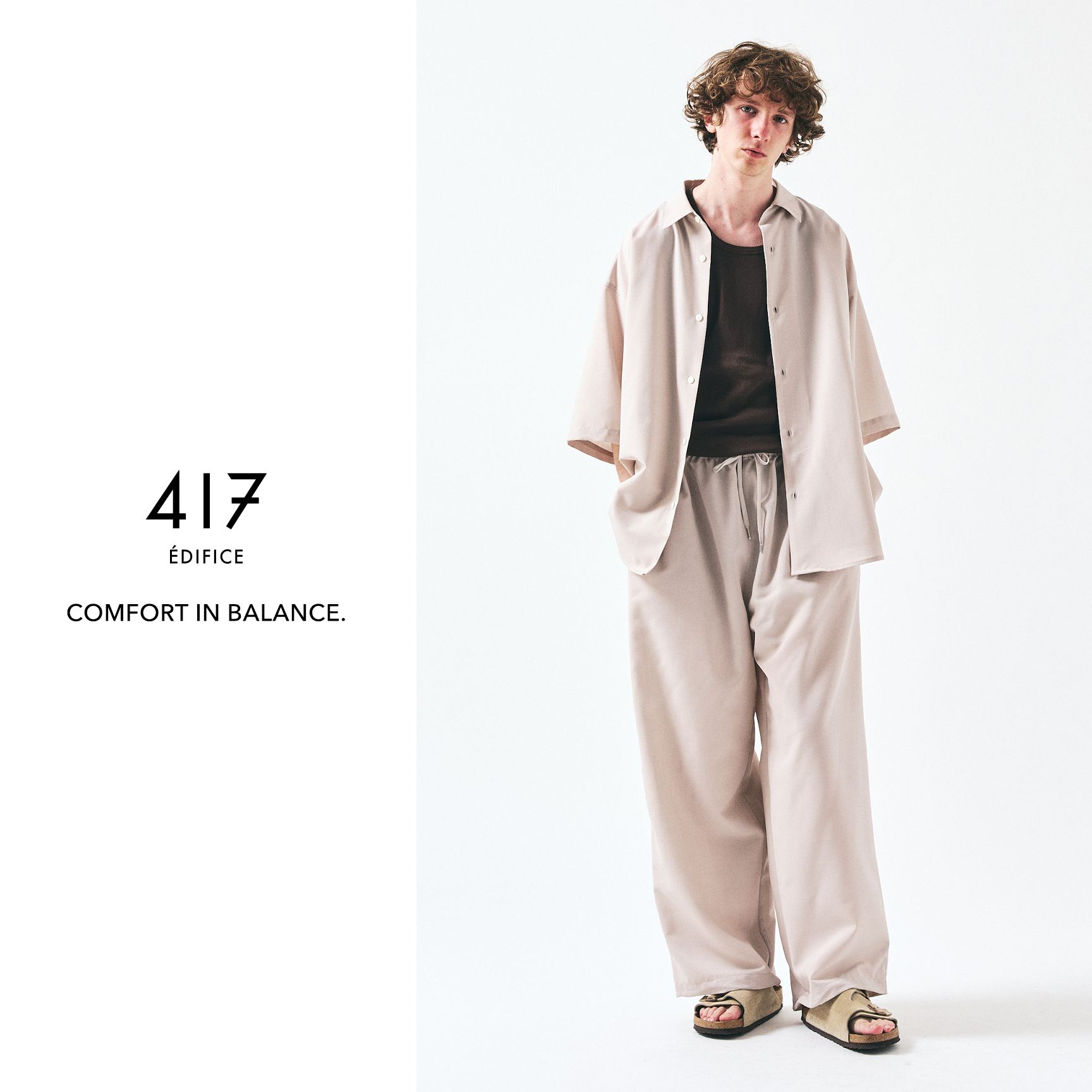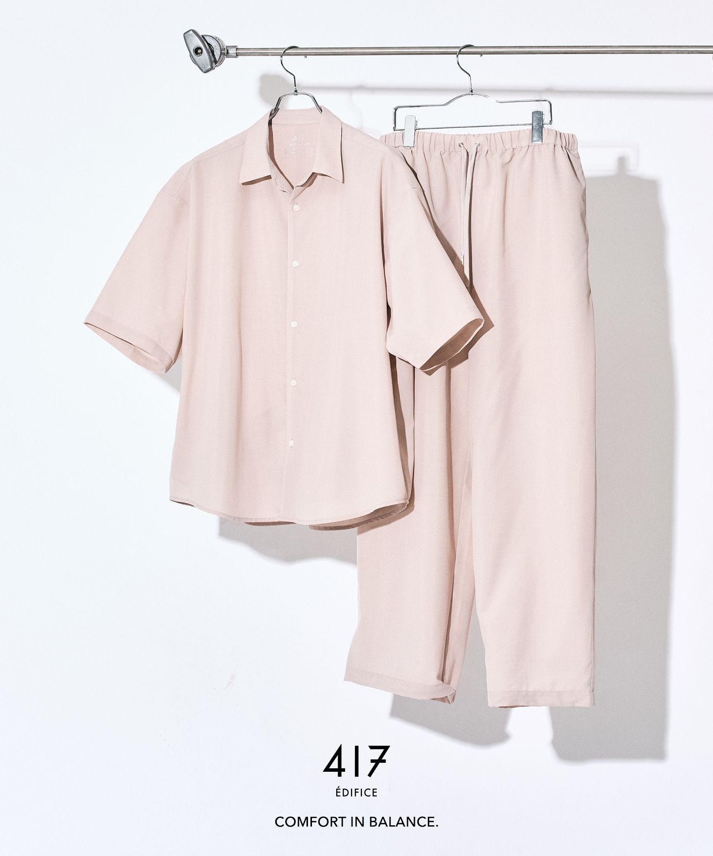 スタイリングを考える時間ごと、削ぎ落とす。シャツとパンツがセットになったこの一着は、ただ“楽”で終わらせないためのバランスでできている。
