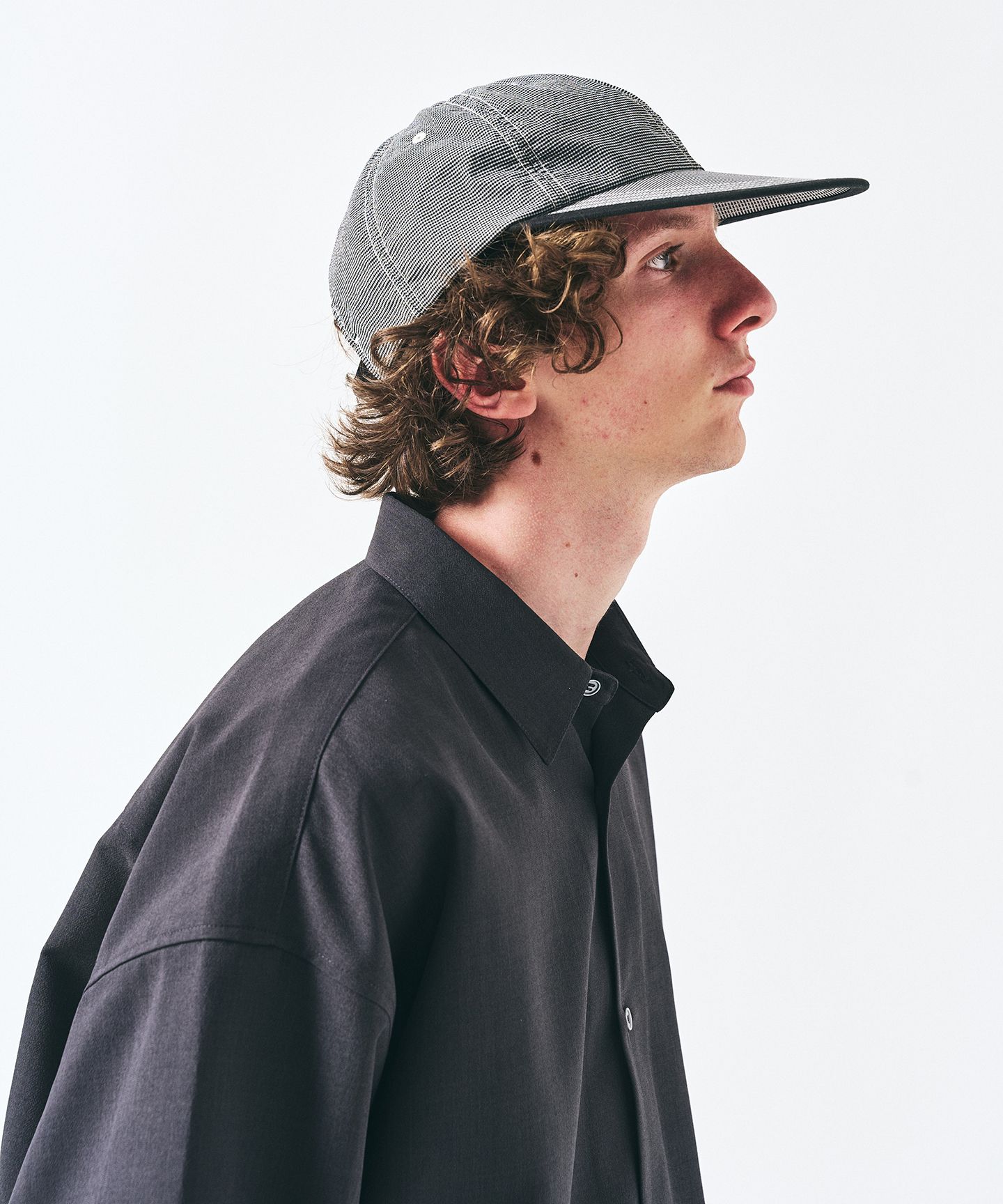 フロントはフラットに近いミニマルなボタン構成。ネックは開きすぎず、閉じすぎない。その少しの差で、抜けが出る。