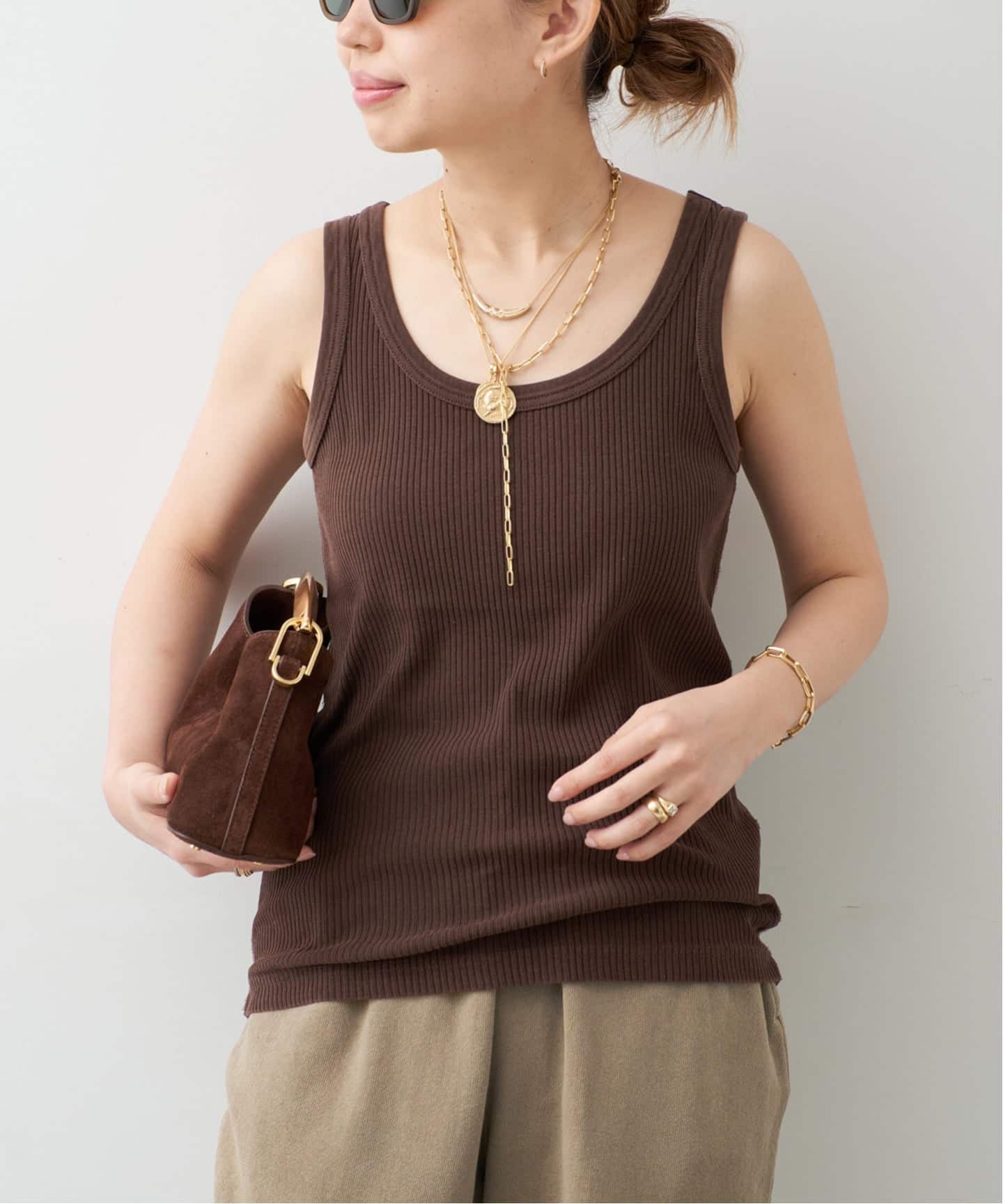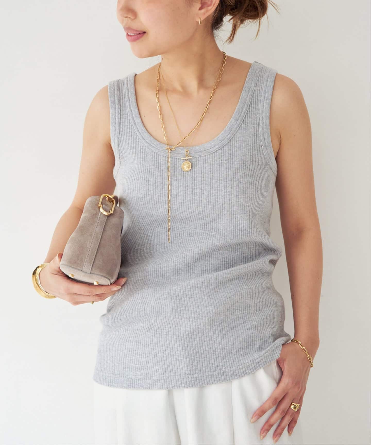 夏に着たいカサっとしたTeeシャツやヘルシーなアイテムと好相性。
