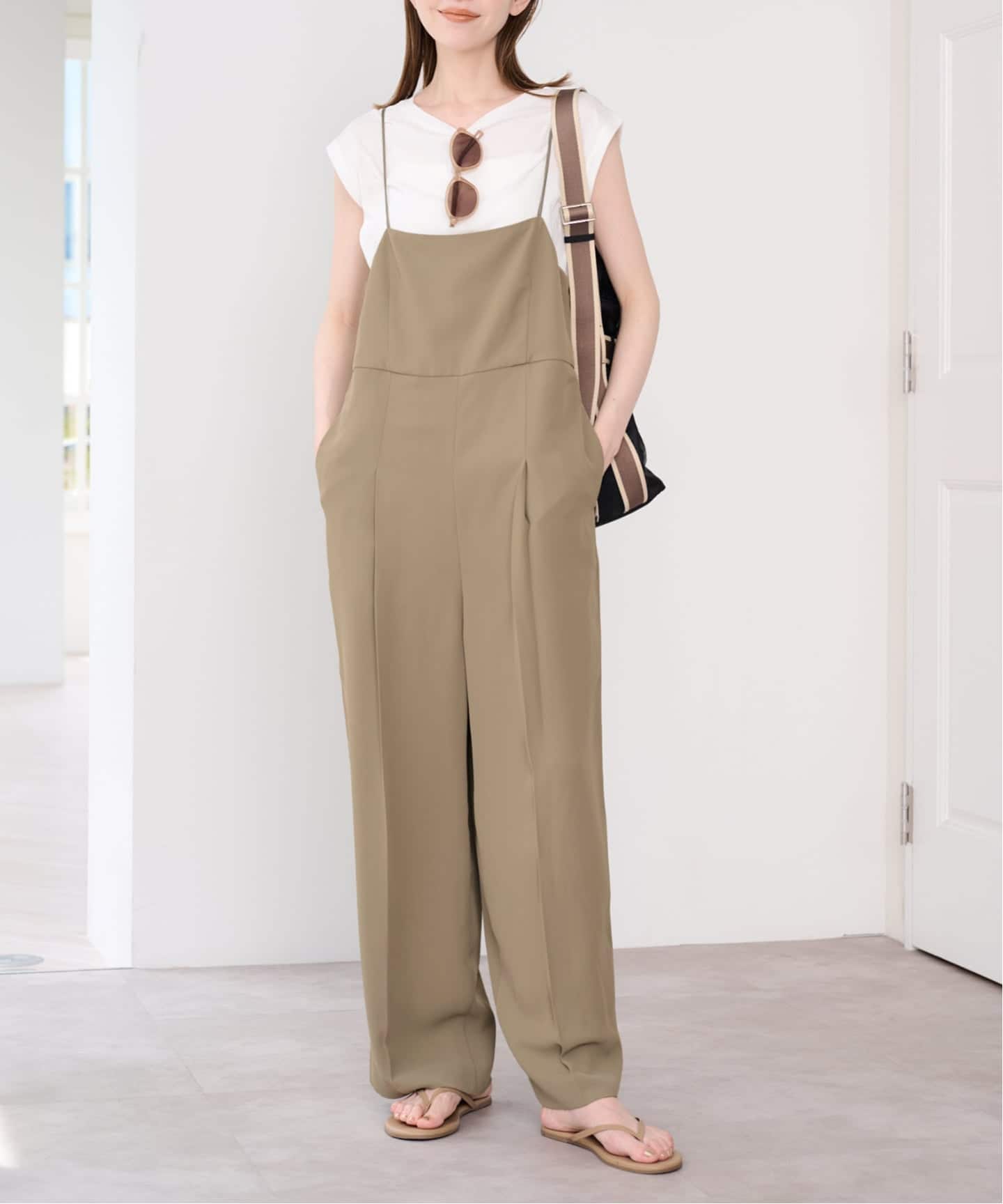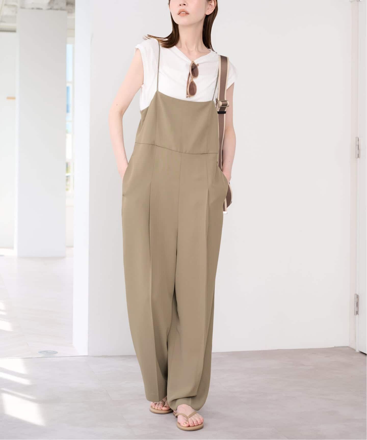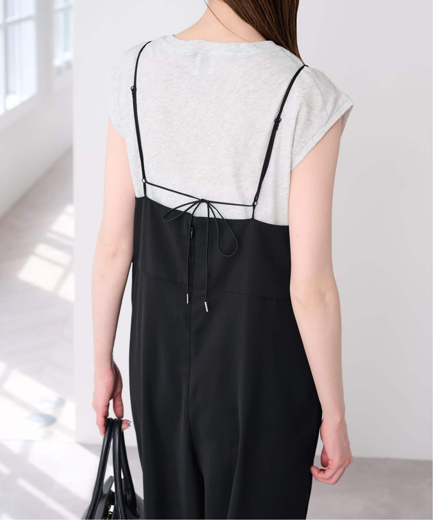 鈍い光沢感と美しいドレープが魅力の、ポリエステルダブルクロス素材を使用したキャミサロペット。