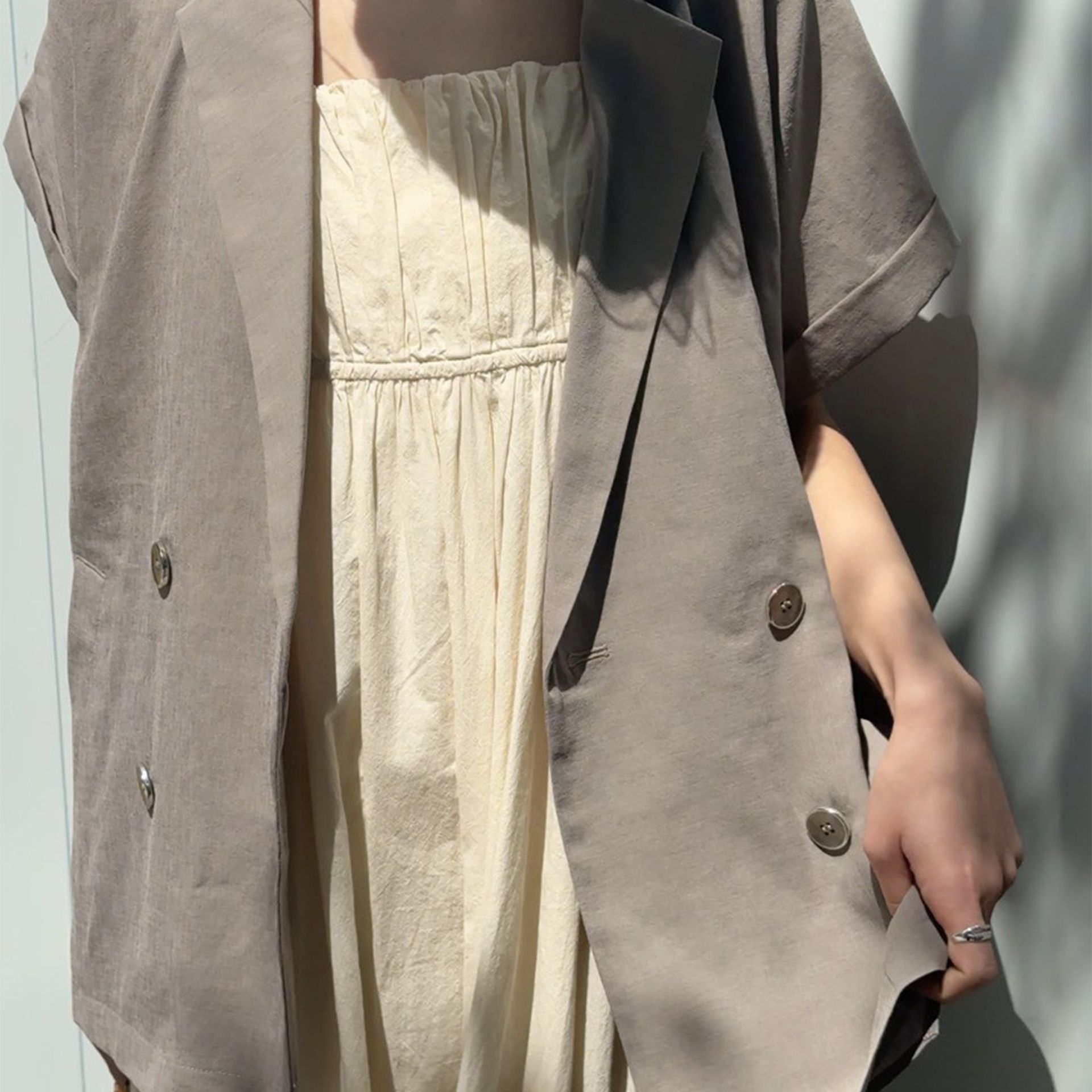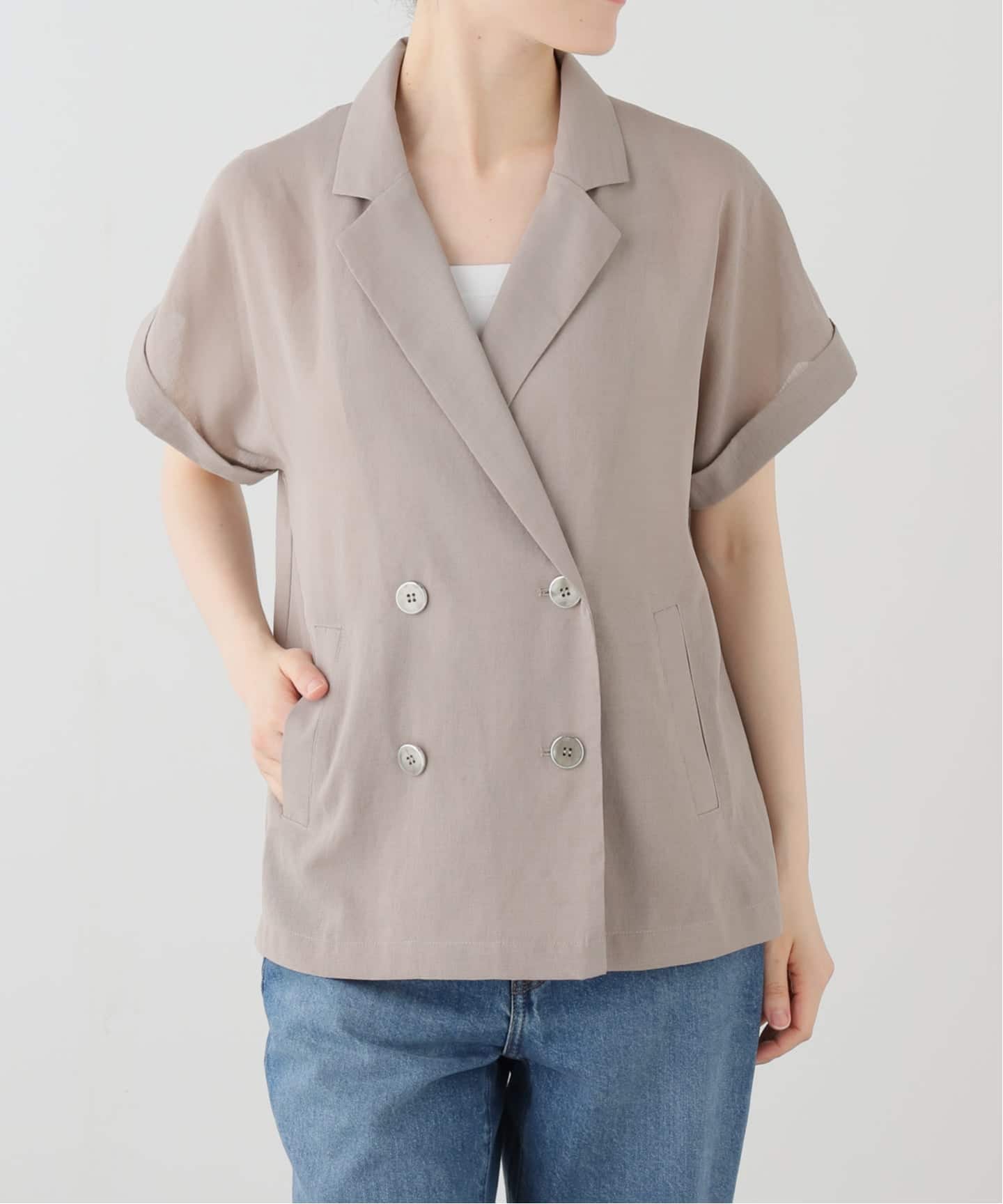 さらっとしたハーフスリーブジャケットはこれからの時期の羽織りとしてとても優秀。