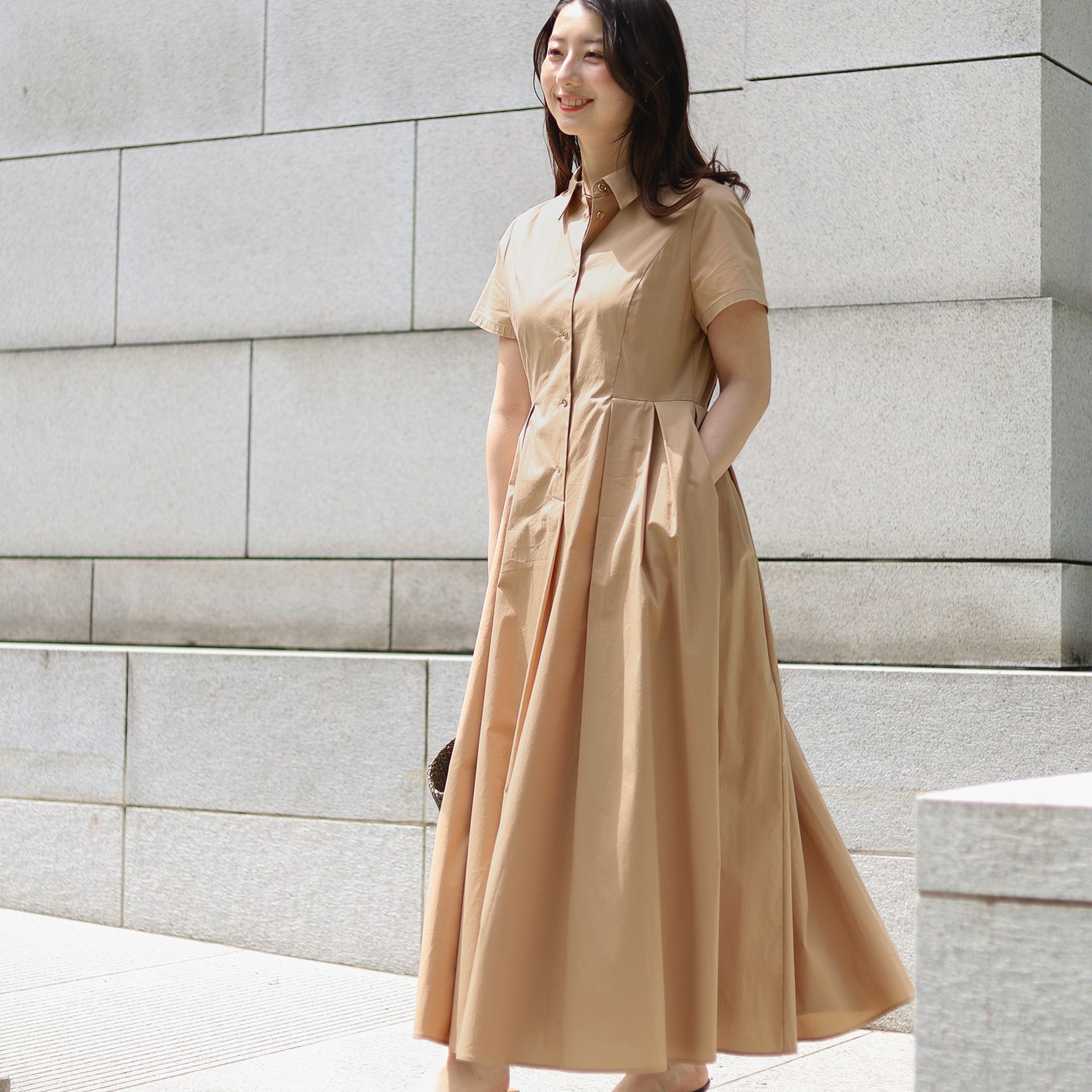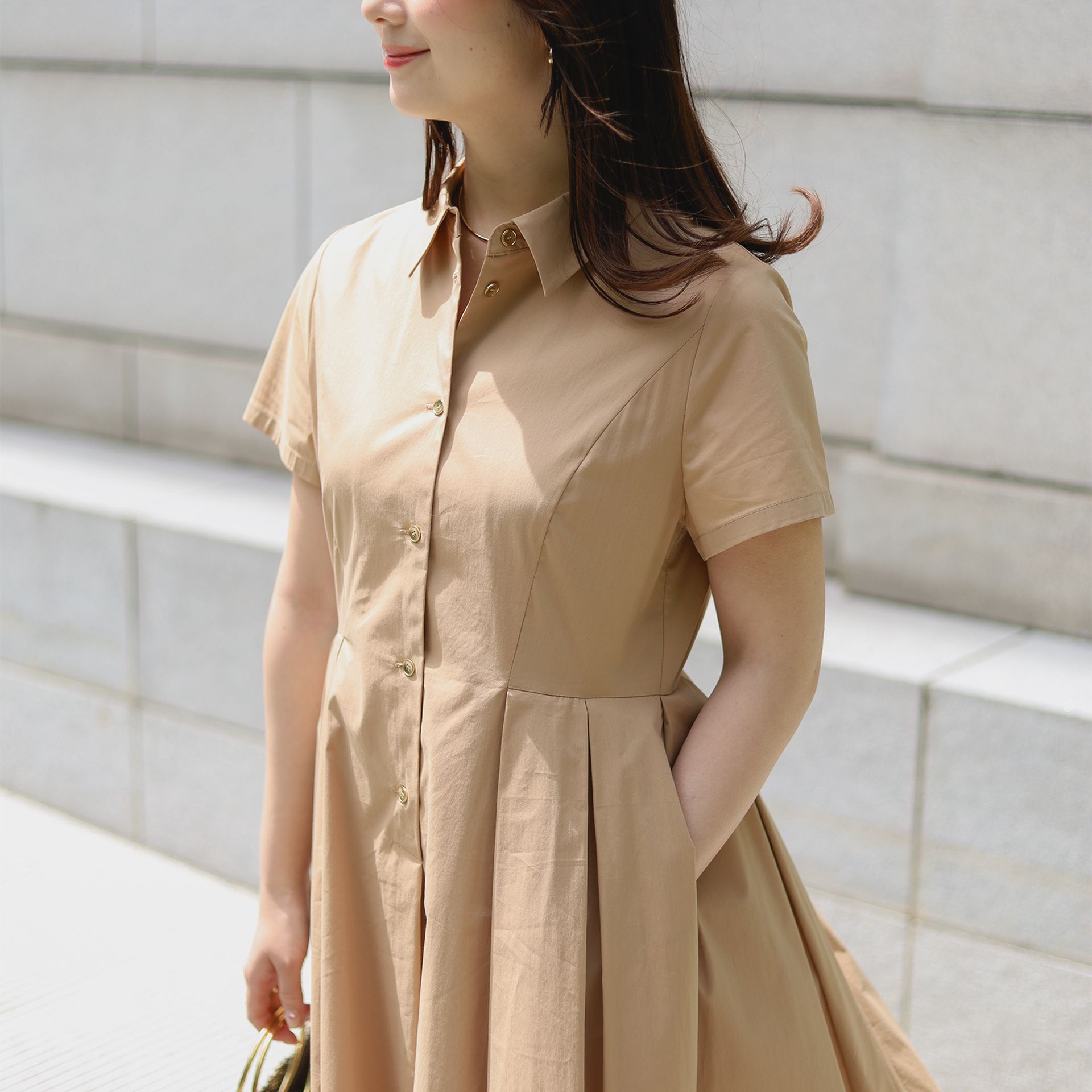 デイリーシーンで活躍の場が広い優等生のシャツワンピース。