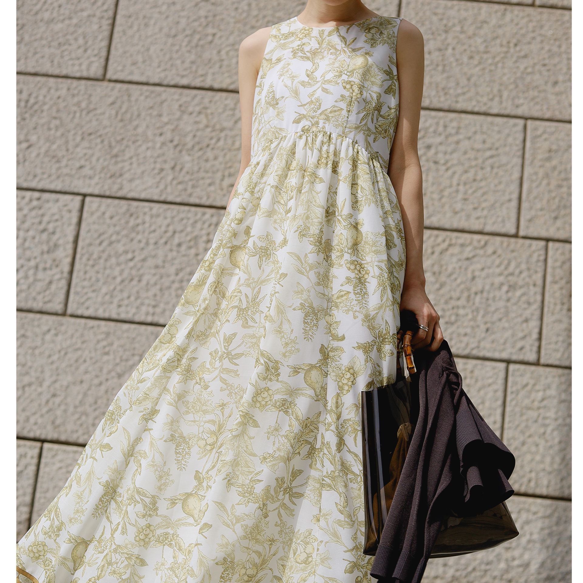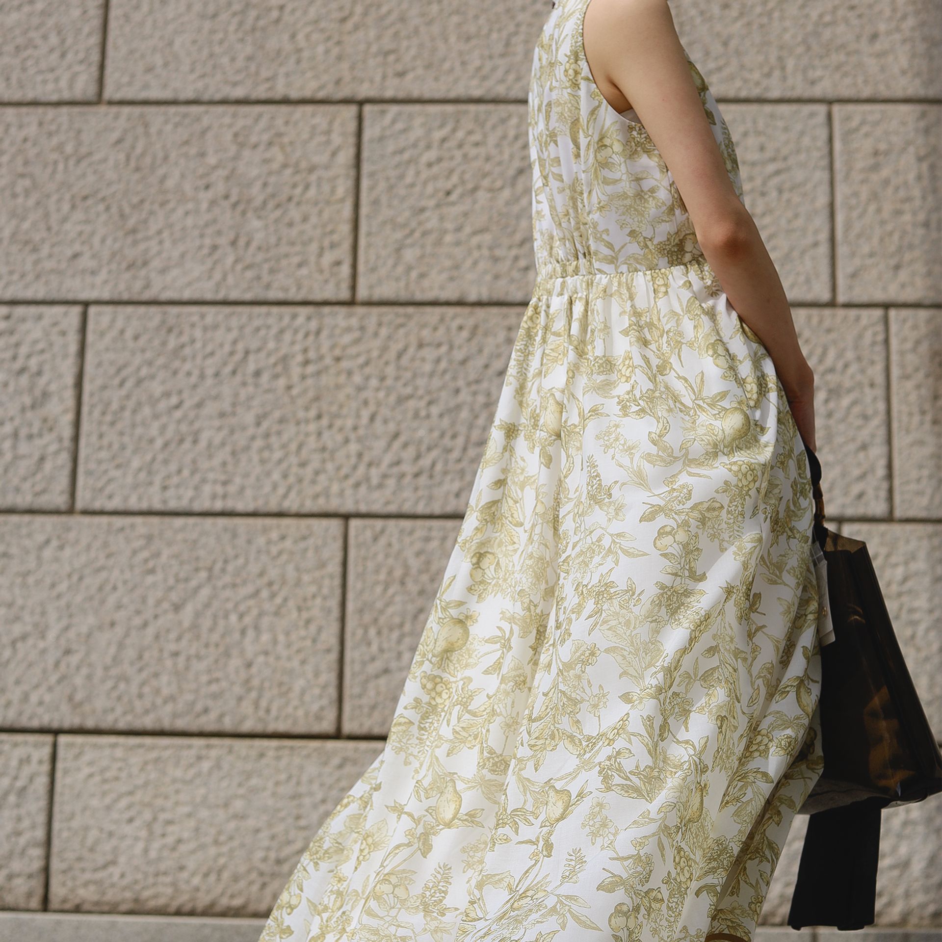 纏うことで解放感と特別感を感じられる、オリジナルプリントのワンピース。