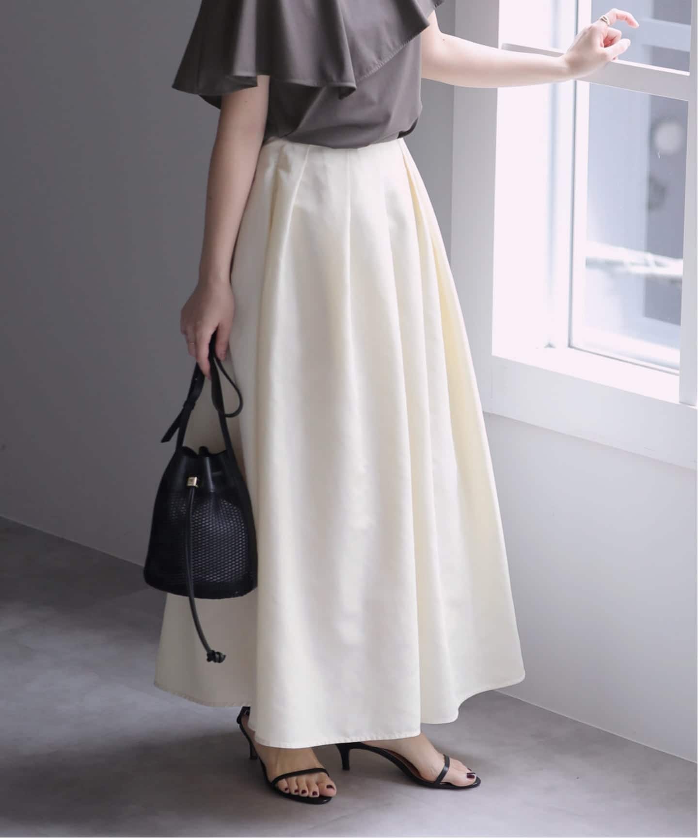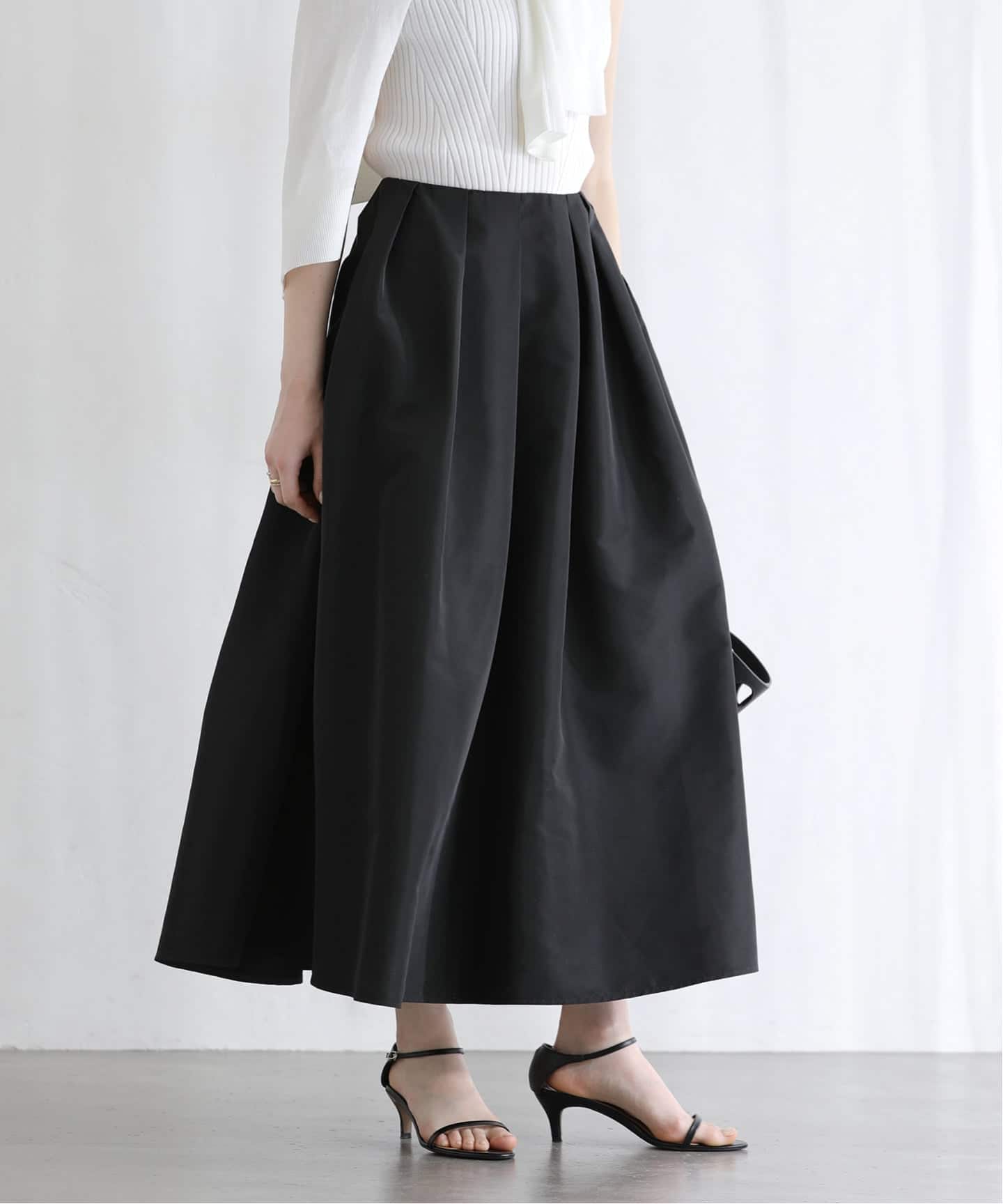 立体感のあるタックが美しい、上品なフレアシルエットのスカート。