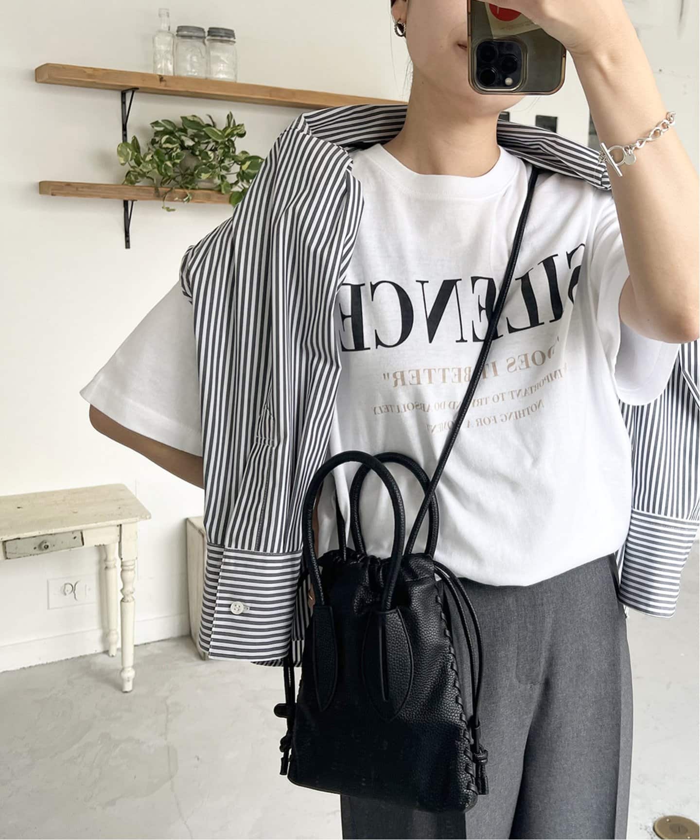 スクエア型で着用するとサイドが落ち、抜け感のある大人っぽい女性らしさのあるシルエットに*