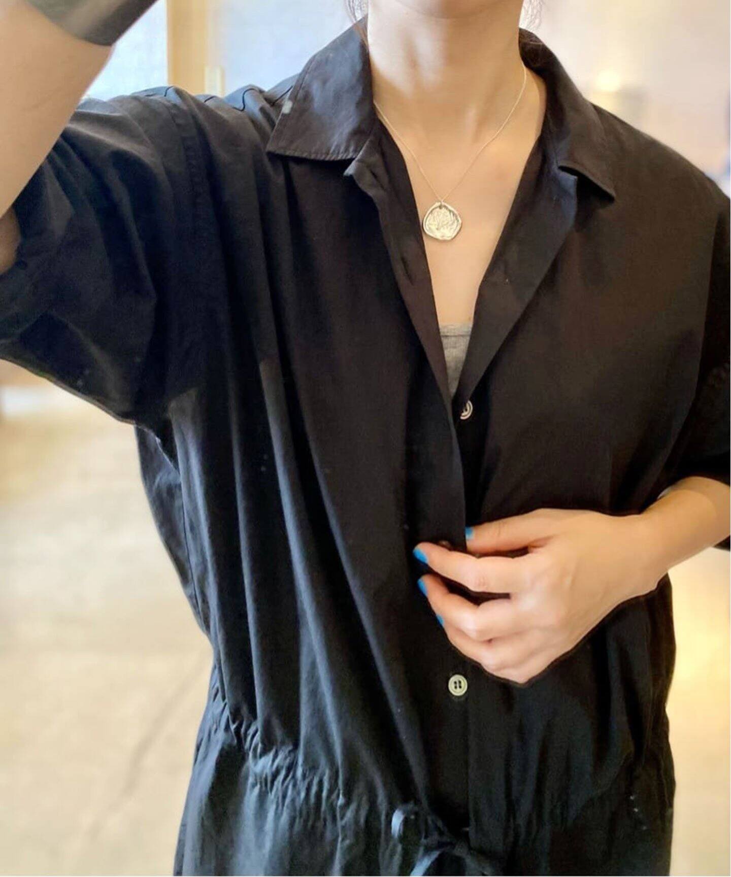 一枚でもちろん、前ボタンを全て開けて羽織りとしても活躍するスタンドカラーシャツワンピースです!