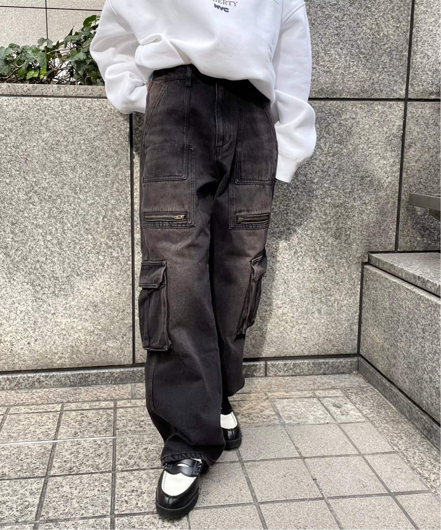 太過ぎない絶妙なストレートシルエットのデニムカーゴパンツ。