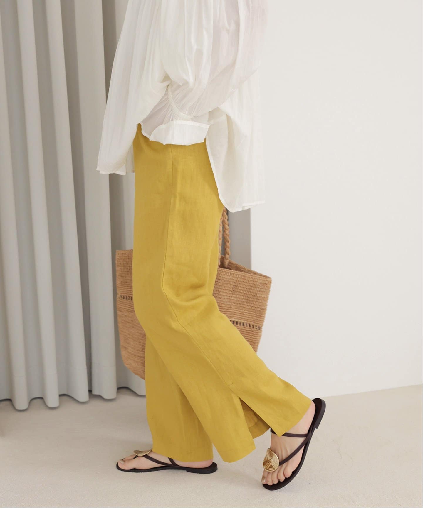 麻スリットイージーパンツ