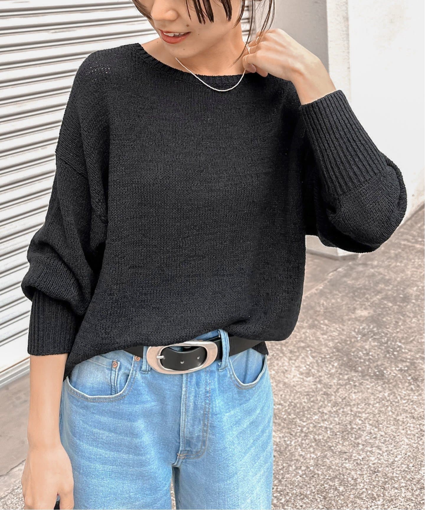 ドルマンスリーブとやや広めのネックが、カジュアルになりすぎずレディーライクな着こなしに。