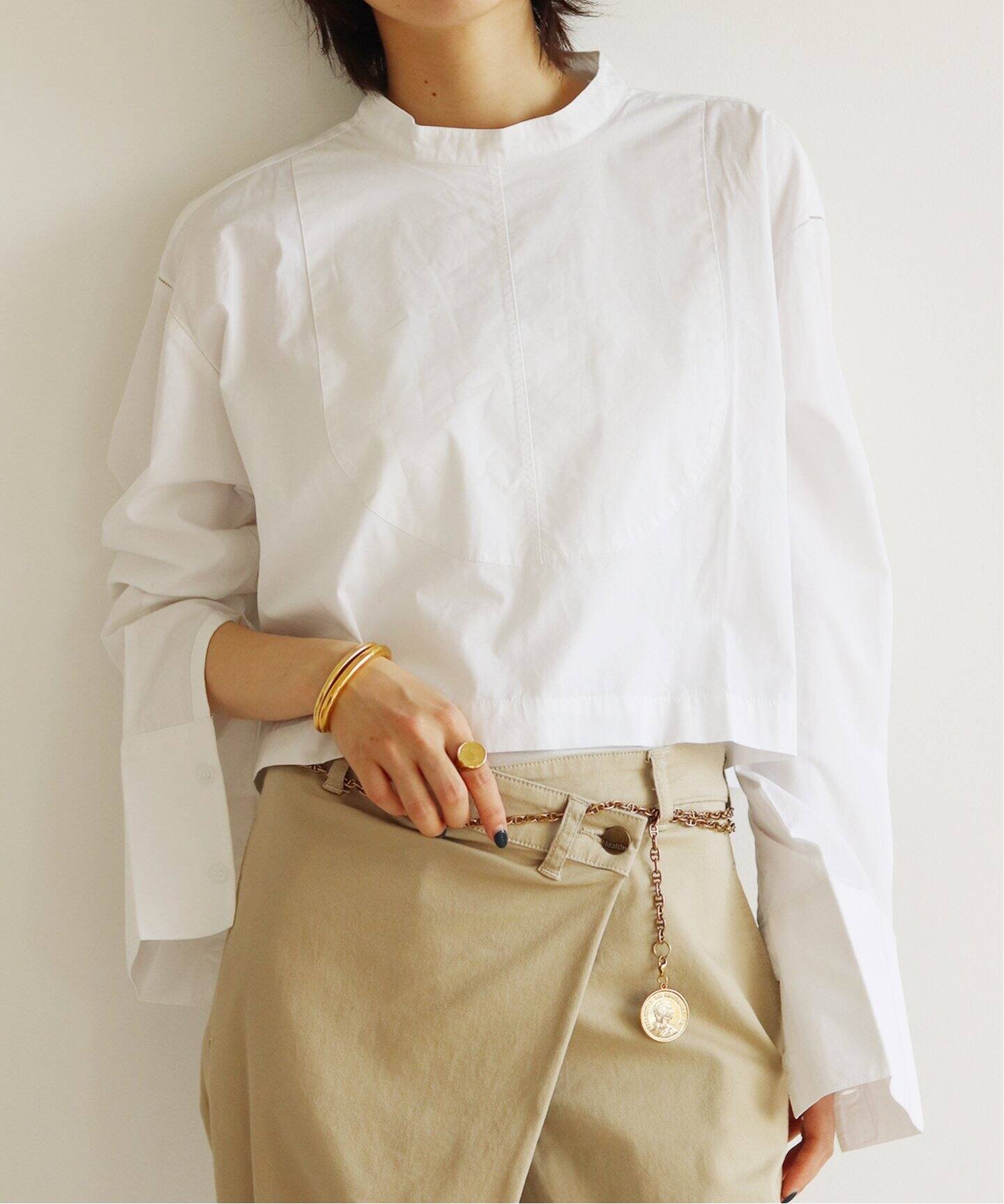 毎年人気のコットン素材のクロップド丈のブラウスは、今年はフロントのパネルと長いカフが特徴的。