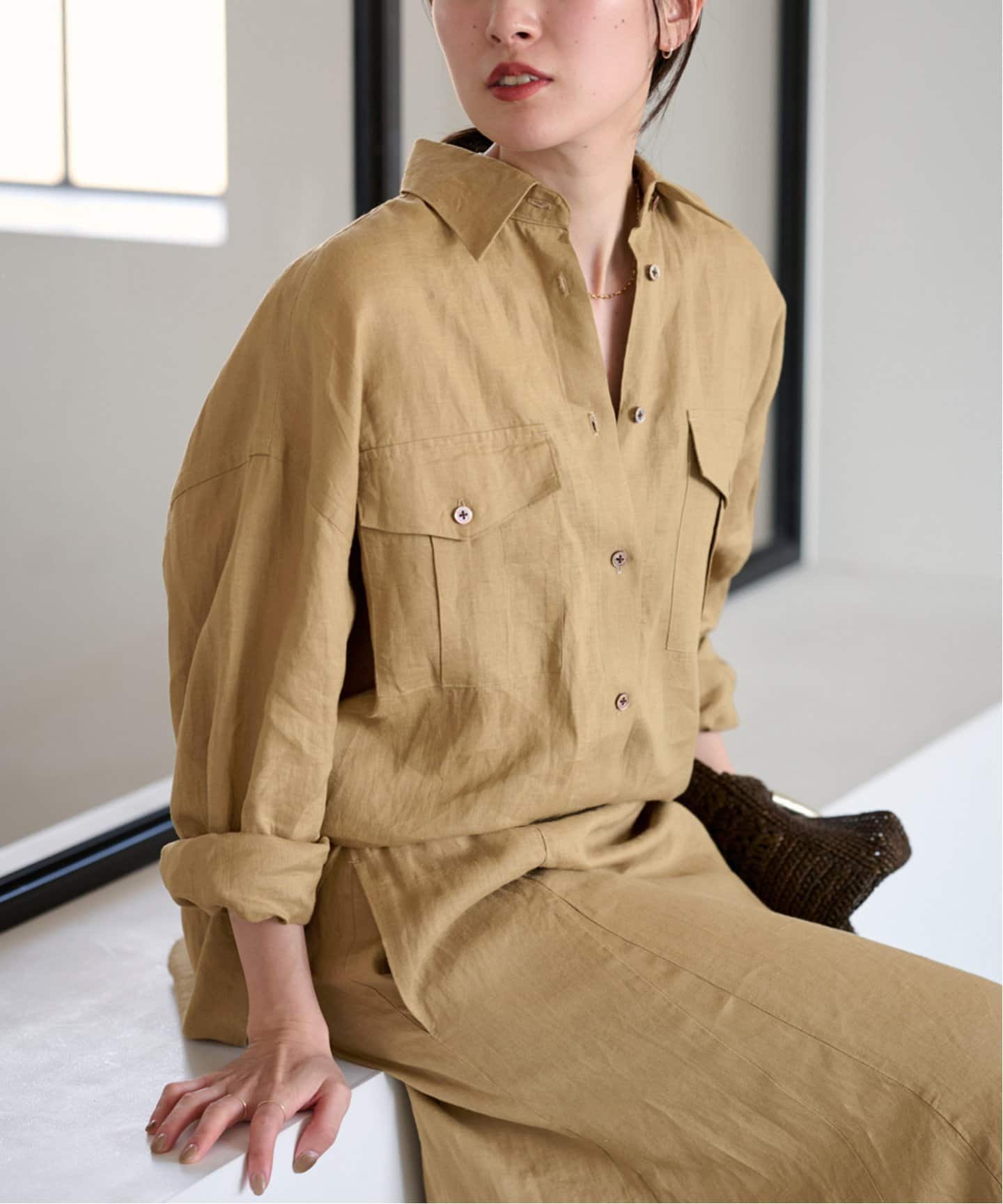 ナチュラルなスラブ感のあるリネンに、レーヨンのしなやかさが加わることで、カジュアルさが抑えられスタイリングの幅が広がります。