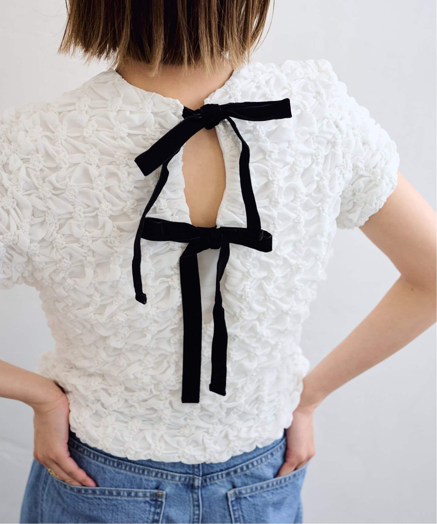 凹凸の立体感が特徴的な生地を使ったブラウス。