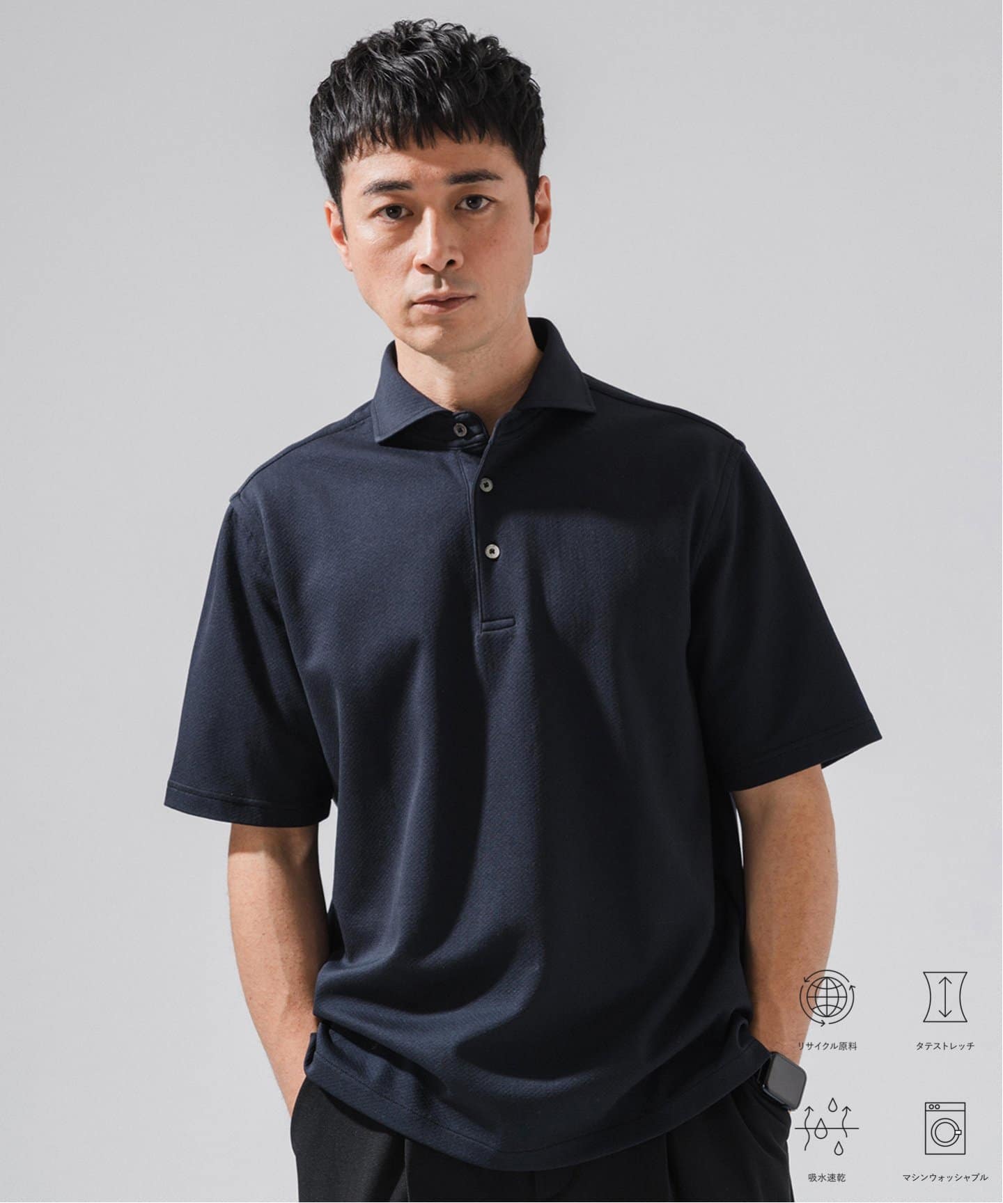 暑い夏の今こそ、その真価を発揮する、汗を吸水してくれて、乾きの早い、機能素材"COOL MAX"のハニカム素材を使用した、真夏のビジネスシーンで活躍できる機能ポロシャツ。スマートな印象を与えるルックスながら、適度に身幅、フィッティングを調整した、リラックス感ある着心地がたいへん好評を得ています。ハニカムボーダーの独特な生地の表情も、スラックス、チノなどのビジネス・カジュアル用途の着こなしをスタイリッシュに品見えさせてくれる、まさにエディフィスの機能ポロシャツNo.1人気アイテム。