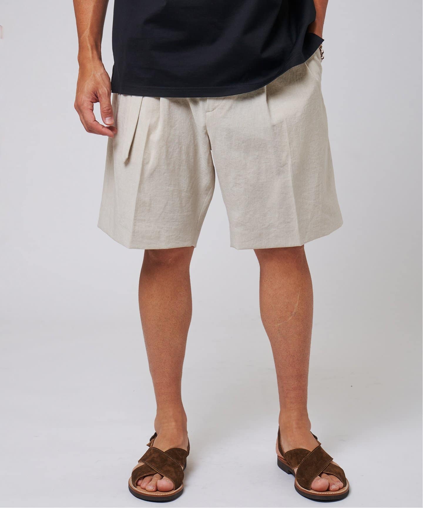 |シャンタン ベルテッド 2プリーツ ショーツ
