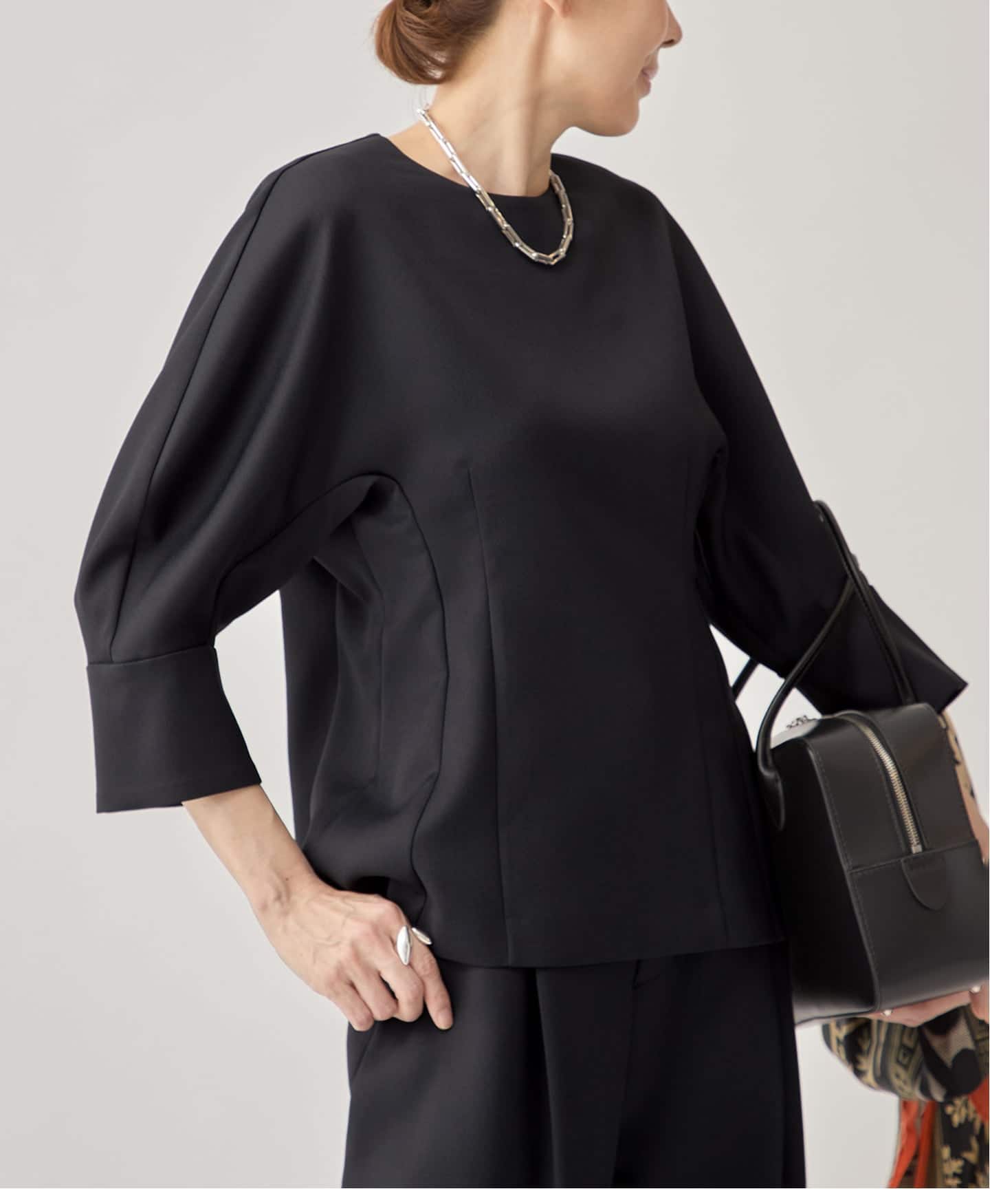 ノーカラーで比翼仕立てのブラウスは、きちんと感を演出しつつ、一枚で立体感のある着こなしを可能にしてくれます。
