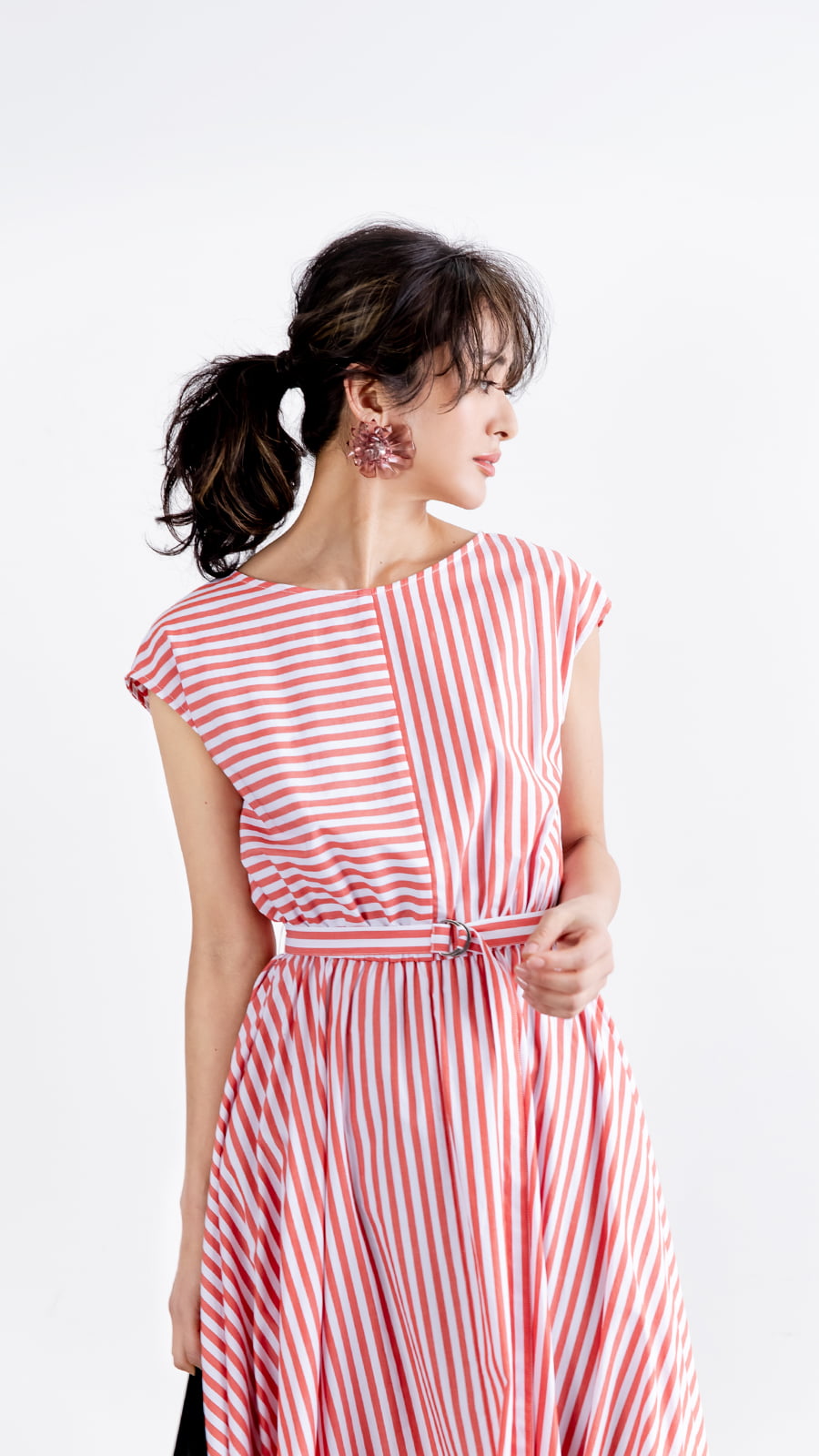 ウエストからストンと落ちるシルエットがとってもきれい。キレイめアイテムと見せかけて、今年絶対に挑戦したい柄×柄の要素も。さりげなくトレンドをおさえた、大人の着こなしに活躍してくれそうです。